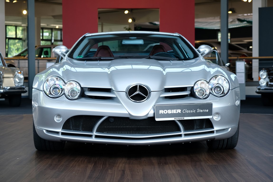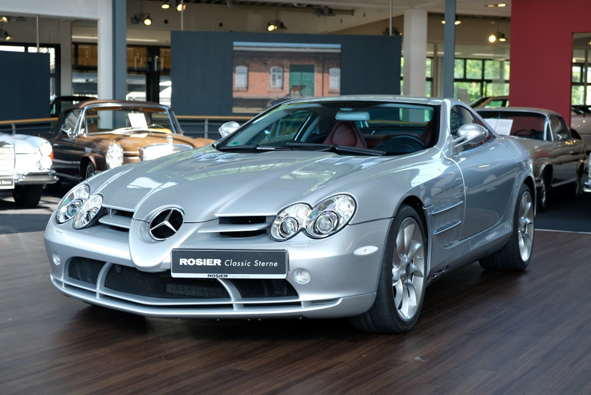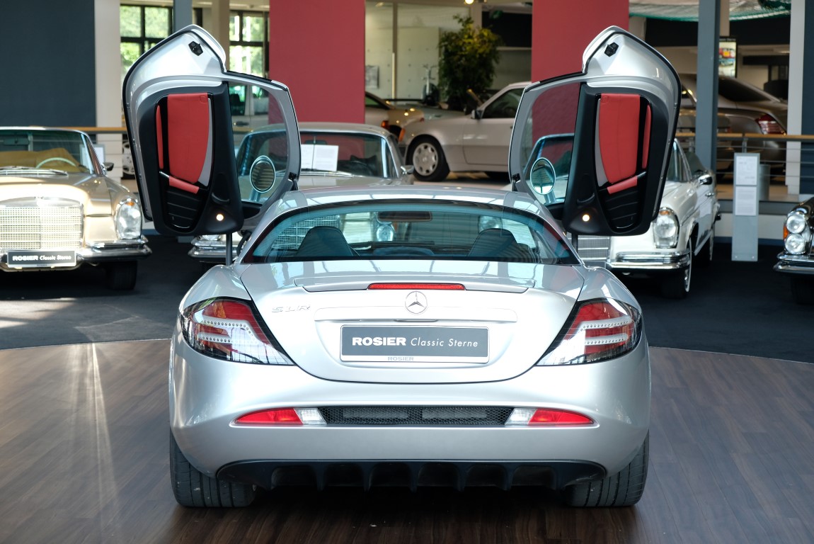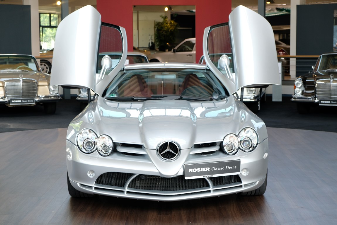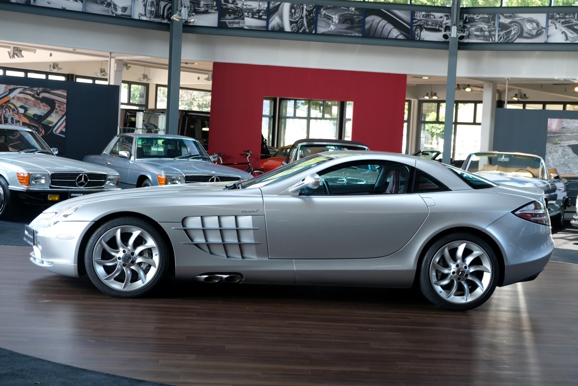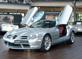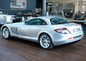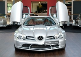 Im Design finden sich Flügeltüren und klassische Entlüftungsöffnungen an den Seiten wieder, die deutlich an den Stil der erfolgreichen 300 SL Uhlenhaut Coupés der 1950er Jahre erinnern. Dank kräftigem 5.5 Liter großen 460KW/626 PS leistenden V 8 Zylindermotor, kann der Supersportwagen eine Höchstgeschwindigkeit von 334 km/h erreichen. Wir freuen uns, Ihnen einen solchen Supersportwagen in Bestzustand anbieten zu können. Das Fahrzeug wurde Ende März 2005 an einen Immobilienmakler im nordöstlichen Hessen ausgeliefert. Er wurde pro Jahr gerade einmal 650 km sorgsam bewegt, um Standschäden zu vermeiden. Das Fahrzeug präsentiert sich neuwertig.