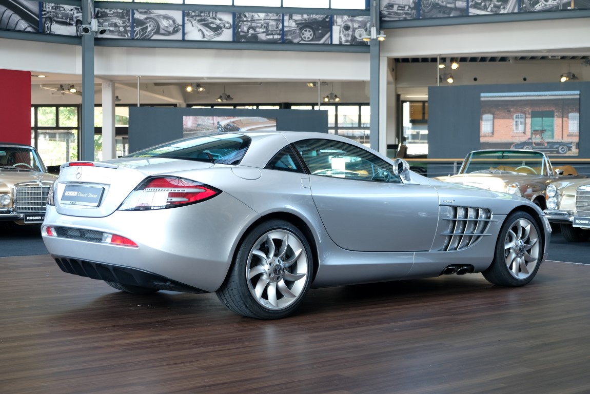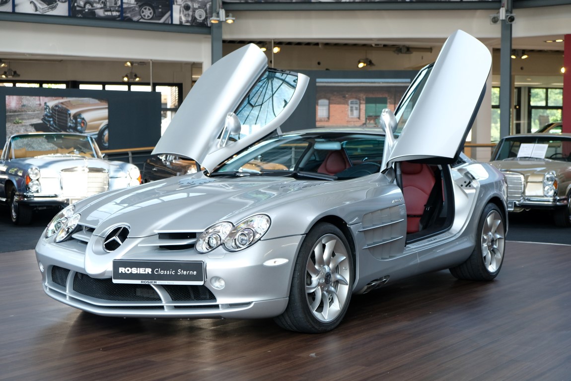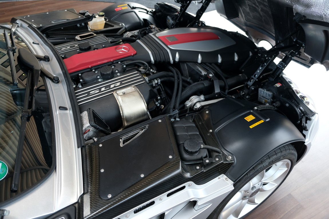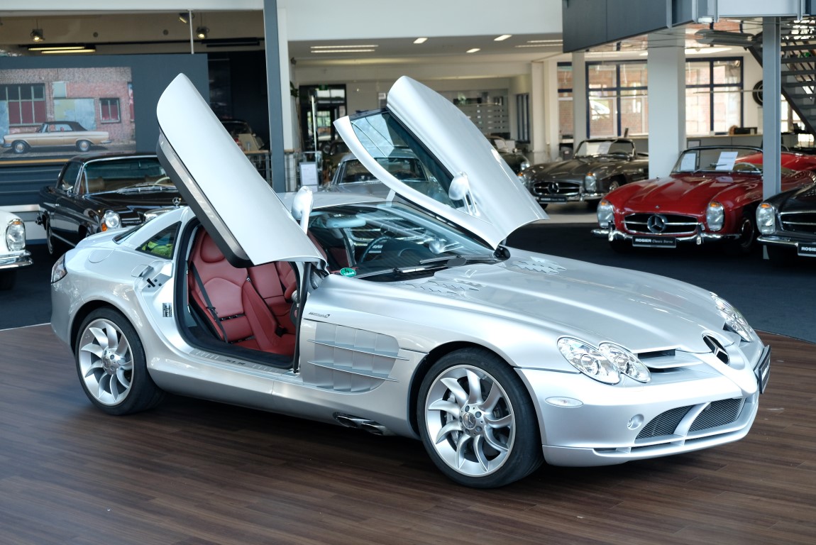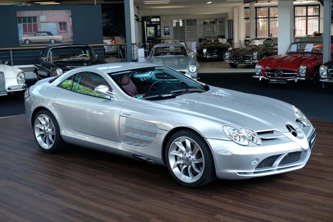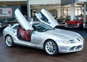 Im Design finden sich Flügeltüren und klassische Entlüftungsöffnungen an den Seiten wieder, die deutlich an den Stil der erfolgreichen 300 SL Uhlenhaut Coupés der 1950er Jahre erinnern. Dank kräftigem 5.5 Liter großen 460KW/626 PS leistenden V 8 Zylindermotor, kann der Supersportwagen eine Höchstgeschwindigkeit von 334 km/h erreichen. Wir freuen uns, Ihnen einen solchen Supersportwagen in Bestzustand anbieten zu können. Das Fahrzeug wurde Ende März 2005 an einen Immobilienmakler im nordöstlichen Hessen ausgeliefert. Er wurde pro Jahr gerade einmal 650 km sorgsam bewegt, um Standschäden zu vermeiden. Das Fahrzeug präsentiert sich neuwertig.
