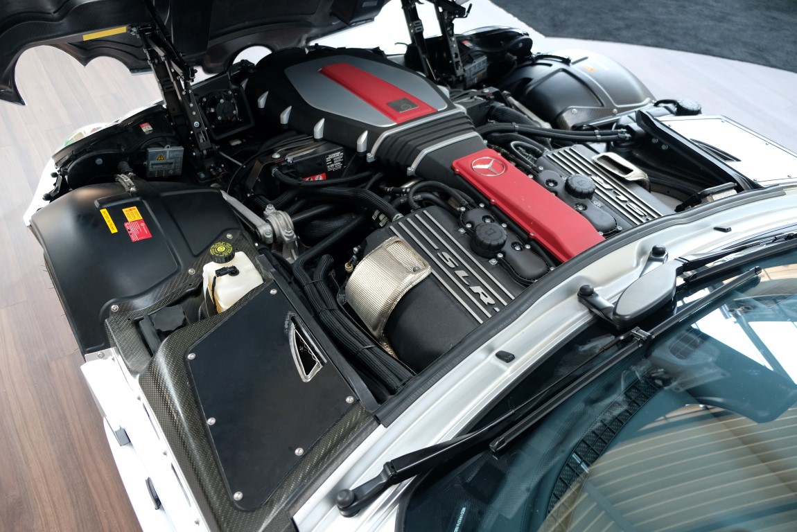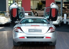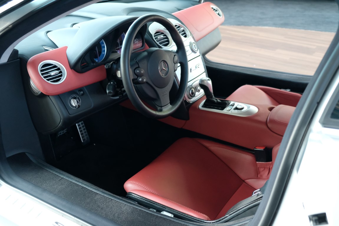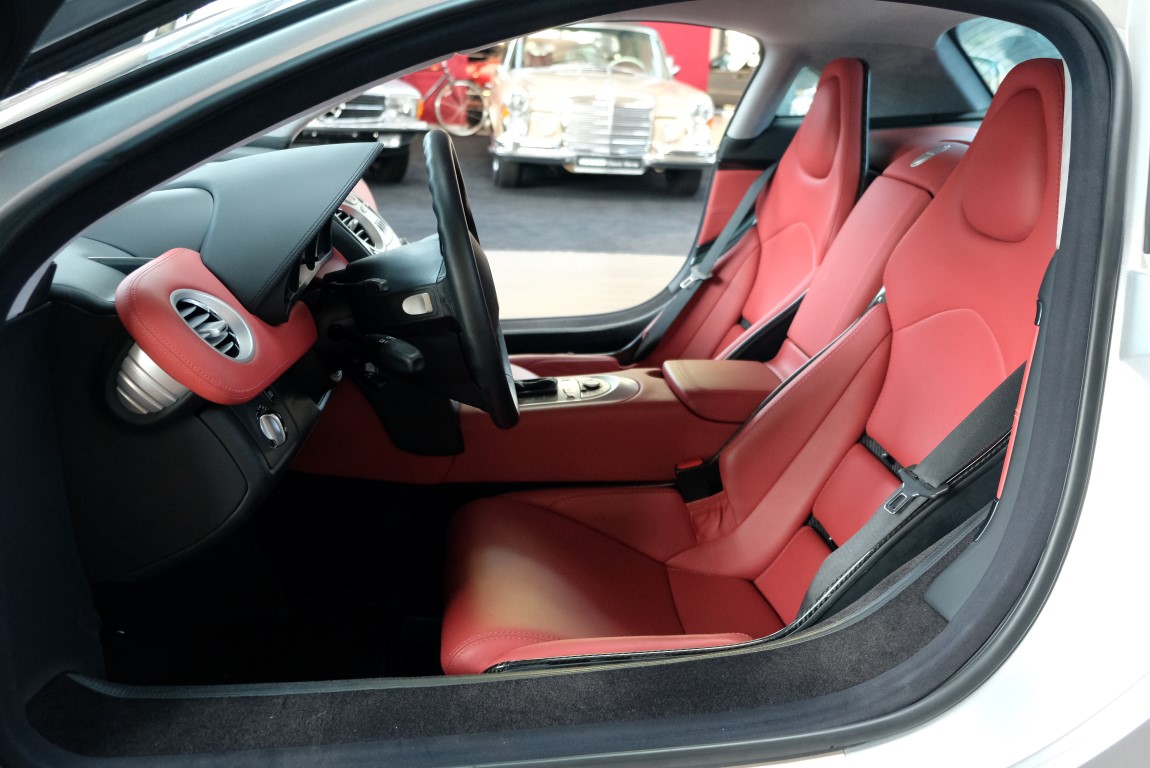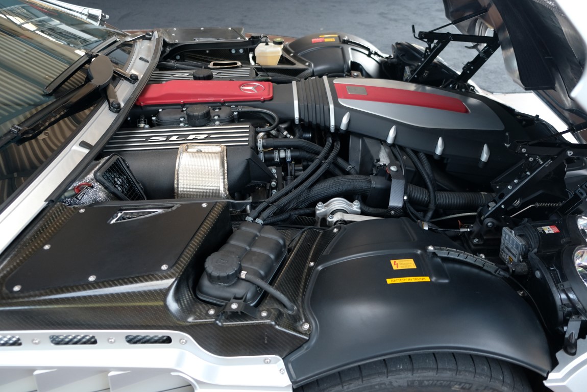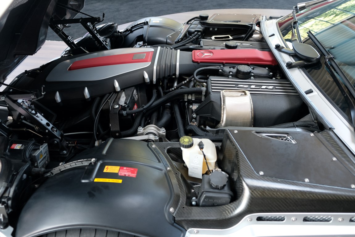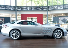 Im Design finden sich Flügeltüren und klassische Entlüftungsöffnungen an den Seiten wieder, die deutlich an den Stil der erfolgreichen 300 SL Uhlenhaut Coupés der 1950er Jahre erinnern. Dank kräftigem 5.5 Liter großen 460KW/626 PS leistenden V 8 Zylindermotor, kann der Supersportwagen eine Höchstgeschwindigkeit von 334 km/h erreichen. Wir freuen uns, Ihnen einen solchen Supersportwagen in Bestzustand anbieten zu können. Das Fahrzeug wurde Ende März 2005 an einen Immobilienmakler im nordöstlichen Hessen ausgeliefert. Er wurde pro Jahr gerade einmal 650 km sorgsam bewegt, um Standschäden zu vermeiden. Das Fahrzeug präsentiert sich neuwertig.