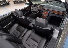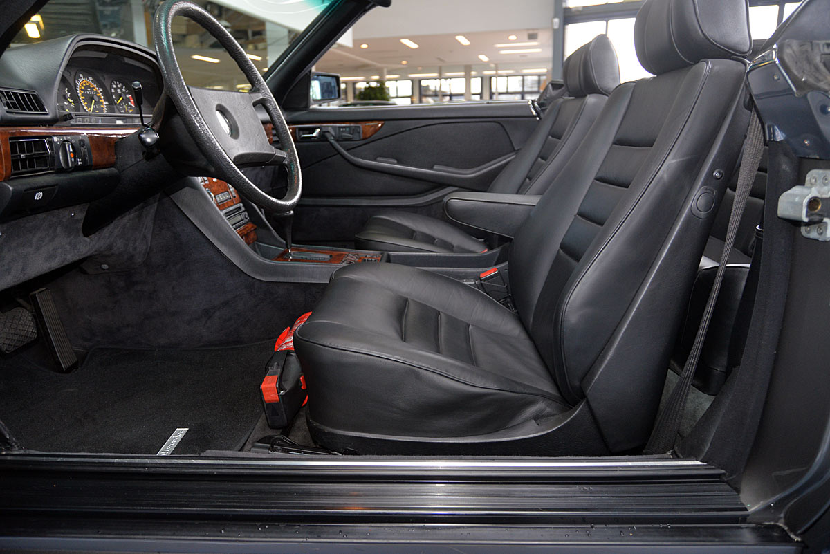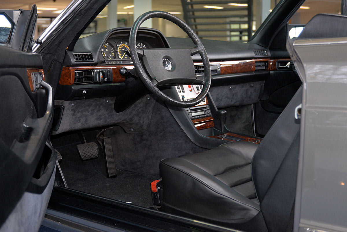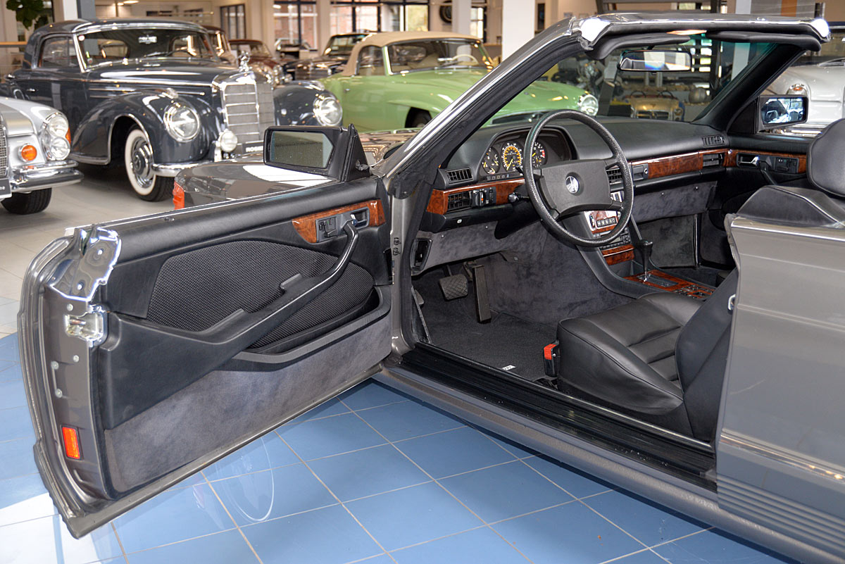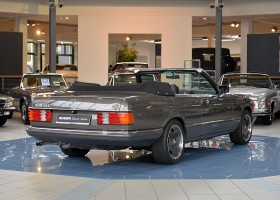 In the early 1980s they were considered one of the most successful refiners of Mercedes-Benz and BMW vehicles. The clientele of the conspicuous and very expensive SGS models came mainly from Arab states or the USA. The vehicle offered here is one of the very rare SGS Cabriolets built in small numbers on the basis of the Mercedes-Benz 500SEC Coupé. The elegant cabriolet was first registered on 29.02.1984 at the car dealership Rosier in Menden, which the original cardboard letter occupies with only a single entry. At the time, it showed impressively what a "noble tuner", as SGS lovingly called it at the time, was able to do, in addition to the already high-quality equipment of the manufacturer. The delivery color was "anthracite gray metallic" with fine nappa leather in "black", the electrically operated convertible roof fits in black.