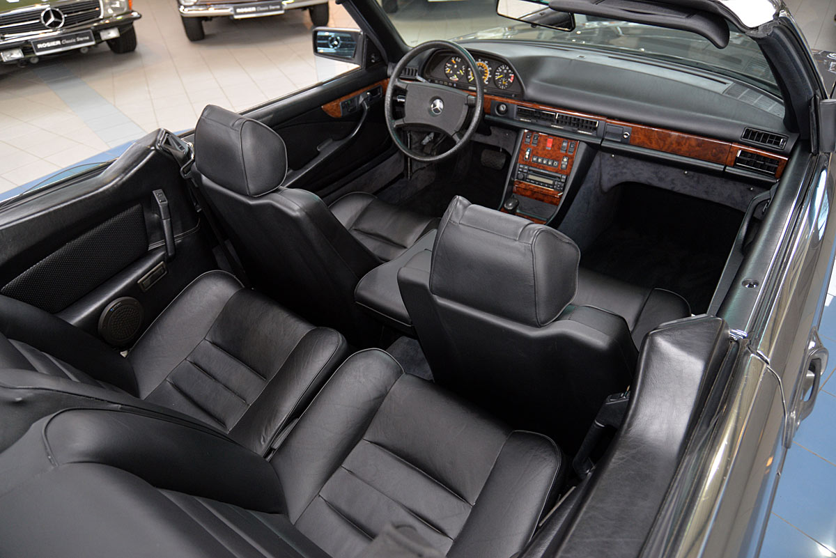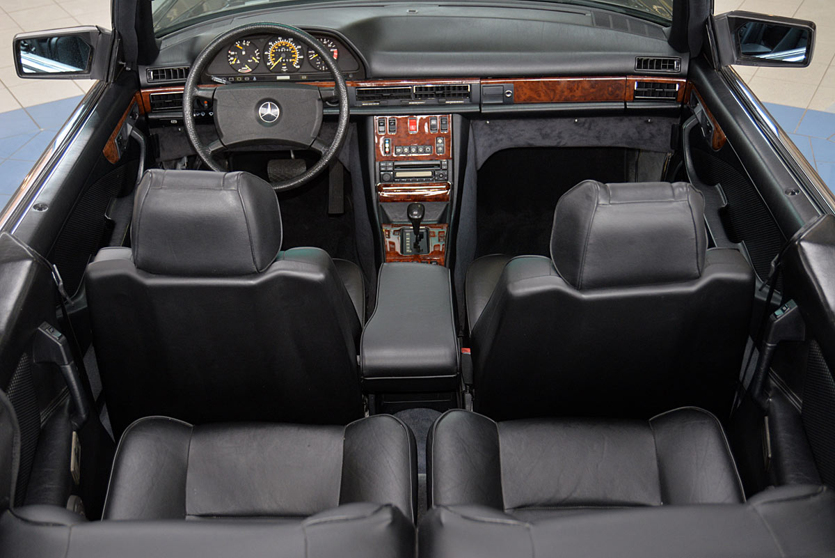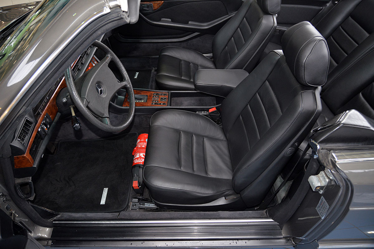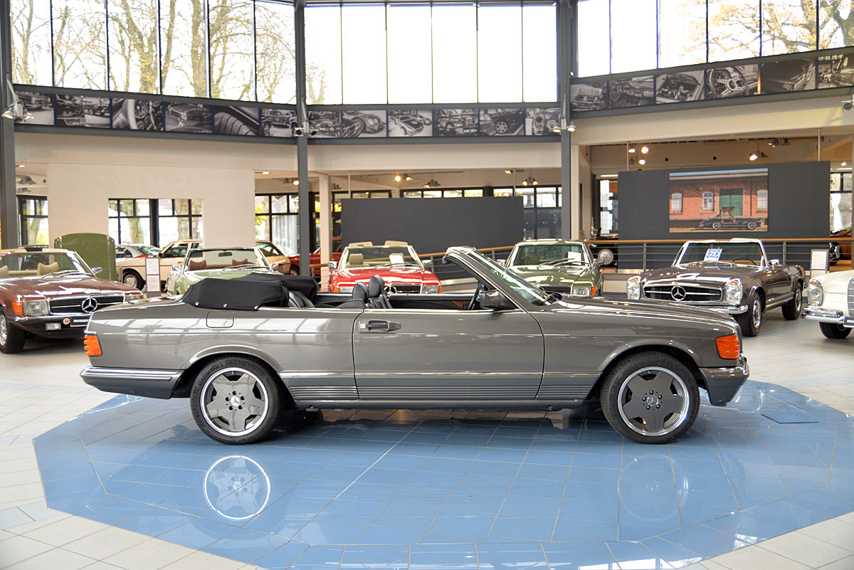 In the early 1980s they were considered one of the most successful refiners of Mercedes-Benz and BMW vehicles. The clientele of the conspicuous and very expensive SGS models came mainly from Arab states or the USA. The vehicle offered here is one of the very rare SGS Cabriolets built in small numbers on the basis of the Mercedes-Benz 500SEC Coupé. The elegant cabriolet was first registered on 29.02.1984 at the car dealership Rosier in Menden, which the original cardboard letter occupies with only a single entry. At the time, it showed impressively what a "noble tuner", as SGS lovingly called it at the time, was able to do, in addition to the already high-quality equipment of the manufacturer. The delivery color was "anthracite gray metallic" with fine nappa leather in "black", the electrically operated convertible roof fits in black.