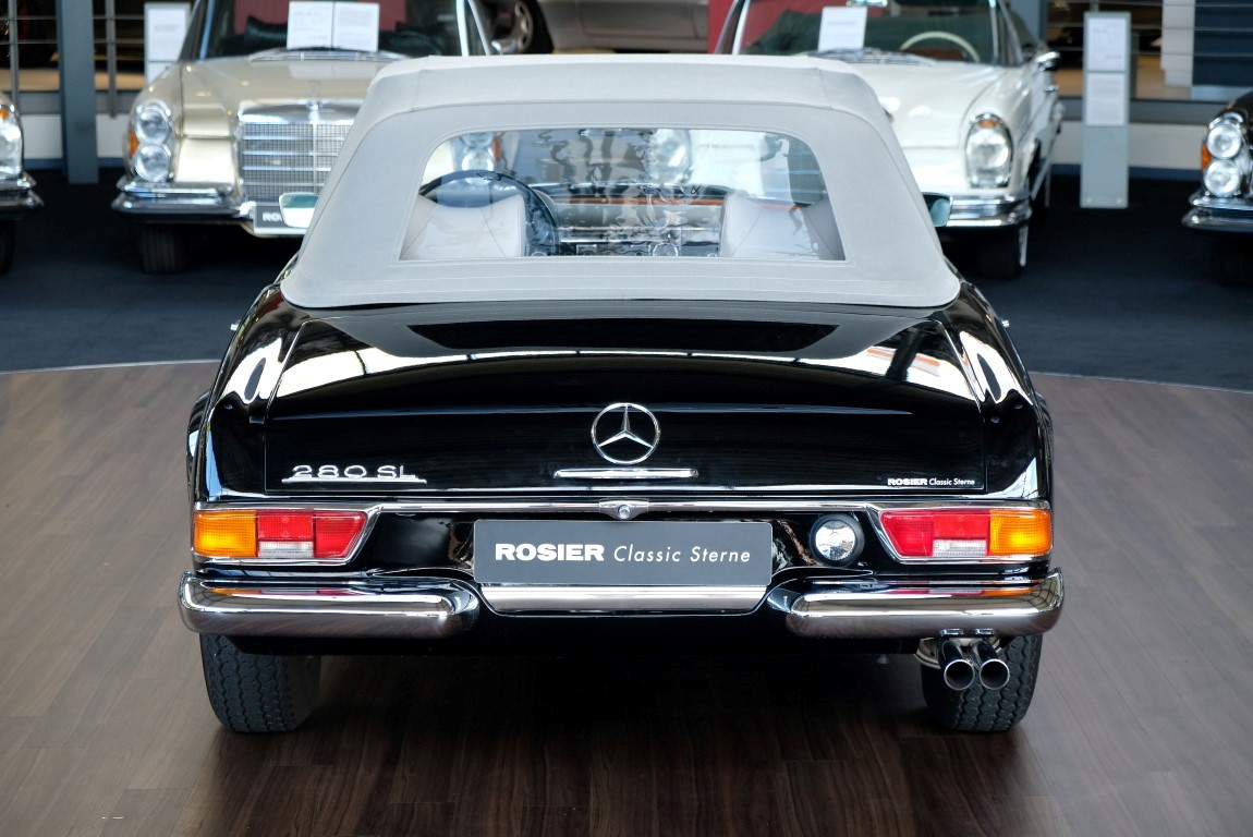 They were just around 70 years old and wanted to fulfill a long-cherished dream.They had a lot of fun at the pagoda. You kept the pagoda for about 12 years and did not give it until you decided to move to a retirement home. So the car came to Germany, to Rosier Classic sterne in Oldenburg. Here the car was subjected to extensive restoration, in the scope of which the car was completely disassembled and rebuilt. The technique has been revised and a new paint applied. When the car was completed in 2013, he found a new home in the high-quality collection of a long-standing customer of the house. Now that the collection was supplemented by another high-quality classic, had to give way to space of one of the existing vehicles. We had the choice and opted for the black 280 SL pagoda. A dream car that will surely find a new home quickly.