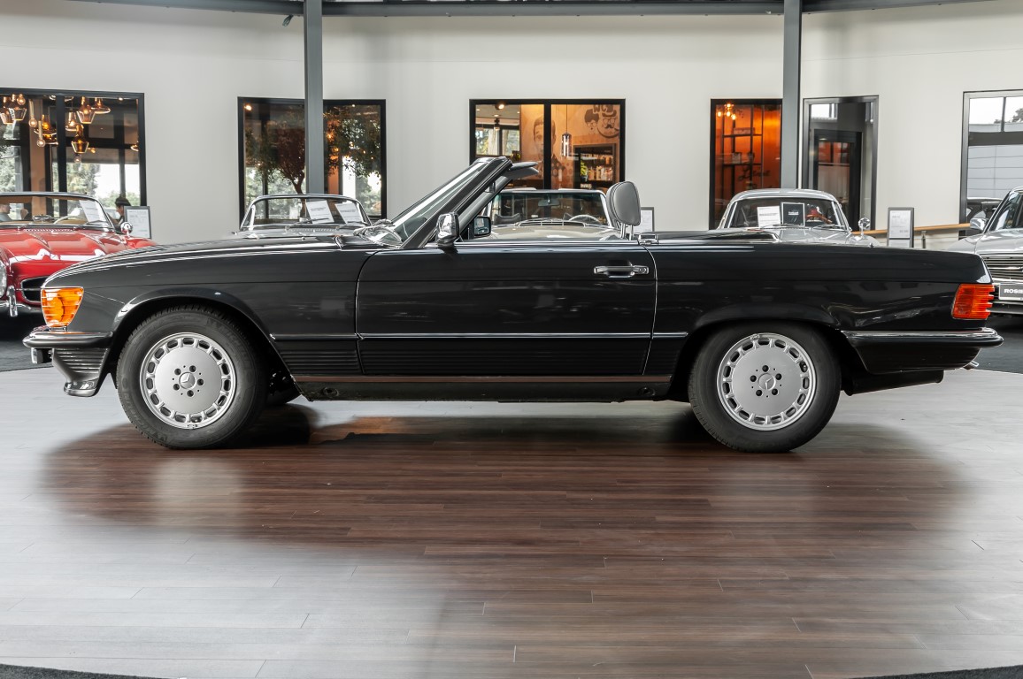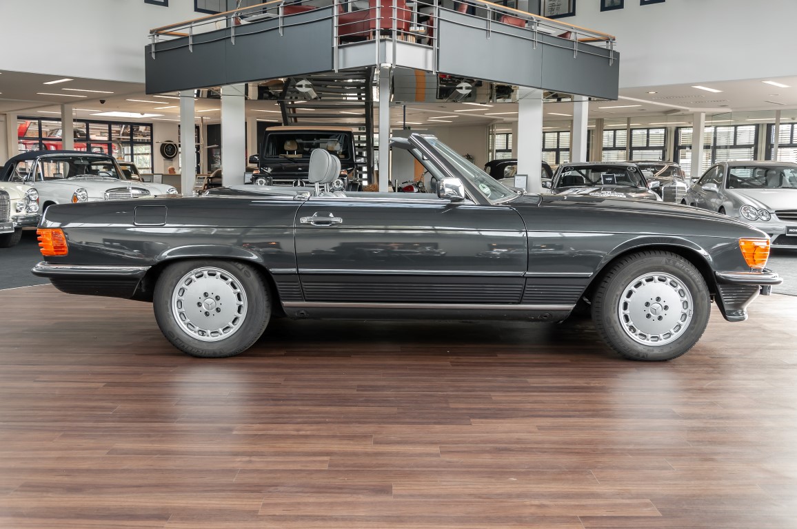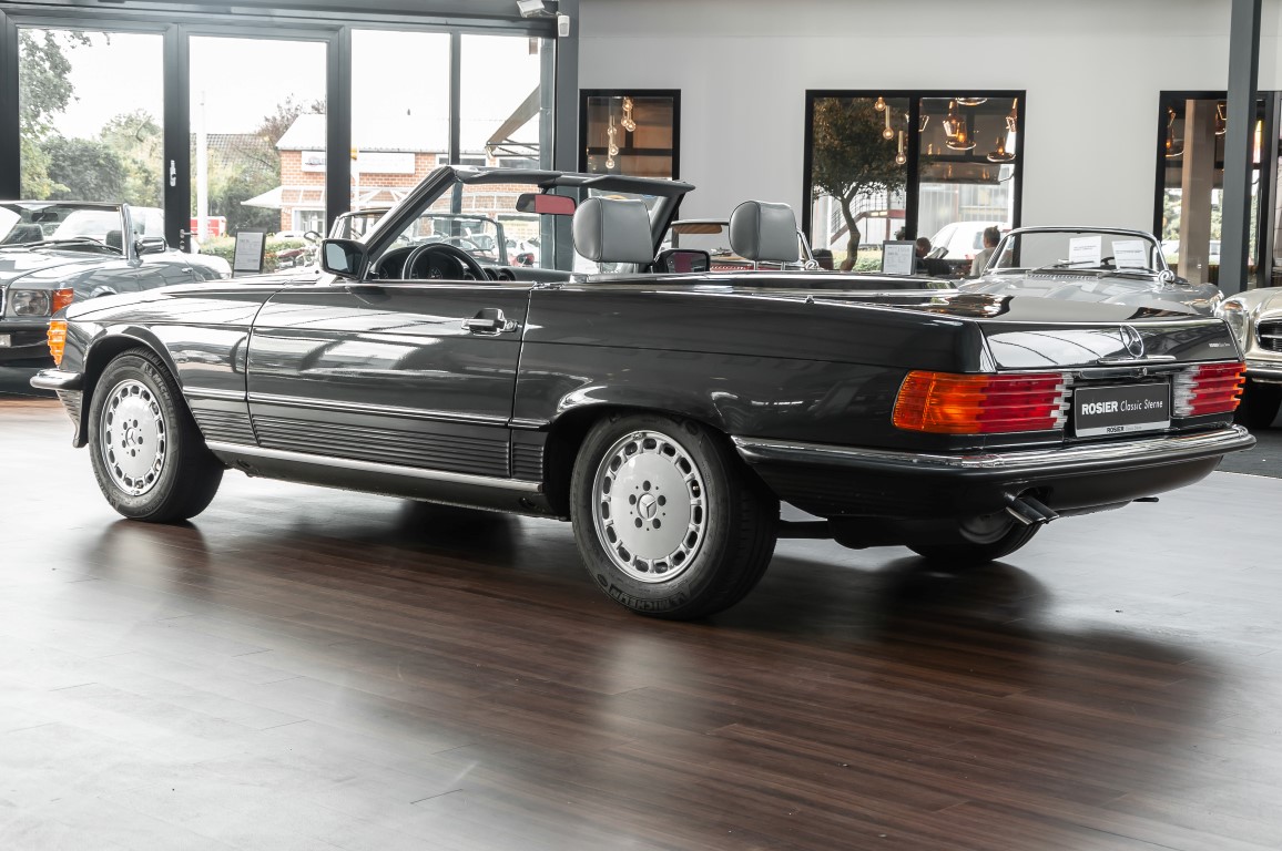 Only about 6 % of all 107 series roadsters built were the 300 SL in the model-maintained version that was available from August 1985 to June 1989 - 13,742 vehicles to be exact. Today, they are the most popular variant of this type, which knows how to convince with a classic appearance and yet combines comfort and safety aspects of modern vehicles. This as-new example has covered an astonishing 15,550 km in 30 years. With three previous owners (one a long-time first owner, since then in collector's hand) a vehicle in such a condition might be hard to find. The zetilose appearance in blue-black metallic in combination with leather in alpaca grey is guaranteed with this style icon. The new owner now has the choice: rather drive and enjoy or collect and preserve - both are possible. The SL receives a customer service, new TÜV and one year warranty. Experience this SL icon! Welcome to your certified Mercedes-Benz ClassicPartner ROSIER Classic Sterne.