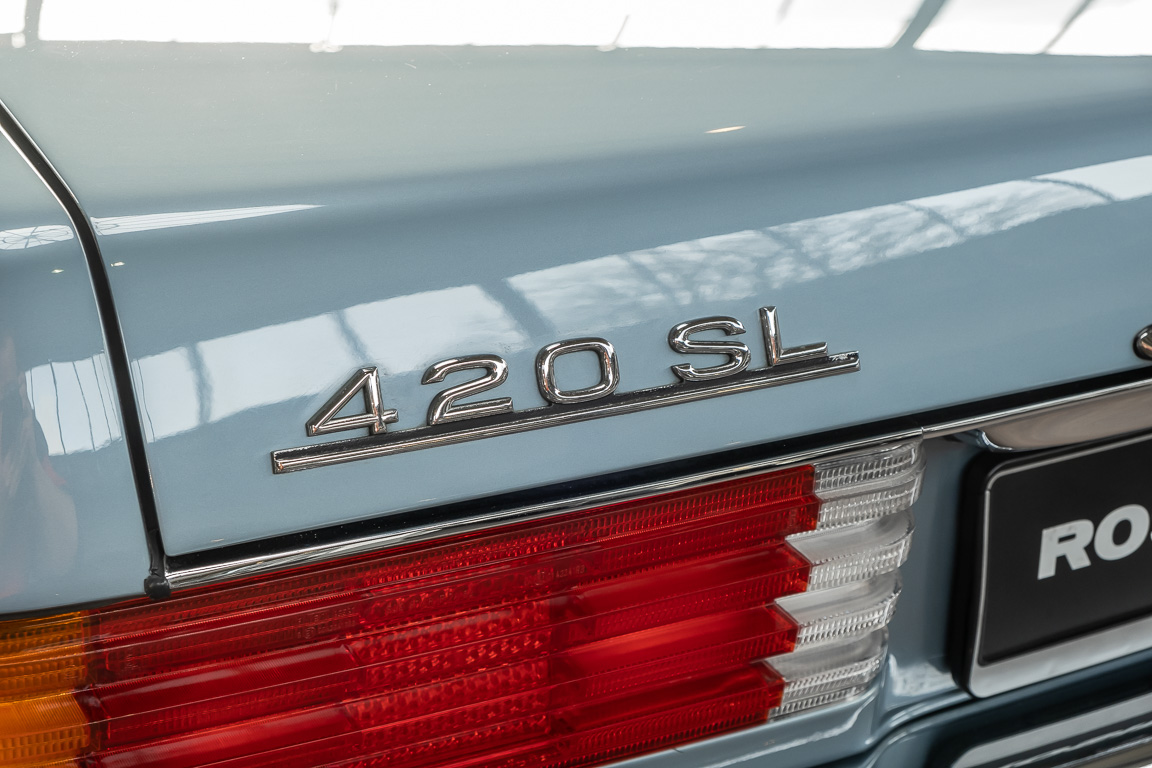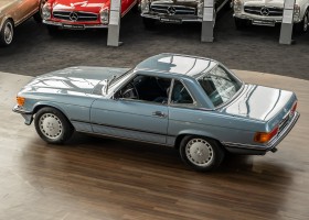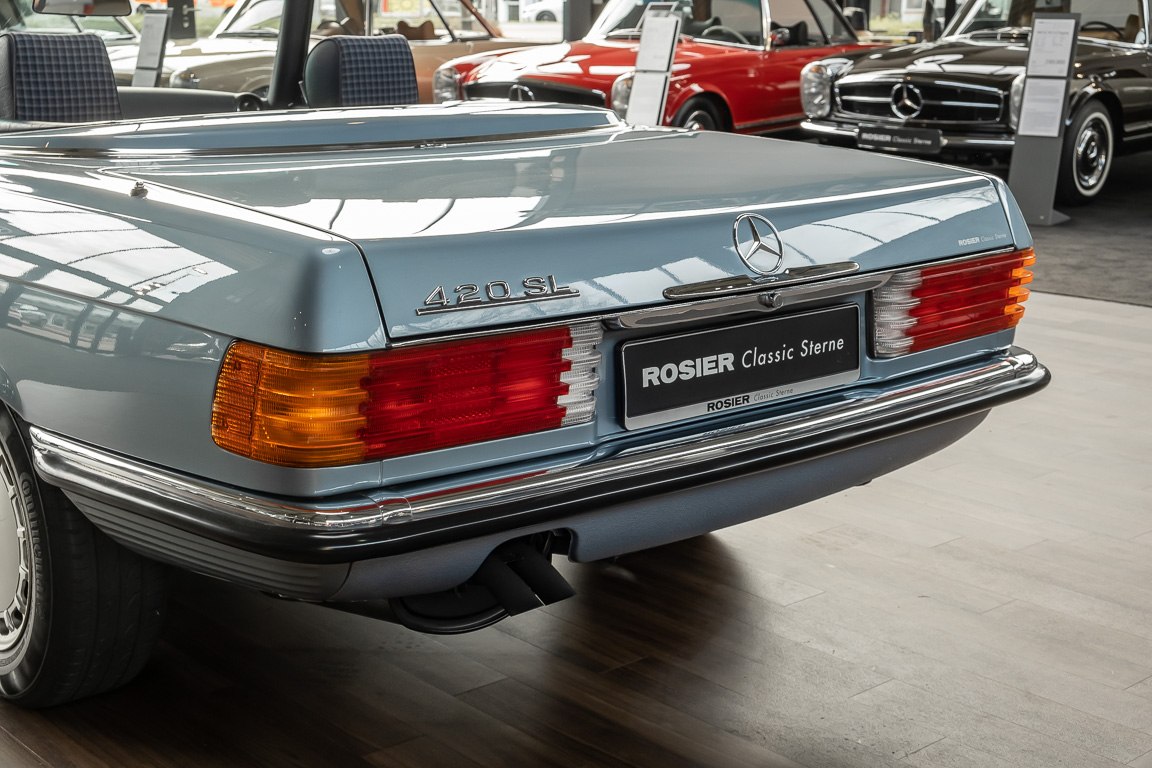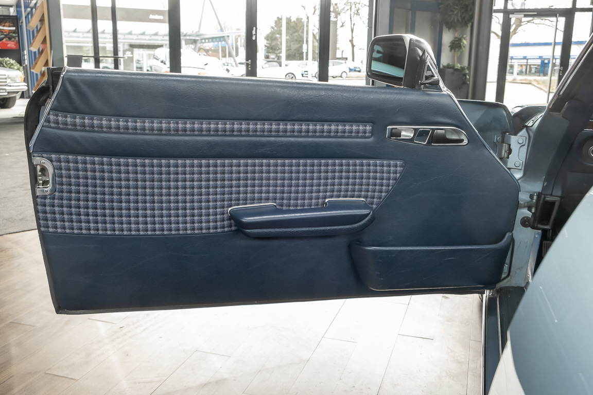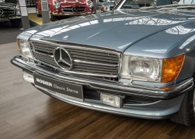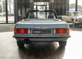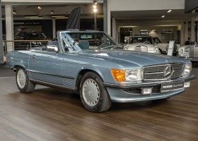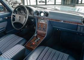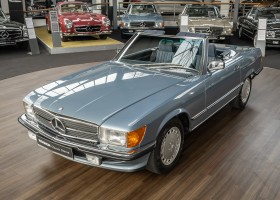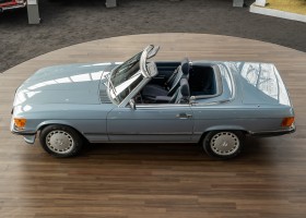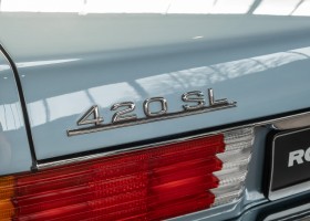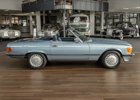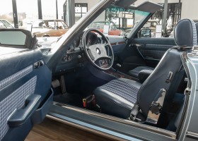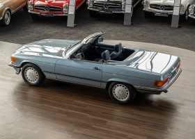 We are pleased to offer you this wonderful 420 SL of the 107 series. The charm of this dreamlike roadster in Diamond Blue Metallic is enormous and immediately enchants its environment. With a sensational mileage of just 14,700 km and an incredible state of care, the vehicle convinces not only visually but also technically on the whole line.