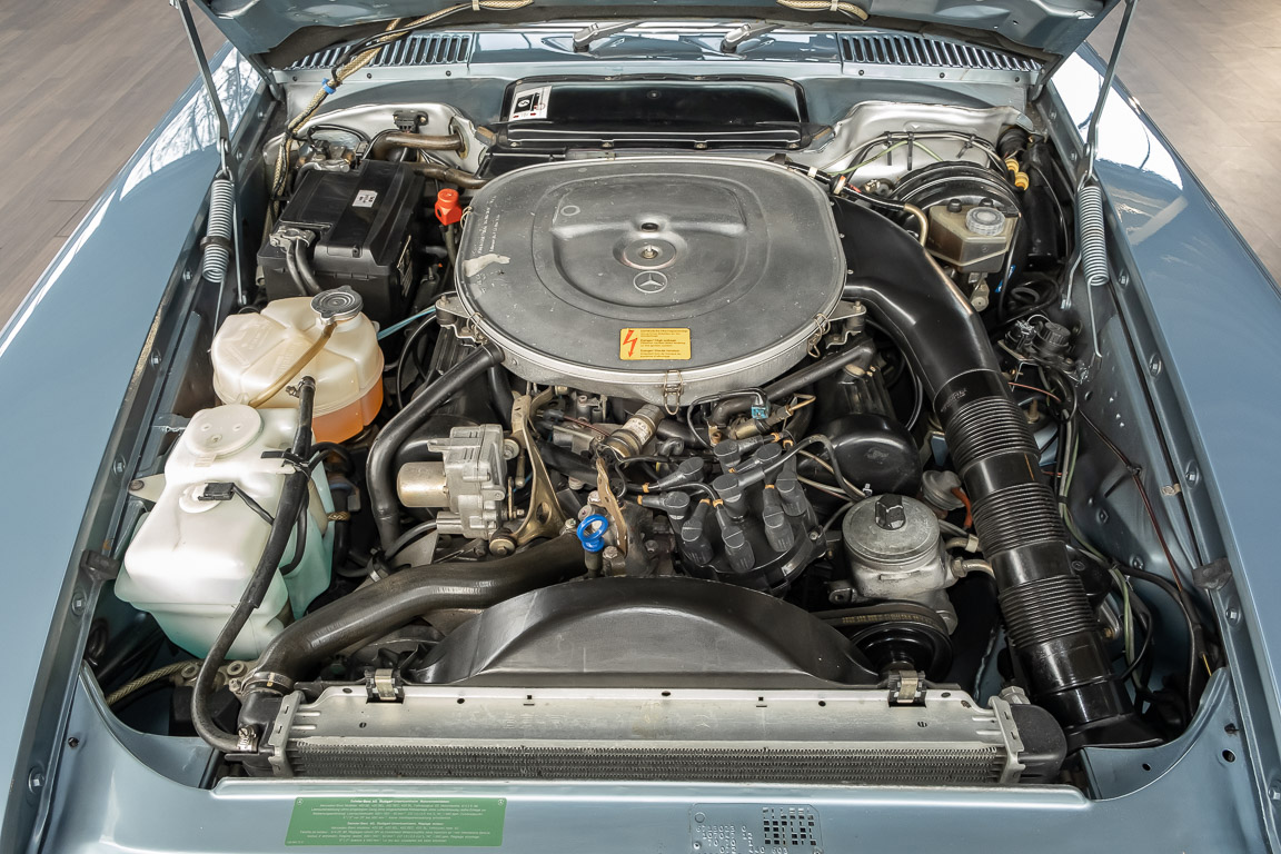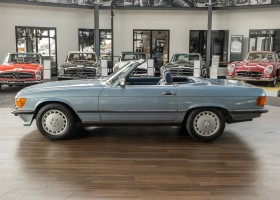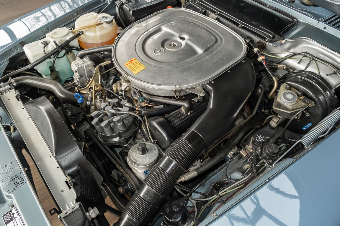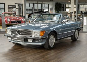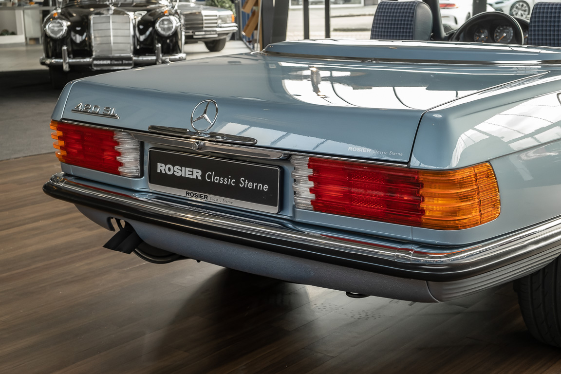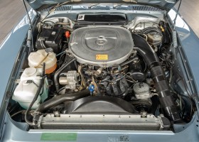 We are pleased to offer you this wonderful 420 SL of the 107 series. The charm of this dreamlike roadster in Diamond Blue Metallic is enormous and immediately enchants its environment. With a sensational mileage of just 14,700 km and an incredible state of care, the vehicle convinces not only visually but also technically on the whole line.