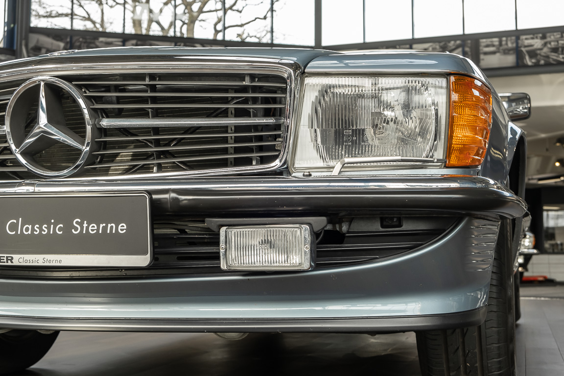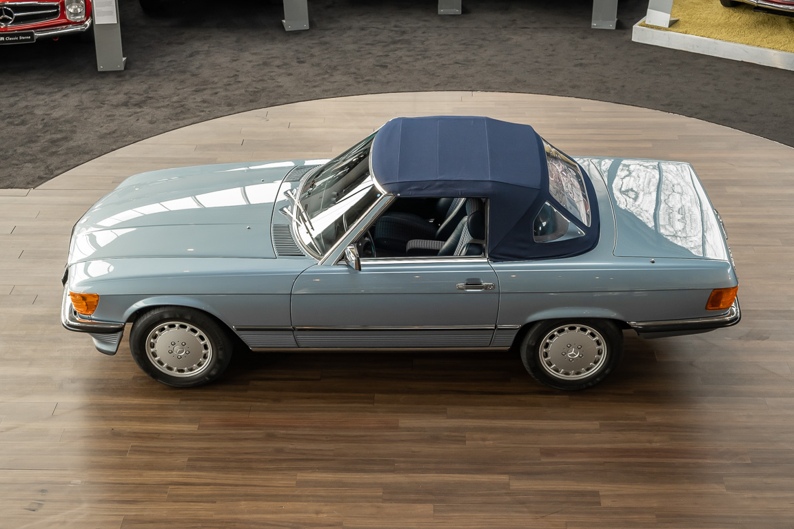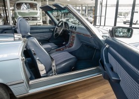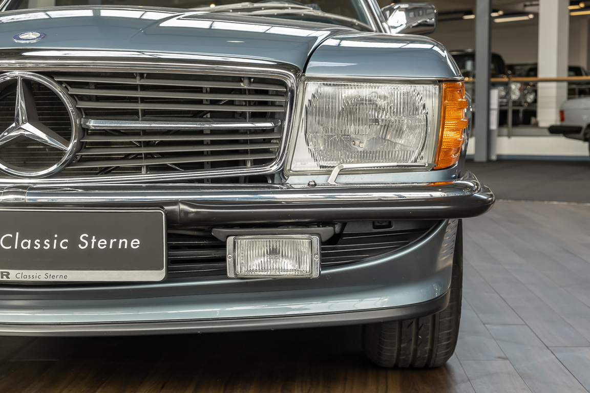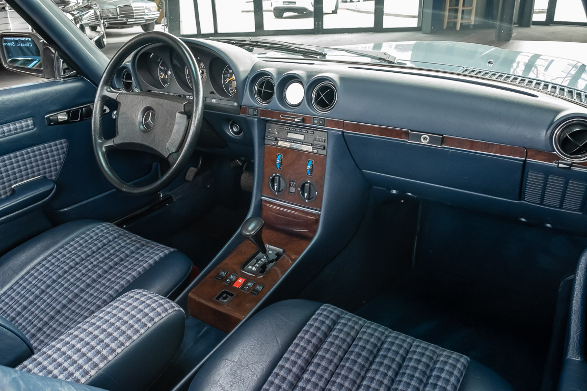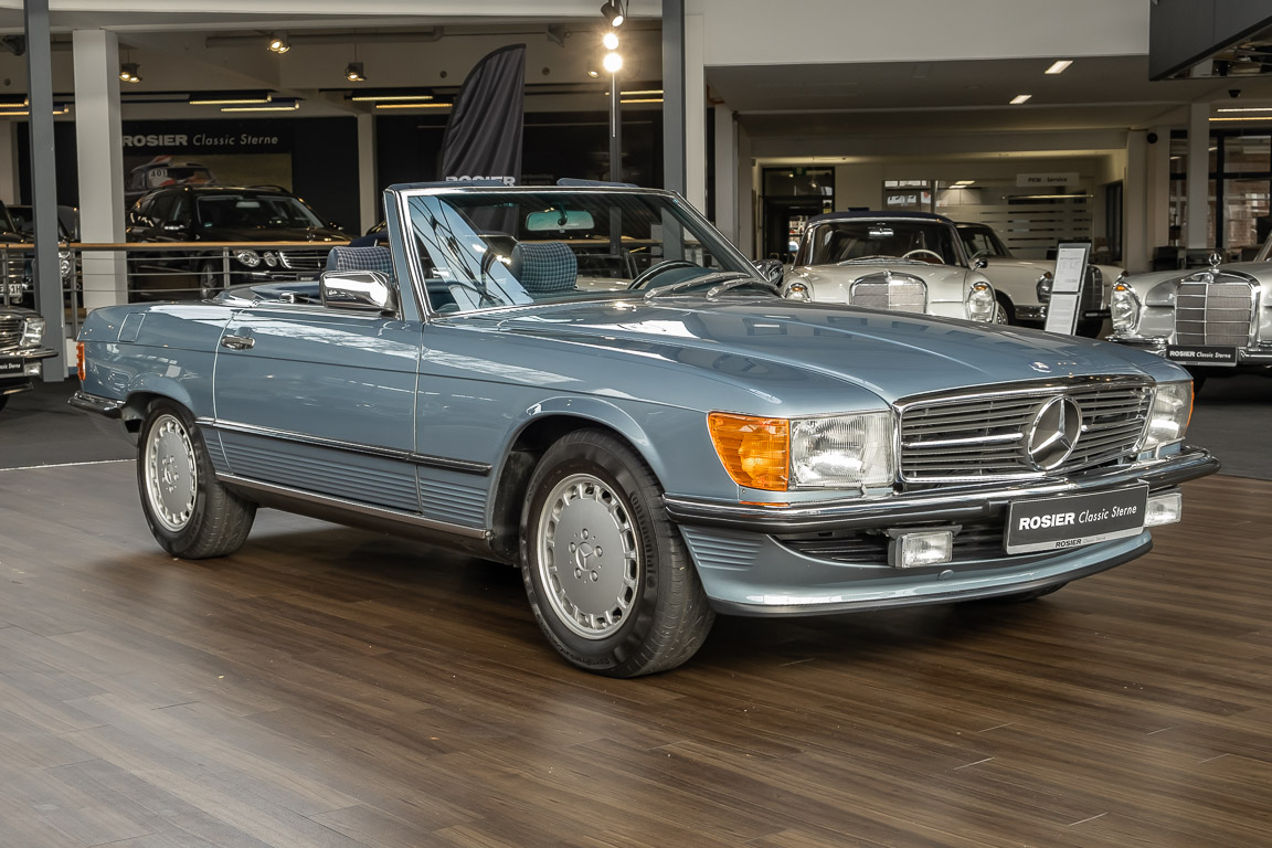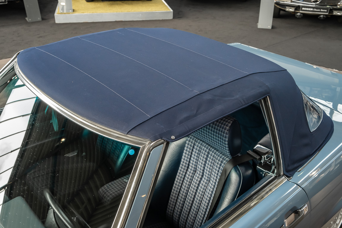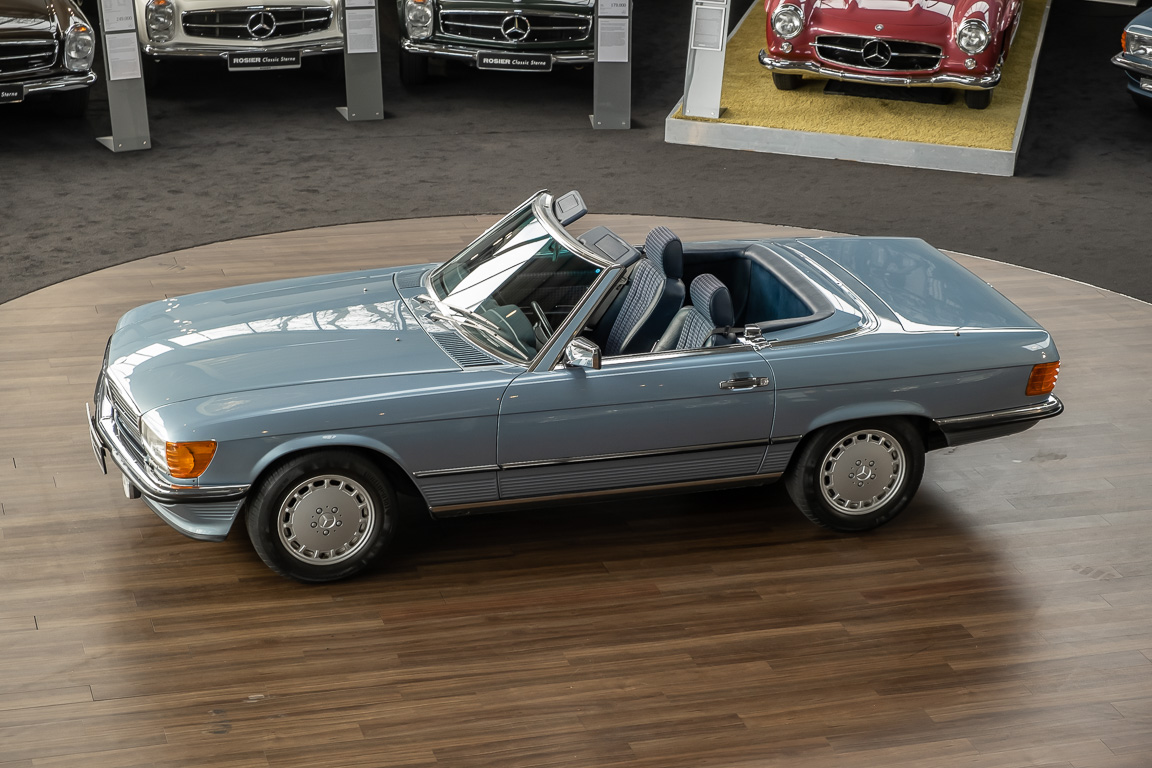 The present service booklet reveals an interesting history of this R107: On May 17, 1988, the vehicle was registered to a renowned hotel in the heart of Zurich. Probably the owner of the hotel fulfilled a long-cherished dream with this diamond-blue gem. Just a few weeks after delivery of the vehicle, in a Zurich suburb, the hotelier set off on a trip to Vigo, a picturesque town on the west coast of Spain. Judging by his Spanish family name, probably a visit to his homeland. It's hard to imagine the gorgeous roads that were traversed on the nearly 2,000-kilometer drive. Past Lake Geneva, through Lyon and Bordeaux, and through Spain's mountainous Basque country.