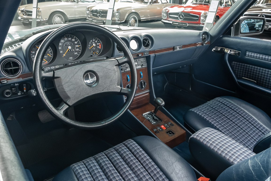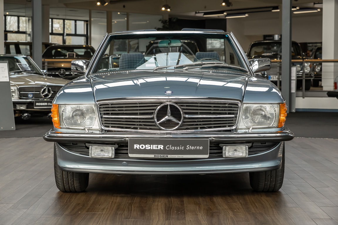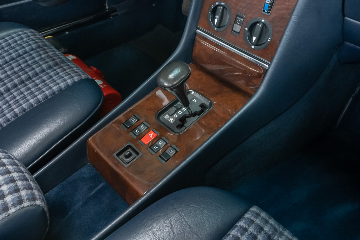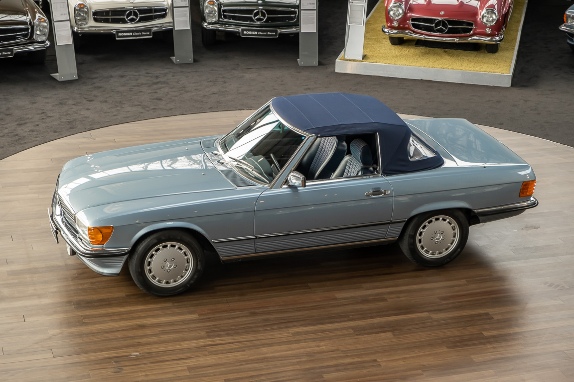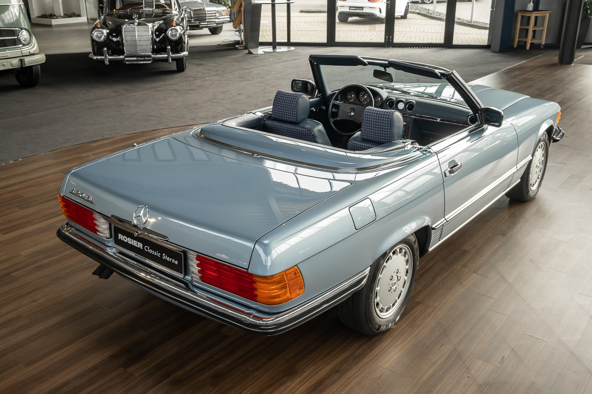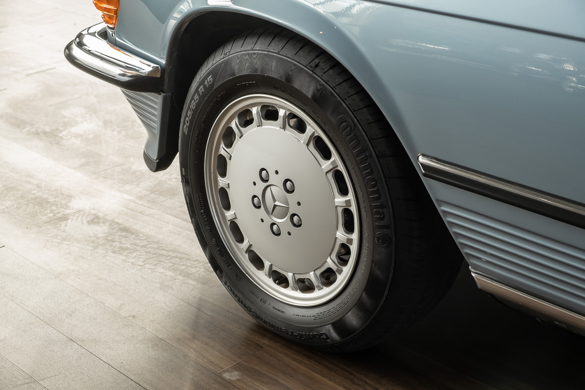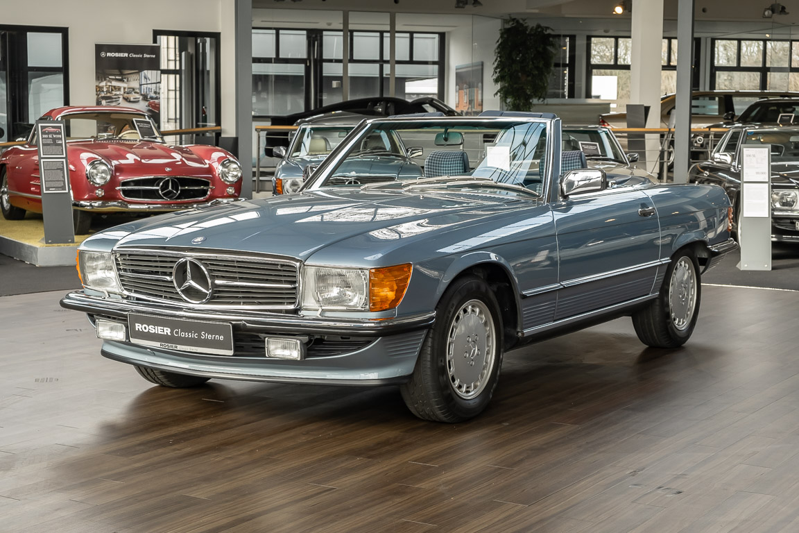 The present service booklet reveals an interesting history of this R107: On May 17, 1988, the vehicle was registered to a renowned hotel in the heart of Zurich. Probably the owner of the hotel fulfilled a long-cherished dream with this diamond-blue gem. Just a few weeks after delivery of the vehicle, in a Zurich suburb, the hotelier set off on a trip to Vigo, a picturesque town on the west coast of Spain. Judging by his Spanish family name, probably a visit to his homeland. It's hard to imagine the gorgeous roads that were traversed on the nearly 2,000-kilometer drive. Past Lake Geneva, through Lyon and Bordeaux, and through Spain's mountainous Basque country.