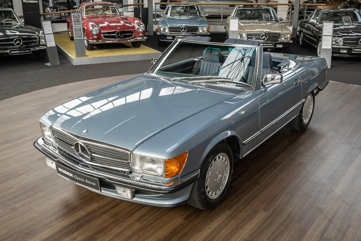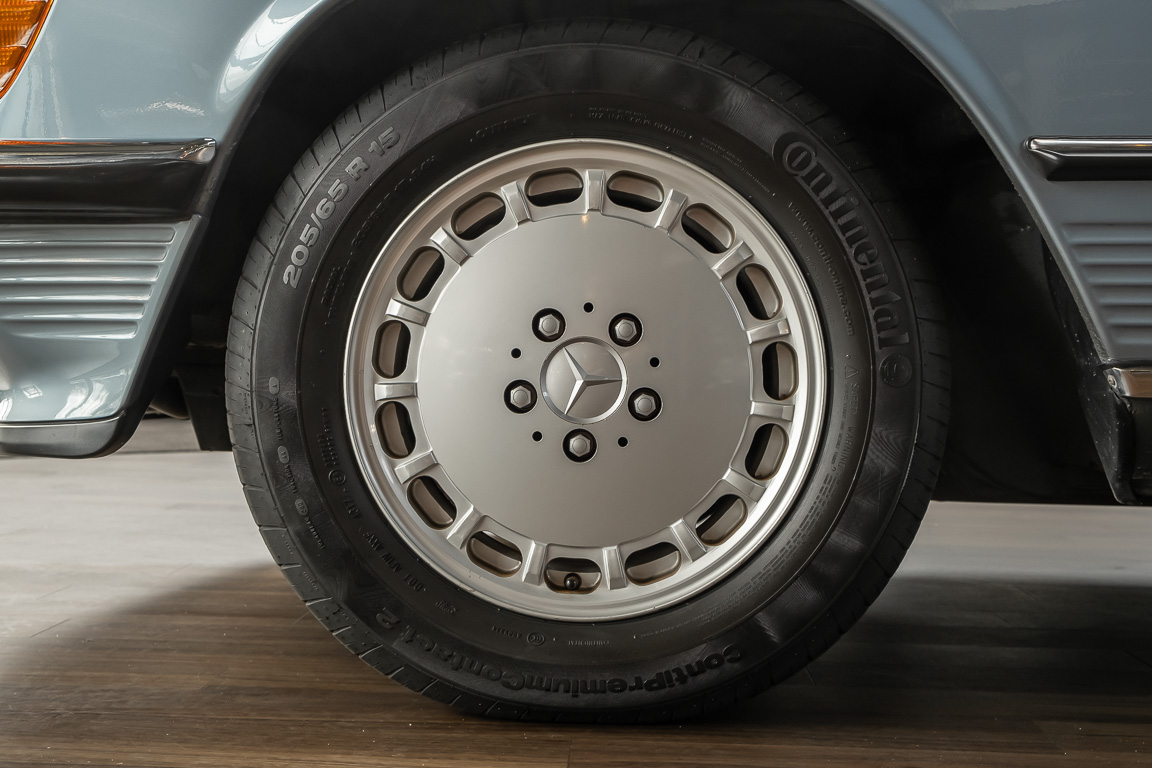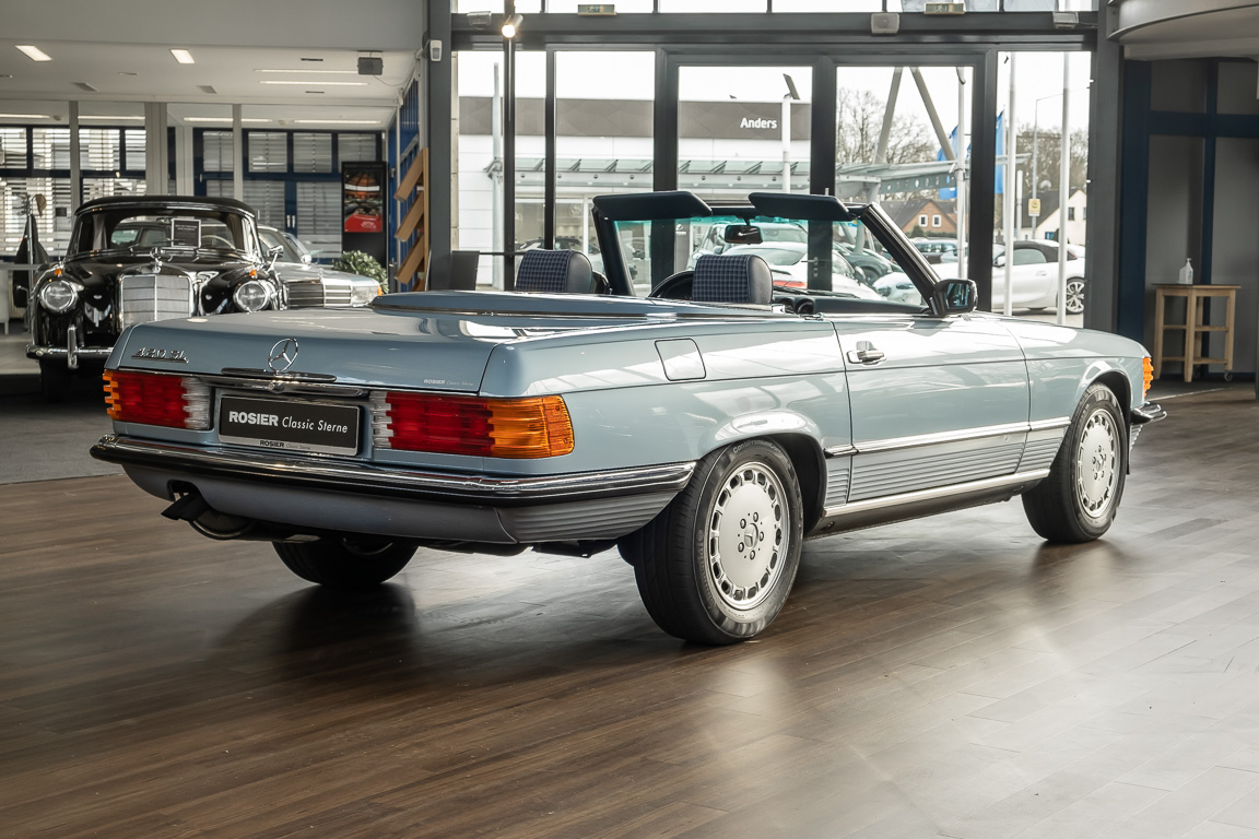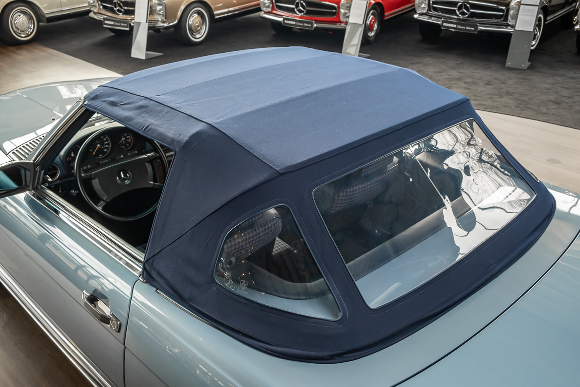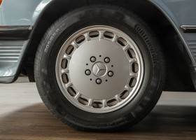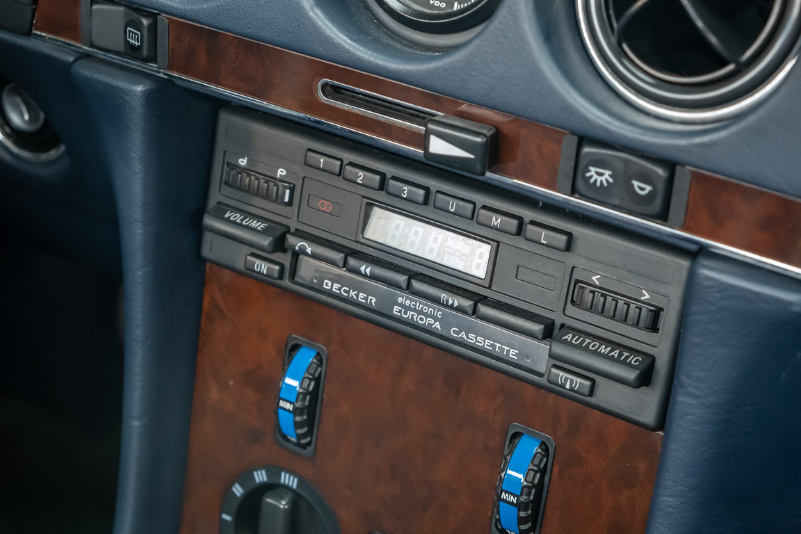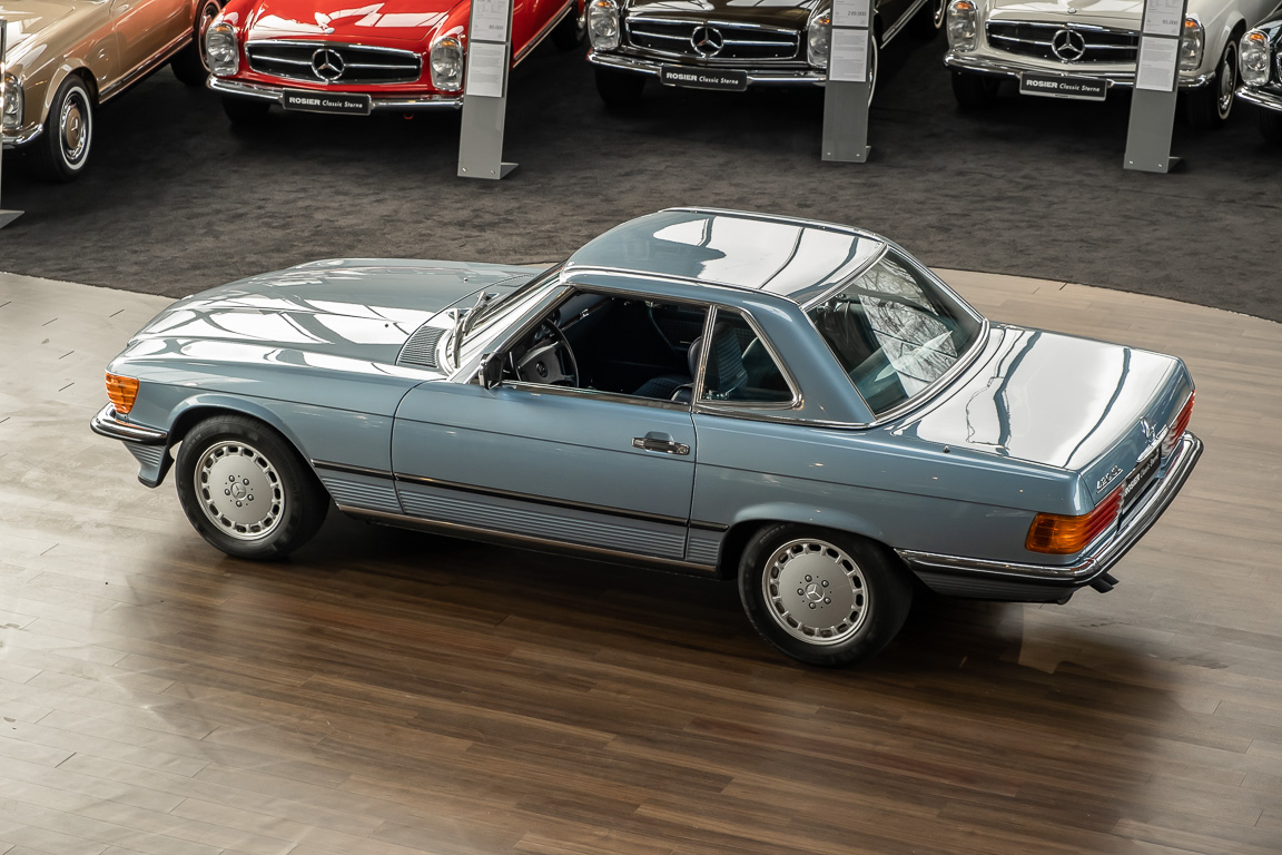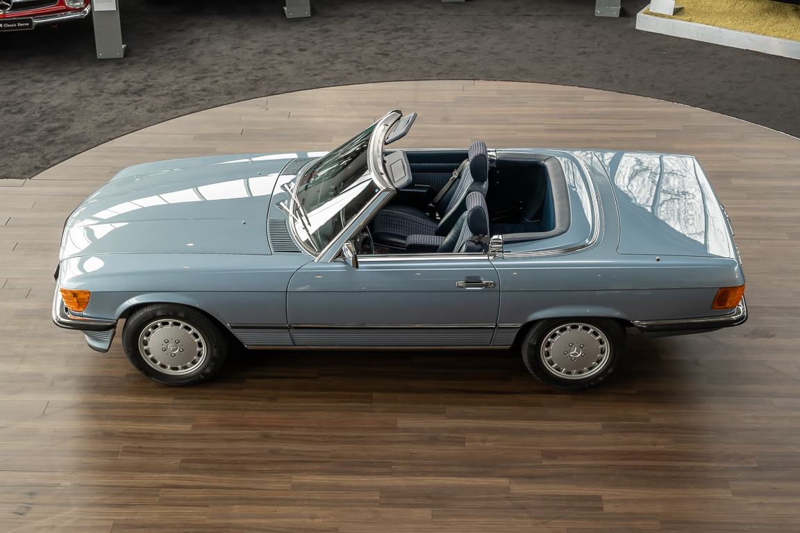 The present service booklet reveals an interesting history of this R107: On May 17, 1988, the vehicle was registered to a renowned hotel in the heart of Zurich. Probably the owner of the hotel fulfilled a long-cherished dream with this diamond-blue gem. Just a few weeks after delivery of the vehicle, in a Zurich suburb, the hotelier set off on a trip to Vigo, a picturesque town on the west coast of Spain. Judging by his Spanish family name, probably a visit to his homeland. It's hard to imagine the gorgeous roads that were traversed on the nearly 2,000-kilometer drive. Past Lake Geneva, through Lyon and Bordeaux, and through Spain's mountainous Basque country.