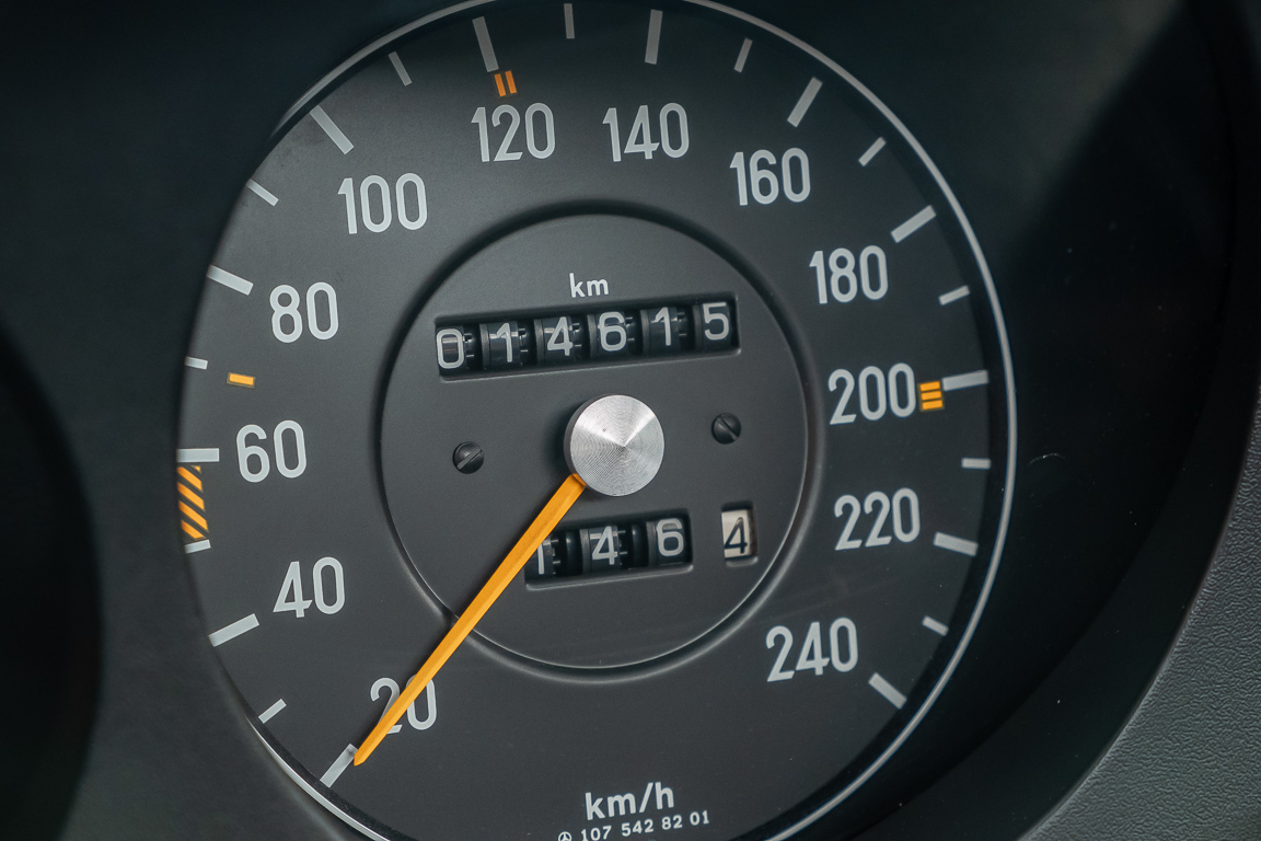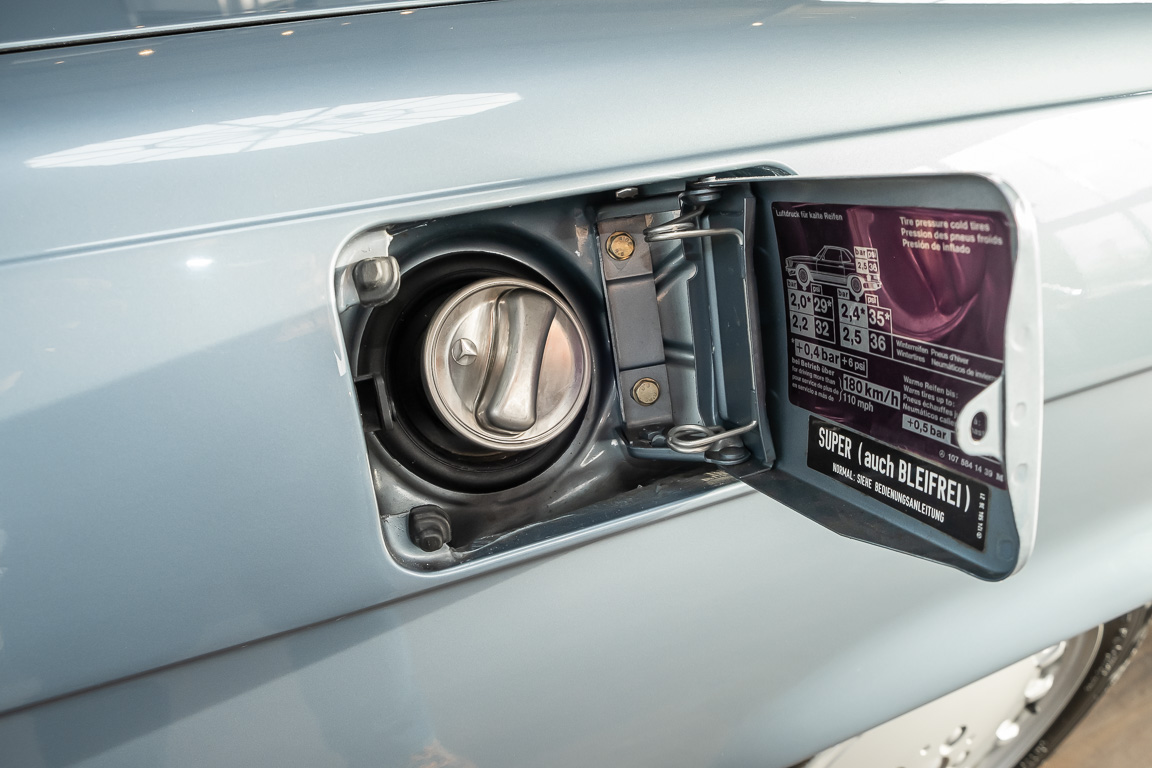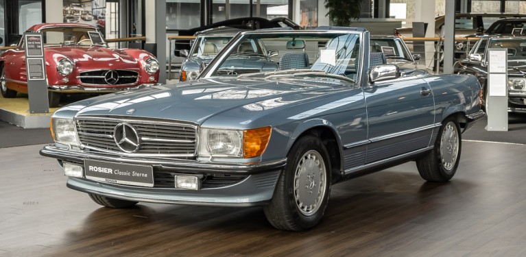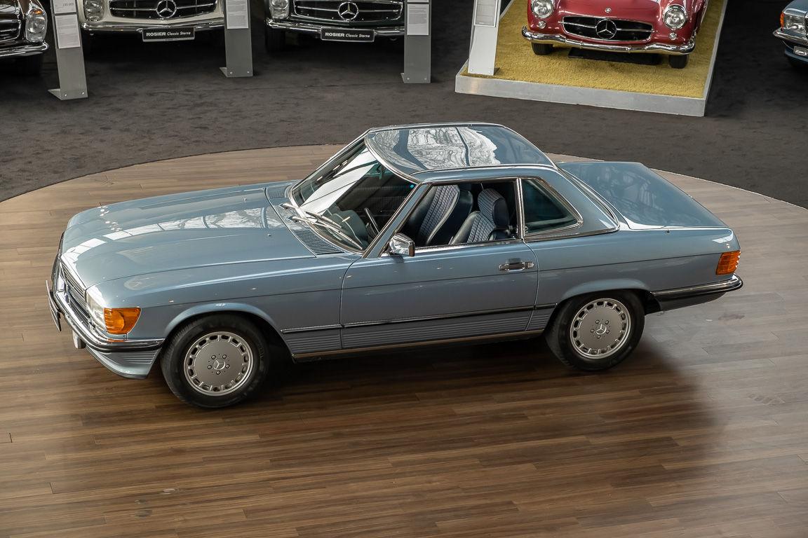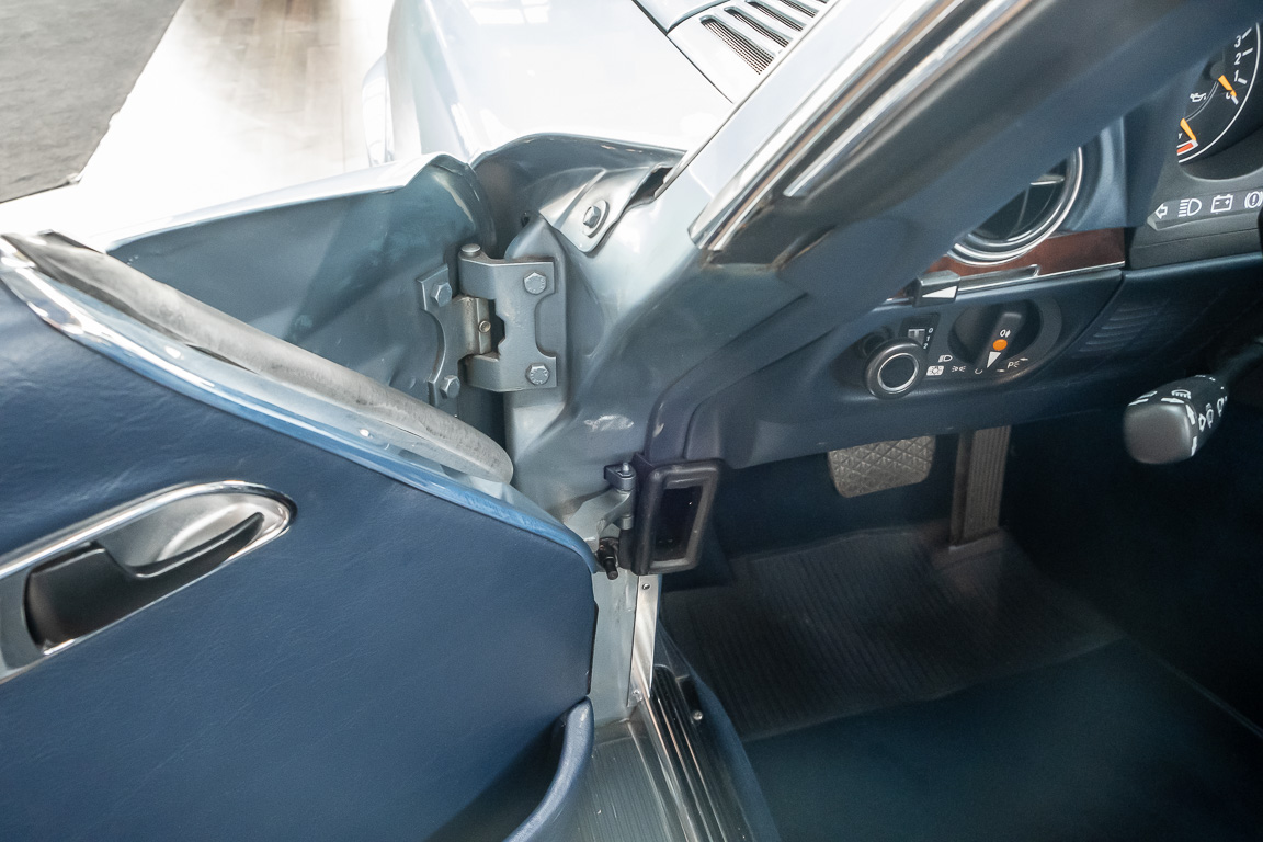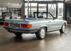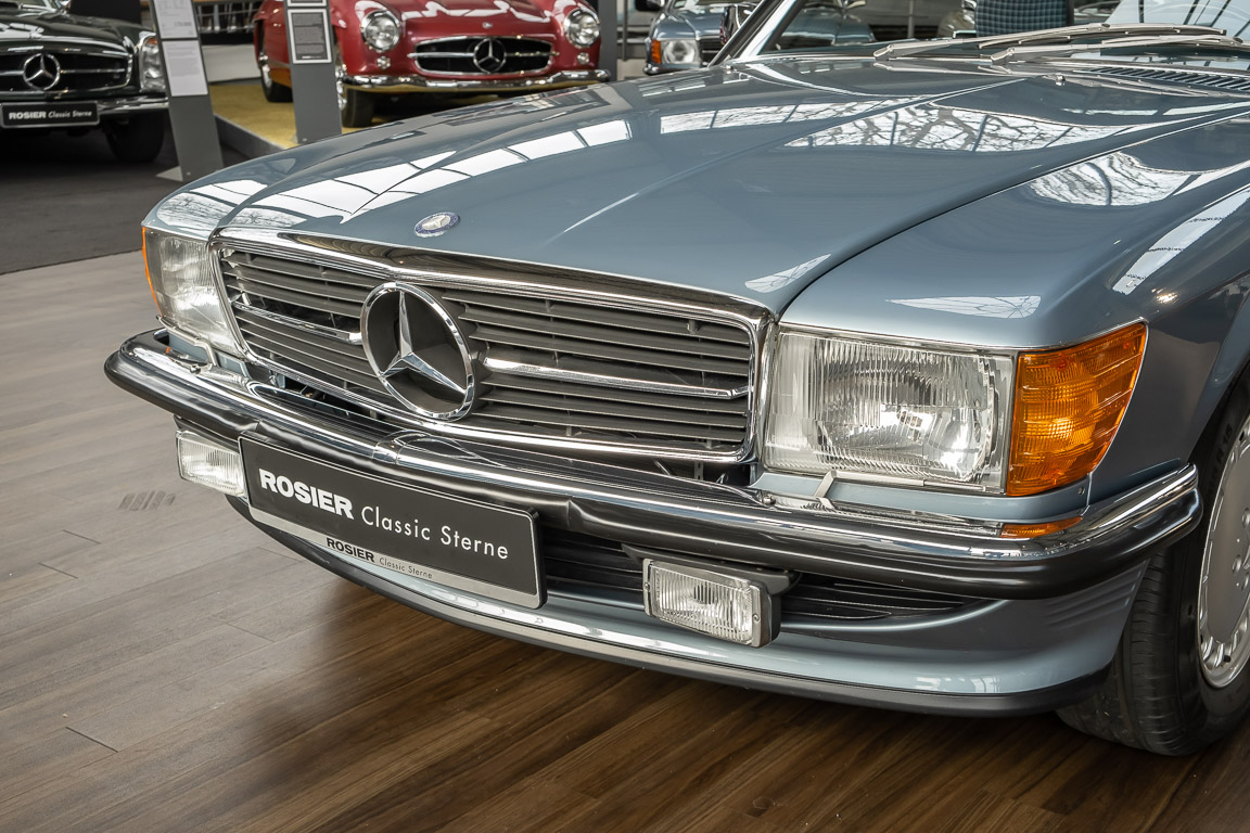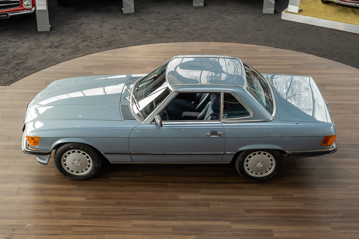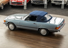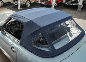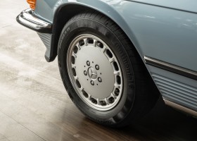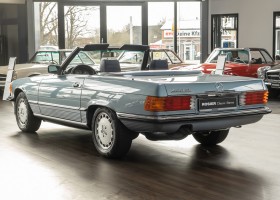 The present service booklet reveals an interesting history of this R107: On May 17, 1988, the vehicle was registered to a renowned hotel in the heart of Zurich. Probably the owner of the hotel fulfilled a long-cherished dream with this diamond-blue gem. Just a few weeks after delivery of the vehicle, in a Zurich suburb, the hotelier set off on a trip to Vigo, a picturesque town on the west coast of Spain. Judging by his Spanish family name, probably a visit to his homeland. It's hard to imagine the gorgeous roads that were traversed on the nearly 2,000-kilometer drive. Past Lake Geneva, through Lyon and Bordeaux, and through Spain's mountainous Basque country.