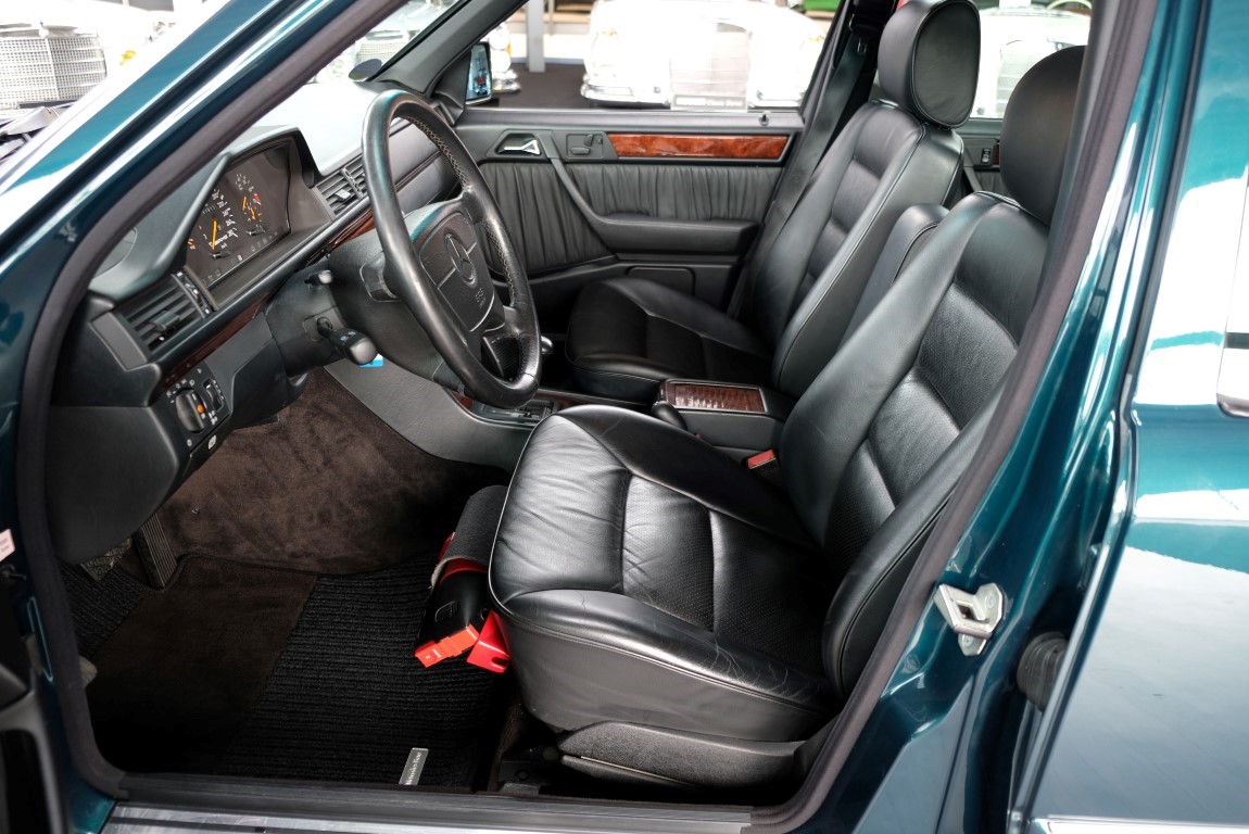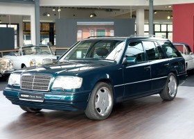 Die W 124 Reihe aus dem Hause Mercedes-Benz wurde höchst erfolgreich vom Käufermarkt der späten 1980er bis in die mittleren 1990er Jahre aufgenommen. Großer Beliebtheit erfreuten sich die zuverlässigen T-Modelle, die mit einer eleganten Linie und reichlich Platz im Innenraum aufwarten konnten. Wem die Serienversion des E320 zu wenig Power anbot, der konnte zum E 36 des Haustuners AMG greifen. Er wartet mit munteren 272 PS auf und bietet neben entsprechenden Fahrspaß auch hohe Exklusivität, aufgrund der wenigen gebauten Stückzahlen. Das hier angebotene Mercedes-Benz AMG E36 T-Modell wurde in elegantem Turmalingrün-metallic produziert, das in Verbindung mit der schwarzen Lederausstattung im Innenraum eine enorme Eleganz ausstrahlt. Die Erstzulassung am 11. Januar in 1995 war auf Mercedes-Benz in Stuttgart. Eine Dame aus Adelskreisen, wohnhaft auf einer der charmanten Nordfriesischen Inseln, erwarb den Wagen von Mercedes-Benz in 1996 und fuhr ihn bis Sie ihn in 2009 abmelden ließ. Als er schließlich verkauft werden sollte, kam er in den Besitz eines Mercedes-Benz Enthusiasten, dessen Sammlung vorwiegend aus AMG Modellen bestand. Nun wird Platz gebraucht und das seltene AMG Modell darf zum Verkauf angeboten werden. Der Zustand ist traumhaft, keinerlei Wartungsstau. Eine Chance für Sie auf einen der sicher interessantesten Klassiker der Zukunft. Wir beraten Sie gerne.