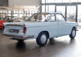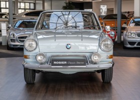 Dieser BMW 700 wurde 1965 an seinen Erstbesitzer, einen Goldschmied aus Pirmasens, im malerischen Rheinland-Pfalz ausgeliefert. Bis 1990 blieb das Fahrzeug in Familienbesitz und fand anschließend seinen Weg über Lüdenscheid an den Bodensee, wo ein BMW-Liebhaber Gefallen an diesem eleganten Coupé in schickem Keramikblau fand. Er erkannte das Potenzial dieser Rarität, ließ das Fahrzeug komplett zerlegen, um es anschließend fachmännisch neu aufbauen zu lassen. Heute präsentiert sich dieses rare Coupé in einem tollen Zustand und hat glücklicherweise kein Stück an Charme verloren.
