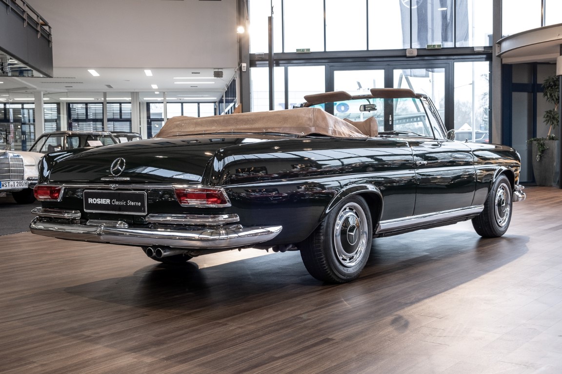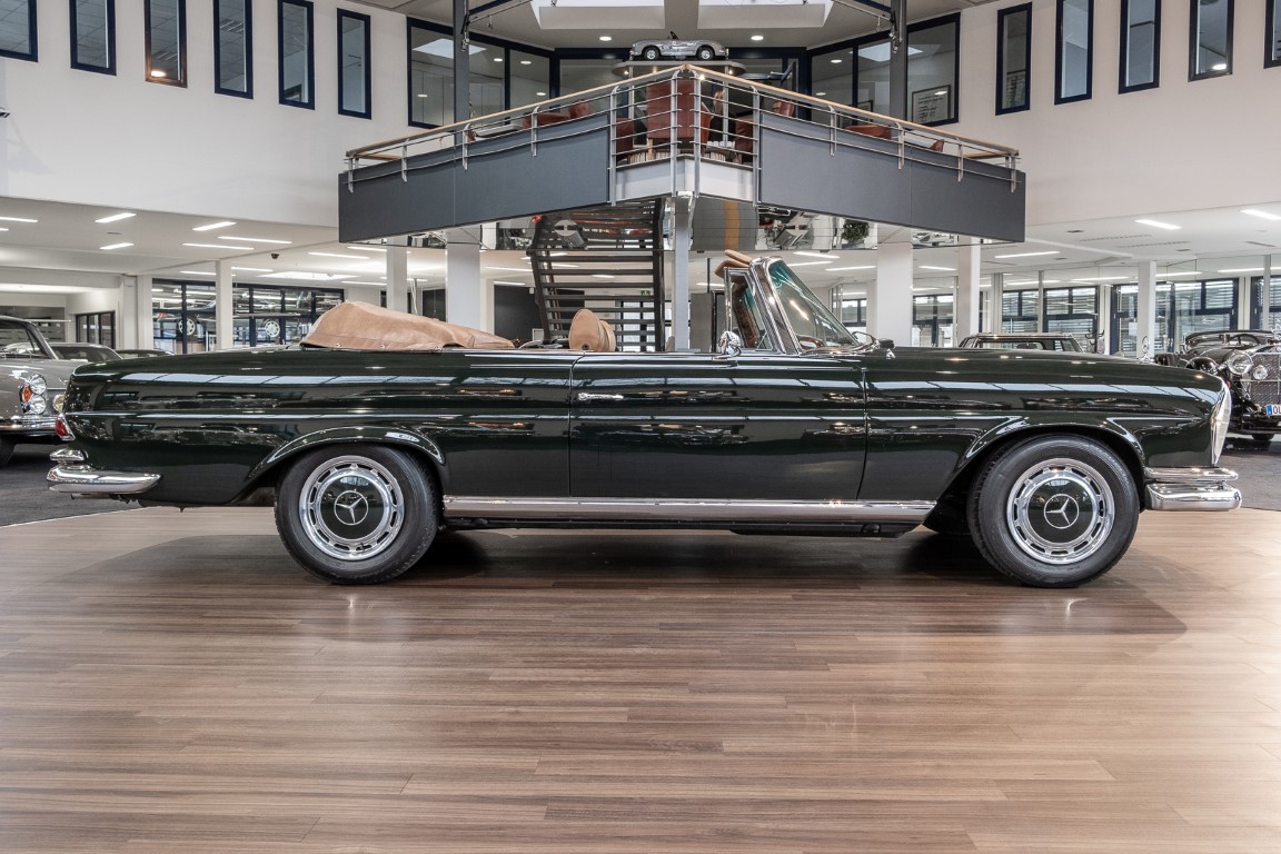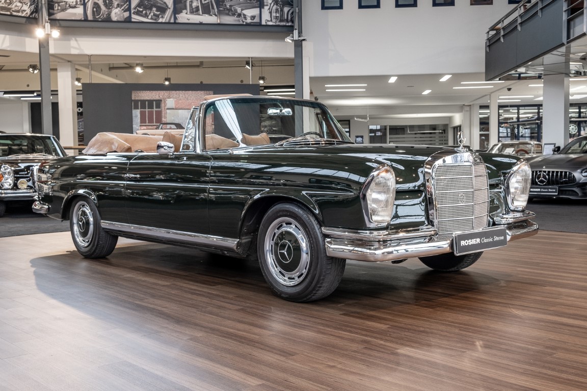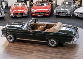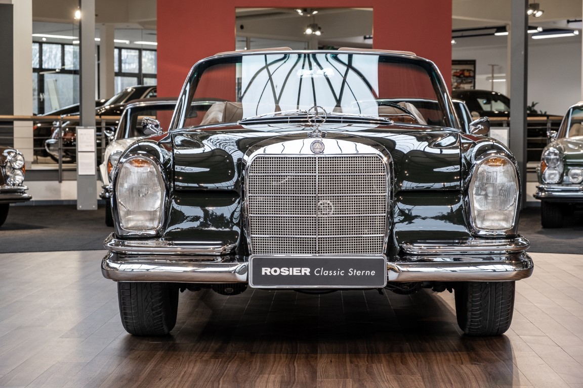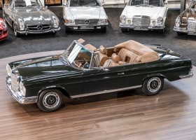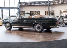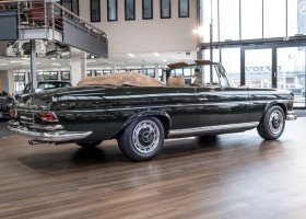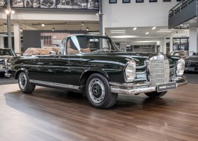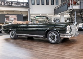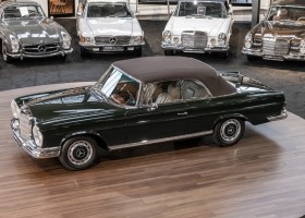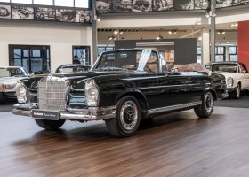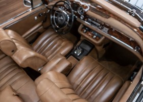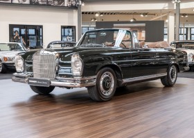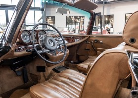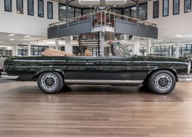Ein sensationelles Fahrzeug ist dieser Mercedes-Benz 250 SE Werkscabriolet. In 1967 an seinen Erstbesitzer ausgeliefert verblieb das Cabriolet bis 2006 in den USA. Ein deutscher Geschäftsmann und Mercedes-Enthusiast erwarb anschließend diesen „Rohdiamanten“ um etwas ganz Besonderes daraus entstehen zu lassen: der Wagen wurde komplett bis auf die Rohkarosse zerlegt und Stück für Stück neu aufgebaut. Ein leistungsstarkes 8-Zylinder-Aggretgat aus der Zeit wurde verbaut und das Getriebe darauf abgestimmt. Die länger übersetzte Hinterachse der zu der Zeit stärksten Limousinenmodells rundete das Kraftpaket entsprechend ab und verrichtet mit erstaunlicher Harmonie seine Arbeit. Mit nur 954 gebauten Einheiten präsentiert sich dieses einmalige Hochkühler-Werkscabriolet in Bestform – mit einem rundum gelungenen Umbau, der selbst eingefleischte Originalitätsliebhaber in seinen Bann ziehen wird.