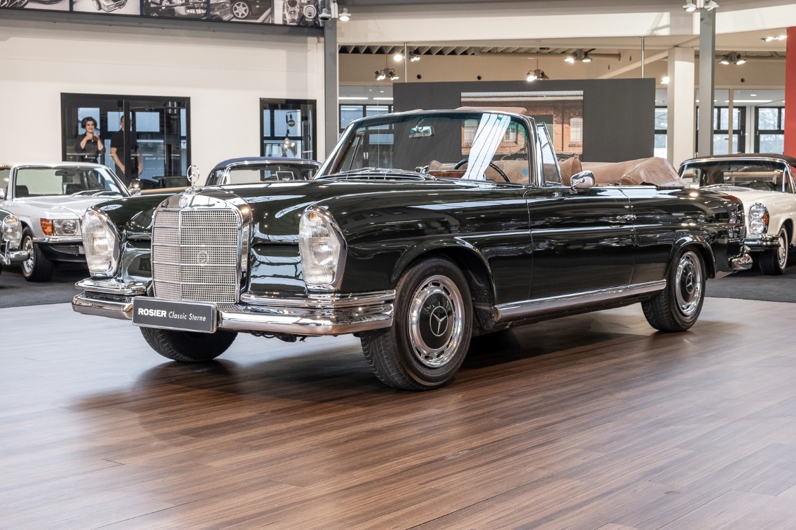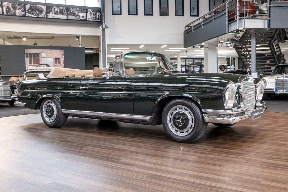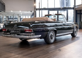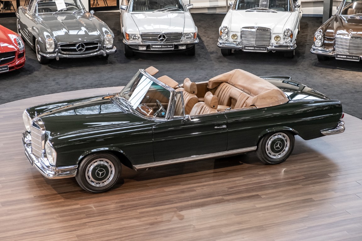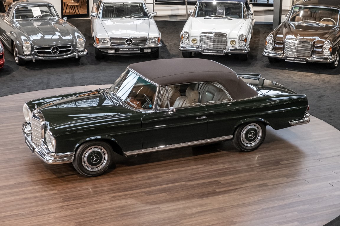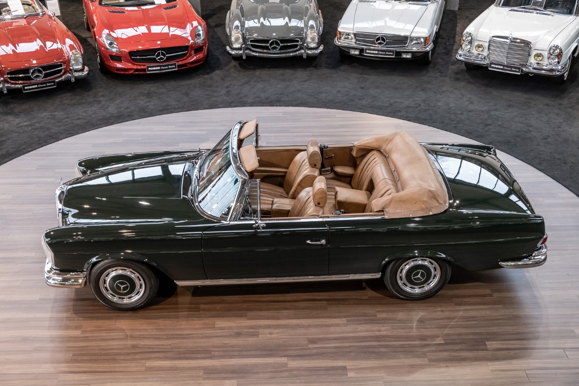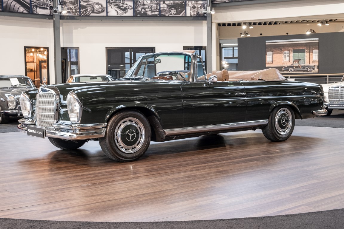 Ein sensationelles Fahrzeug ist dieser Mercedes-Benz 250 SE Werkscabriolet. In 1967 an seinen Erstbesitzer ausgeliefert verblieb das Cabriolet bis 2006 in den USA. Ein deutscher Geschäftsmann und Mercedes-Enthusiast erwarb anschließend diesen „Rohdiamanten“ um etwas ganz Besonderes daraus entstehen zu lassen: der Wagen wurde komplett bis auf die Rohkarosse zerlegt und Stück für Stück neu aufgebaut. Ein leistungsstarkes 8-Zylinder-Aggretgat aus der Zeit wurde verbaut und das Getriebe darauf abgestimmt. Die länger übersetzte Hinterachse der zu der Zeit stärksten Limousinenmodells rundete das Kraftpaket entsprechend ab und verrichtet mit erstaunlicher Harmonie seine Arbeit. Mit nur 954 gebauten Einheiten präsentiert sich dieses einmalige Hochkühler-Werkscabriolet in Bestform – mit einem rundum gelungenen Umbau, der selbst eingefleischte Originalitätsliebhaber in seinen Bann ziehen wird.