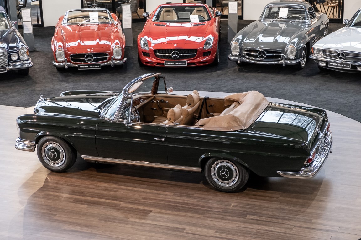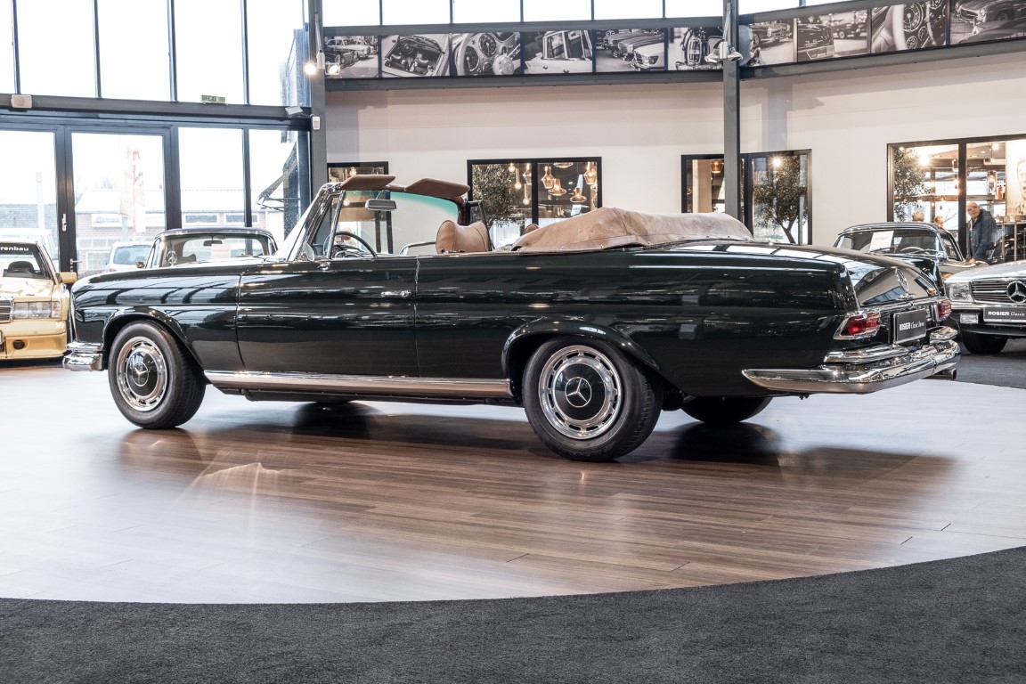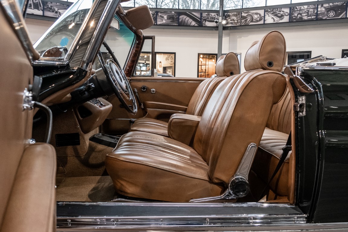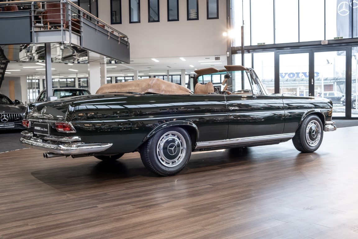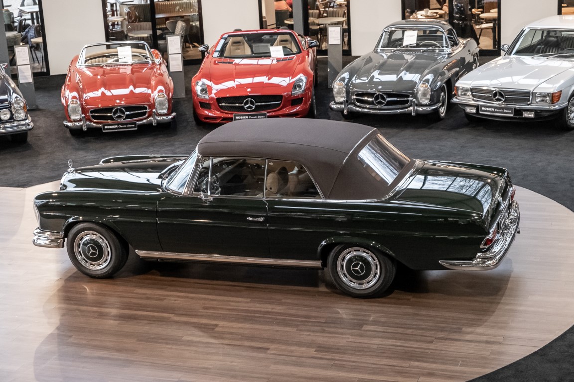 Ein sensationelles Fahrzeug ist dieser Mercedes-Benz 250 SE Werkscabriolet. In 1967 an seinen Erstbesitzer ausgeliefert verblieb das Cabriolet bis 2006 in den USA. Ein deutscher Geschäftsmann und Mercedes-Enthusiast erwarb anschließend diesen „Rohdiamanten“ um etwas ganz Besonderes daraus entstehen zu lassen: der Wagen wurde komplett bis auf die Rohkarosse zerlegt und Stück für Stück neu aufgebaut. Ein leistungsstarkes 8-Zylinder-Aggretgat aus der Zeit wurde verbaut und das Getriebe darauf abgestimmt. Die länger übersetzte Hinterachse der zu der Zeit stärksten Limousinenmodells rundete das Kraftpaket entsprechend ab und verrichtet mit erstaunlicher Harmonie seine Arbeit. Mit nur 954 gebauten Einheiten präsentiert sich dieses einmalige Hochkühler-Werkscabriolet in Bestform – mit einem rundum gelungenen Umbau, der selbst eingefleischte Originalitätsliebhaber in seinen Bann ziehen wird.