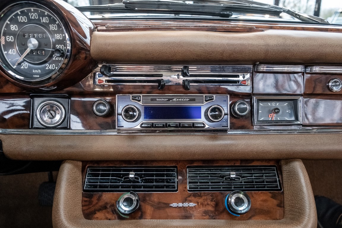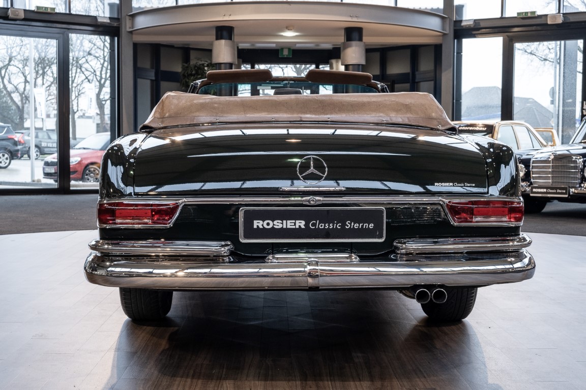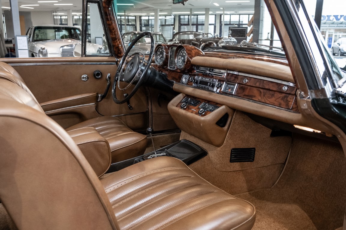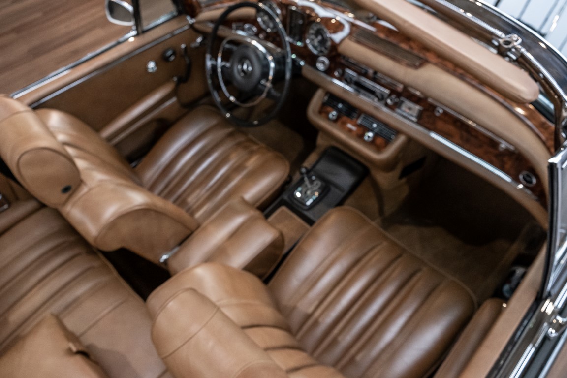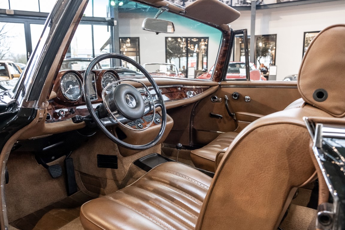 Ein sensationelles Fahrzeug ist dieser Mercedes-Benz 250 SE Werkscabriolet. In 1967 an seinen Erstbesitzer ausgeliefert verblieb das Cabriolet bis 2006 in den USA. Ein deutscher Geschäftsmann und Mercedes-Enthusiast erwarb anschließend diesen „Rohdiamanten“ um etwas ganz Besonderes daraus entstehen zu lassen: der Wagen wurde komplett bis auf die Rohkarosse zerlegt und Stück für Stück neu aufgebaut. Ein leistungsstarkes 8-Zylinder-Aggretgat aus der Zeit wurde verbaut und das Getriebe darauf abgestimmt. Die länger übersetzte Hinterachse der zu der Zeit stärksten Limousinenmodells rundete das Kraftpaket entsprechend ab und verrichtet mit erstaunlicher Harmonie seine Arbeit. Mit nur 954 gebauten Einheiten präsentiert sich dieses einmalige Hochkühler-Werkscabriolet in Bestform – mit einem rundum gelungenen Umbau, der selbst eingefleischte Originalitätsliebhaber in seinen Bann ziehen wird.