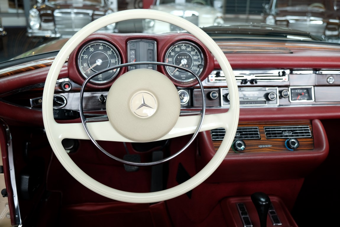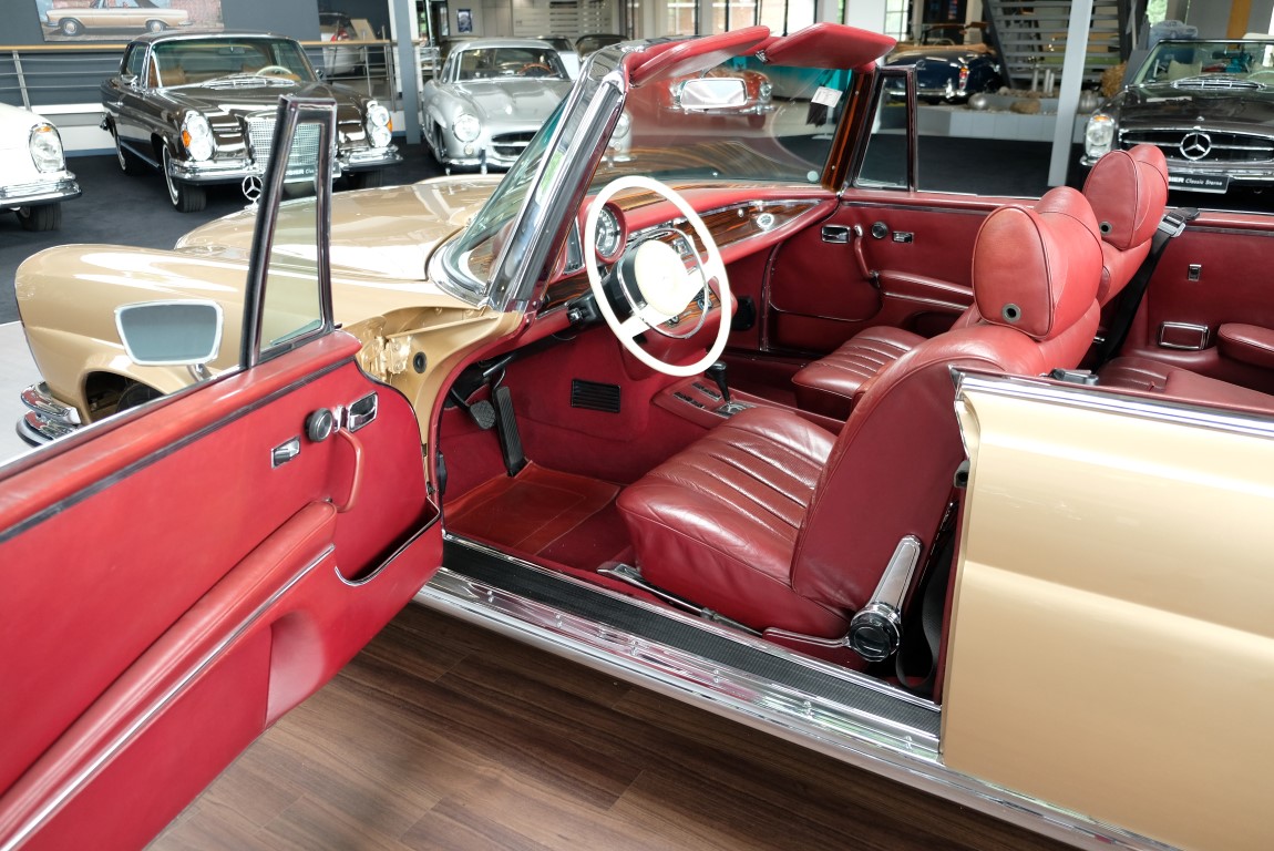 Zu Beginn der 2000er Jahre ging das Cabriolet in den Besitz von Bertran Garcia Braulio, einem Autohändler und Immobilienkaufmann in Barcelona über. Während seinem Besitz wurde in 2003 von Mercedes-Benz Classic ein Zertifikat ausgestellt. In 2013 wurde das bis dahin stets gepflegte und in sehr gutem Zustand erhaltende Cabriolet nach Deutschland verkauft und kam zu ROSIER Classic Sterne in Oldenburg. Der hohe Qualitätsanspruch unserer Kundenklientel ließ uns die Entscheidung zugunsten einer umfangreichen Restaurierung fällen. So wurde das elegante Cabriolet komplett zerlegt, bis auf das blanke Metall entlackt und neu aufgebaut. Selbstverständlich wurde darauf geachtet, die ursprüngliche Farbgebung wieder zu verwenden und die Ausstattungsdetails gemäß Datenblatt wieder herzustellen. Lassen Sie sich dieses herrlich schöne Fahrzeug mit bester Historie nicht entgehen. Wir beraten Sie gerne.