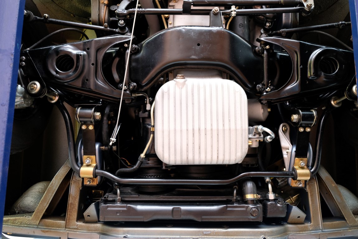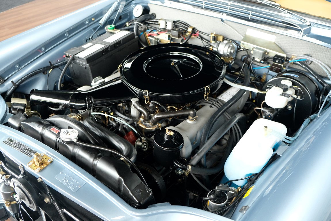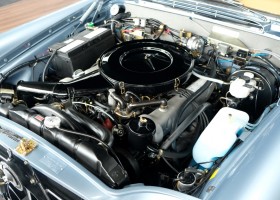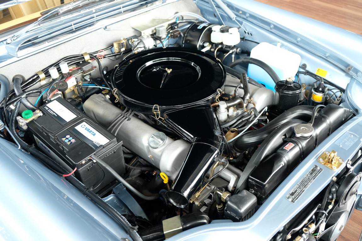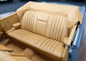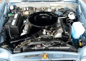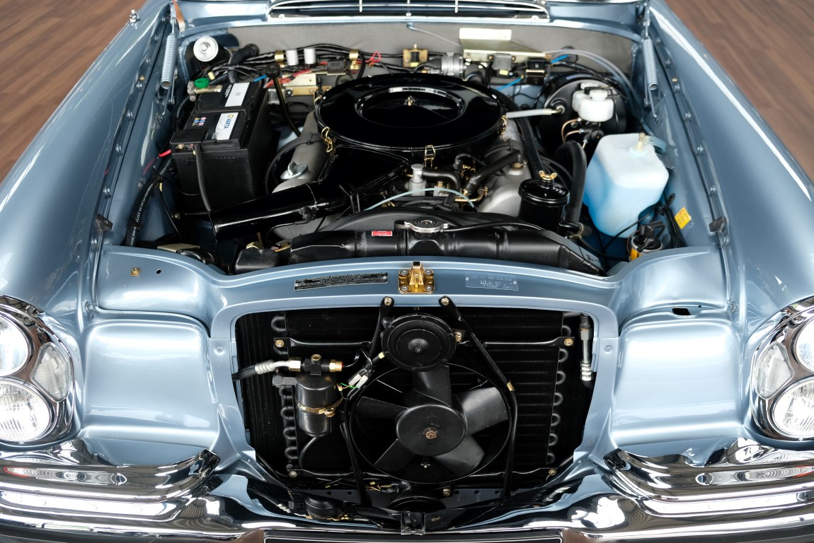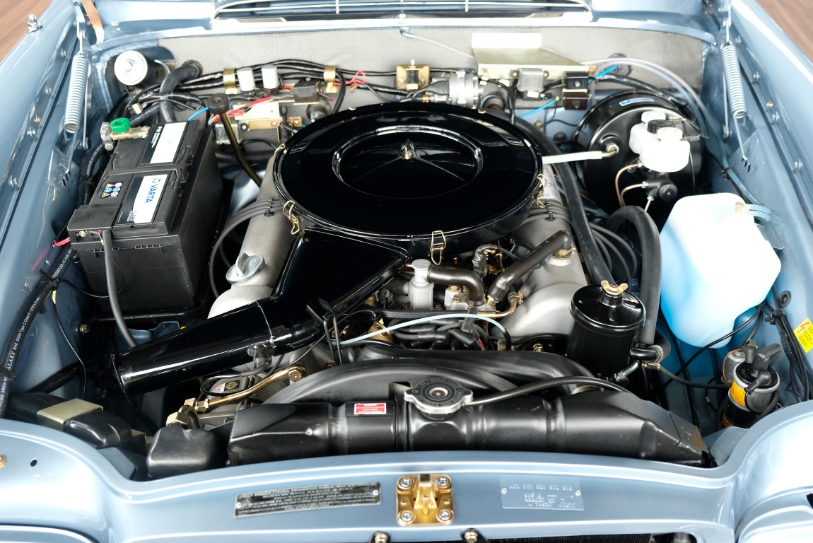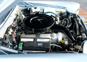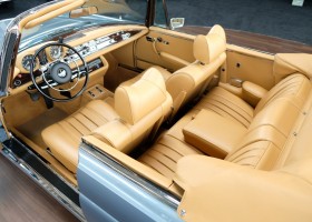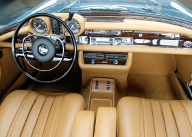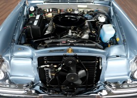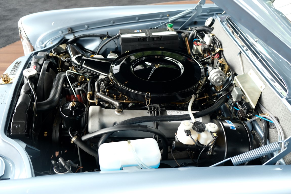 Er hatte für damalige Verhältnisse nahezu eine Vollausstattung. Von der wertvollen Original Behr Klimaanlage über Mittelarmlehnen, Becker Radio, elektrischen Fensterhebern bis zur üppigen, wohlriechenden Lederausstattung, alles war vorhanden. Nachdem der Wagen lange Jahre im Sunshine State Florida, in einer pompösen Villa in Naples bester Gegend zu Hause war, wurde er in 2014 nach Deutschland verkauft und kam in den Besitz der Rosier Classic-Sterne in Oldenburg. Ein Kunde erwarb das Cabriolet und beauftragte Rosier Classic-Sterne mit einer Qualitätsrestaurierung. Er wollte den Wagen mindestens in Neuwagenauslieferungszustand haben. In über 3 jähriger Arbeit wurde der Wagen bis auf die Rohkarosse zerlegt, die alte Lackierung entfernt und ein neuer Lackaufbau im Originalfarbton 906 vorgenommen. Der Chromzierrat wurde erneuert oder wo sinnvoll überarbeitet. Die Achsen wurden überholt, ebenso wie der V8 Motor und das Automatik-Getriebe. Es würde eine ultra lange Beschreibung, wenn wir hier den gesamten Umfang aufführen würden. Am Ende erhielt der Wagen nach Kundenwunsch eine komplett neue Lederausstattung mit kopfgefärbtem Leder im originalen Mercedes Farbton Cognac.