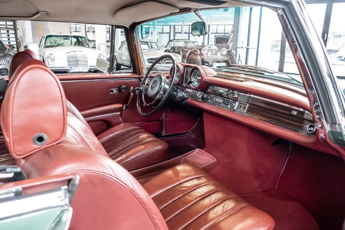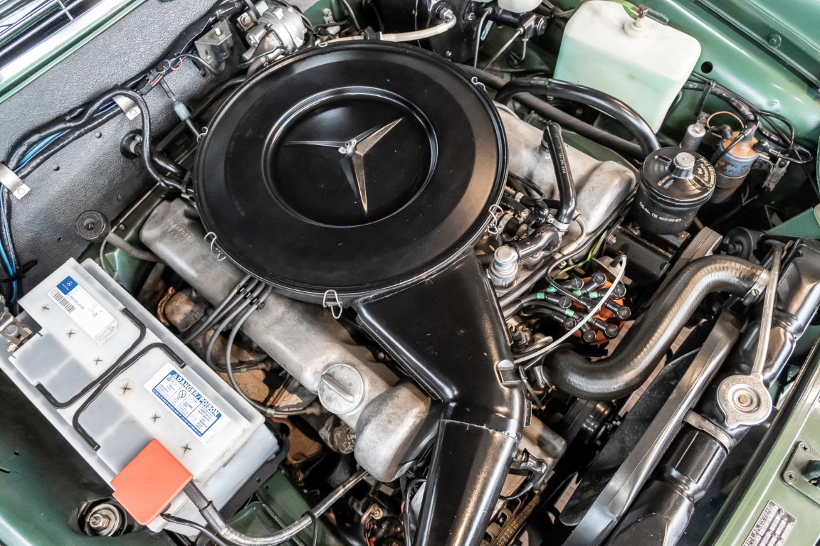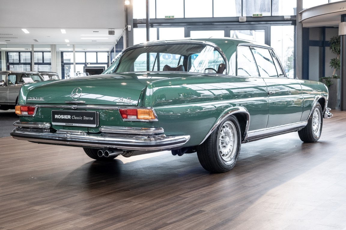 Dieses 280SE 3.5 Coupé wurde im Dezember 1970 an seinen Erstbesitzer in der Schweiz ausgeliefert und kam in der Folge nach Deutschland. Der Wagen besticht durch seine Originalität. Das Interieur wurde im Original bis heute bestens gepflegt und erhalten. Das Fahrzeug ist unfallfrei und ungeschweißt. Der Unterboden hat noch die originale Werksstruktur. Die Ausstrahlung des Fahrzeugs ist enorm. Alles funktioniert, der Motor läuft kraftvoll, das Getriebe schaltet angenehm umd korrekt. Die Barock-Leichtmetallfelgen ermöglichen etwas breitere Reifen zu fahren und unterstreichen den sportlichen Charakter dieses edlen Mercedes-Benz Coupés.