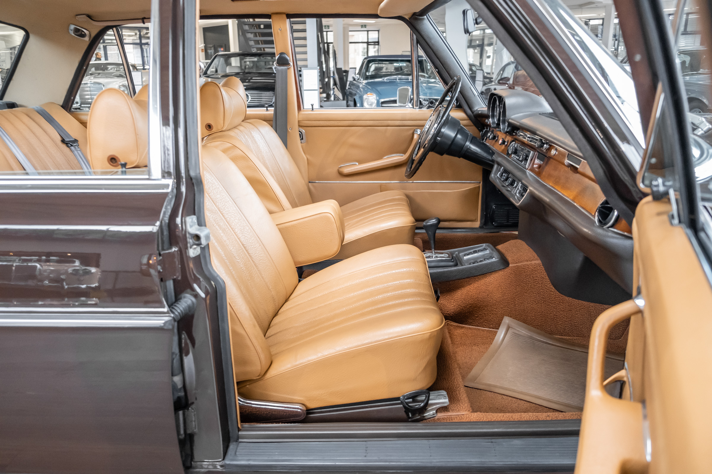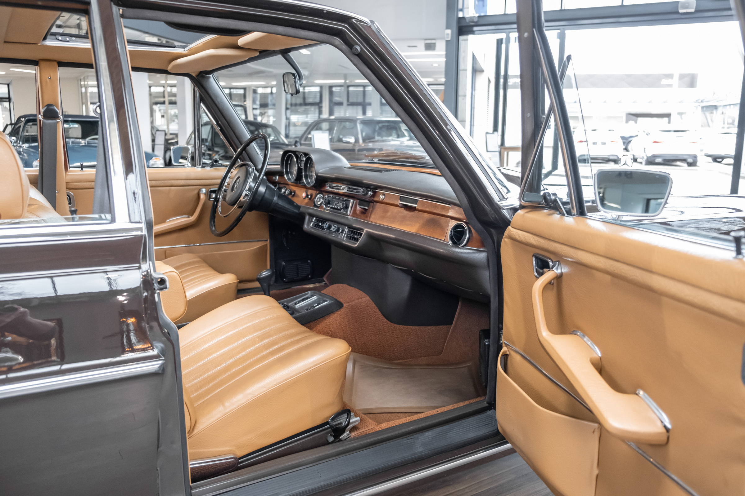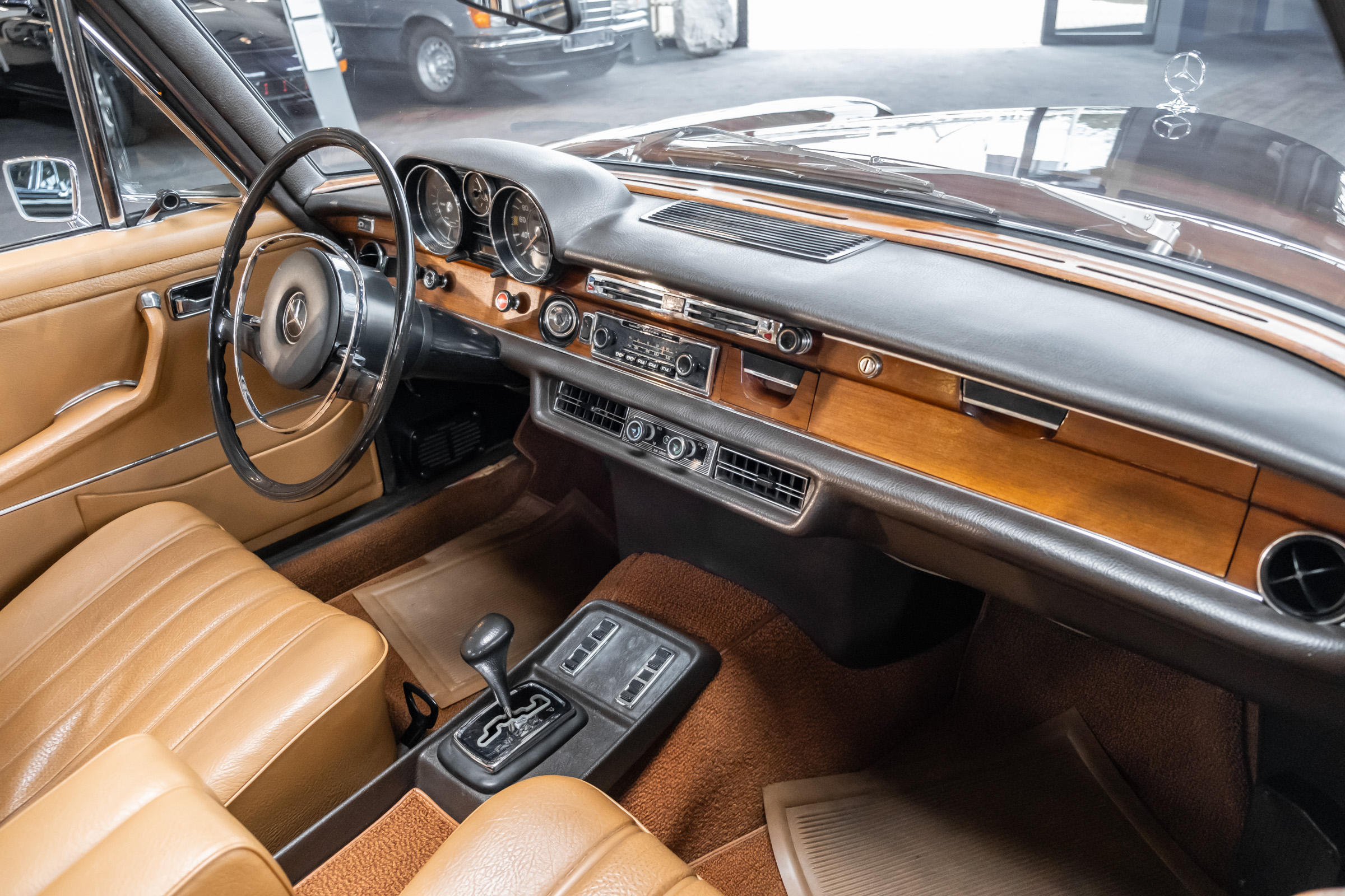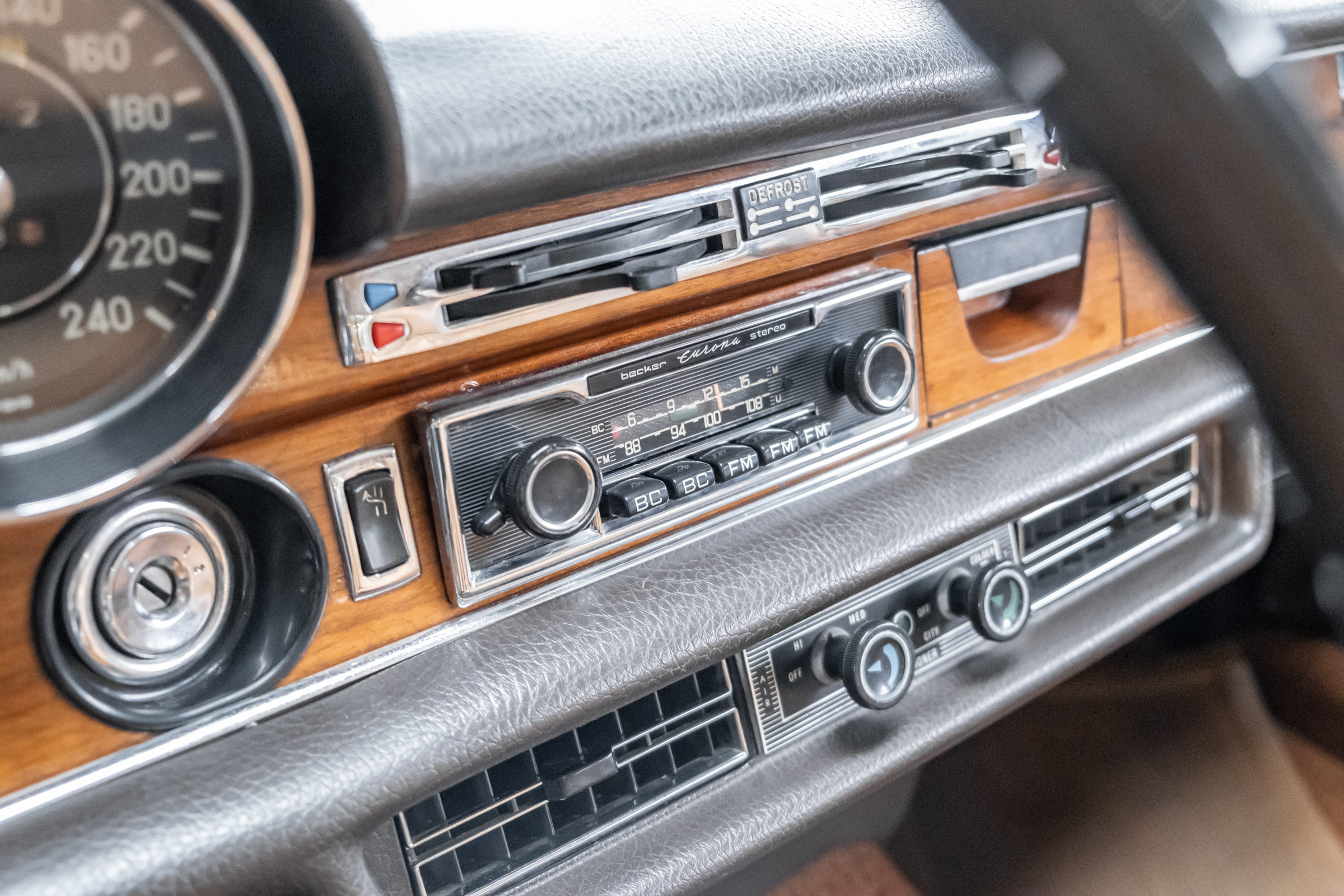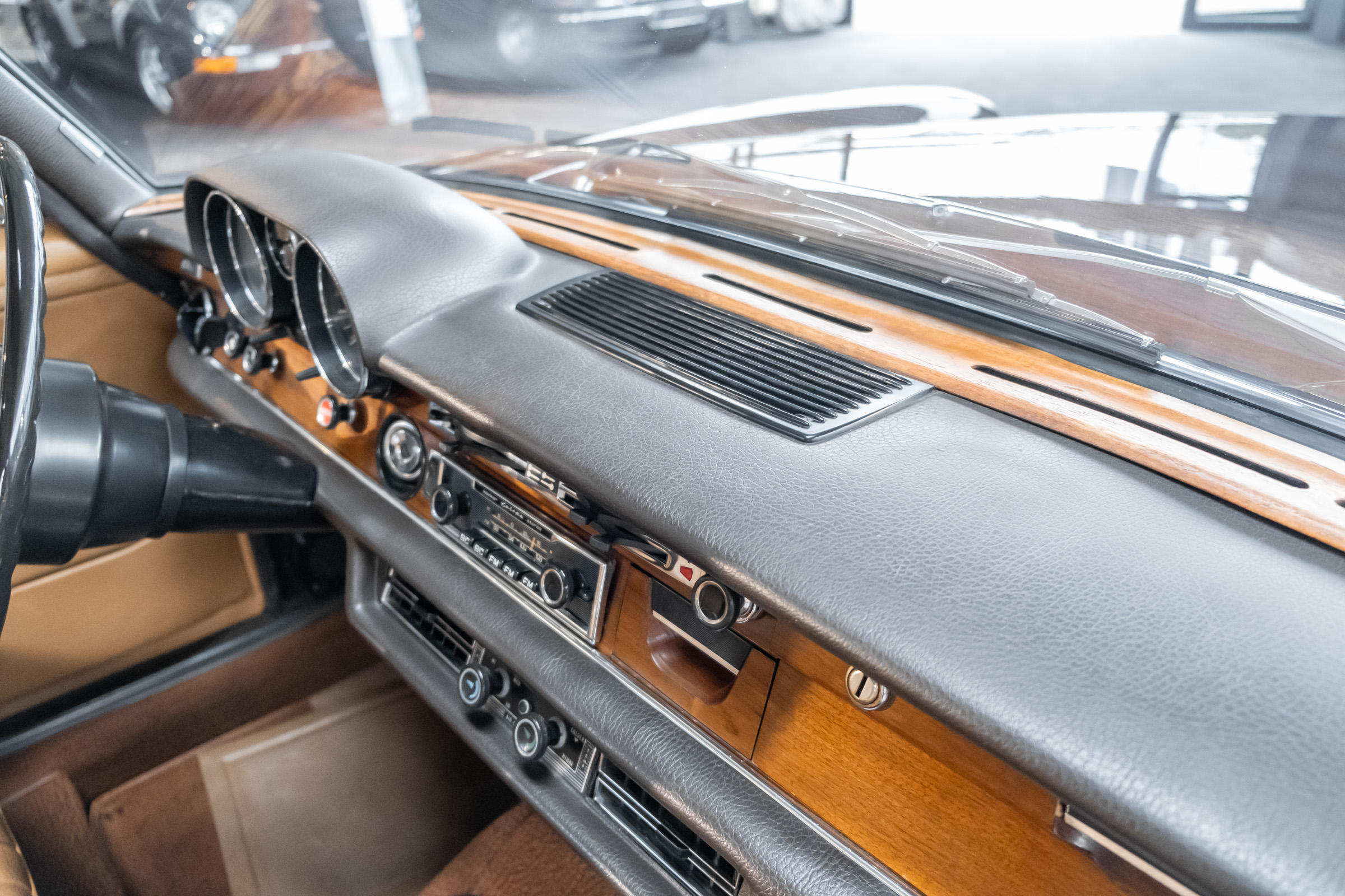 Neu im Showroom: originaler ungeschweißter 280 SEL 4.5 W108 mit Automatikgetriebe, Radio Europa, Klimaanlage, elektr. Fensterheber (4x), elektr. Schiebedach, MB-Tex Ausstattung in Cocnac, Lautsprechersystem, Mittelarmkonsole,