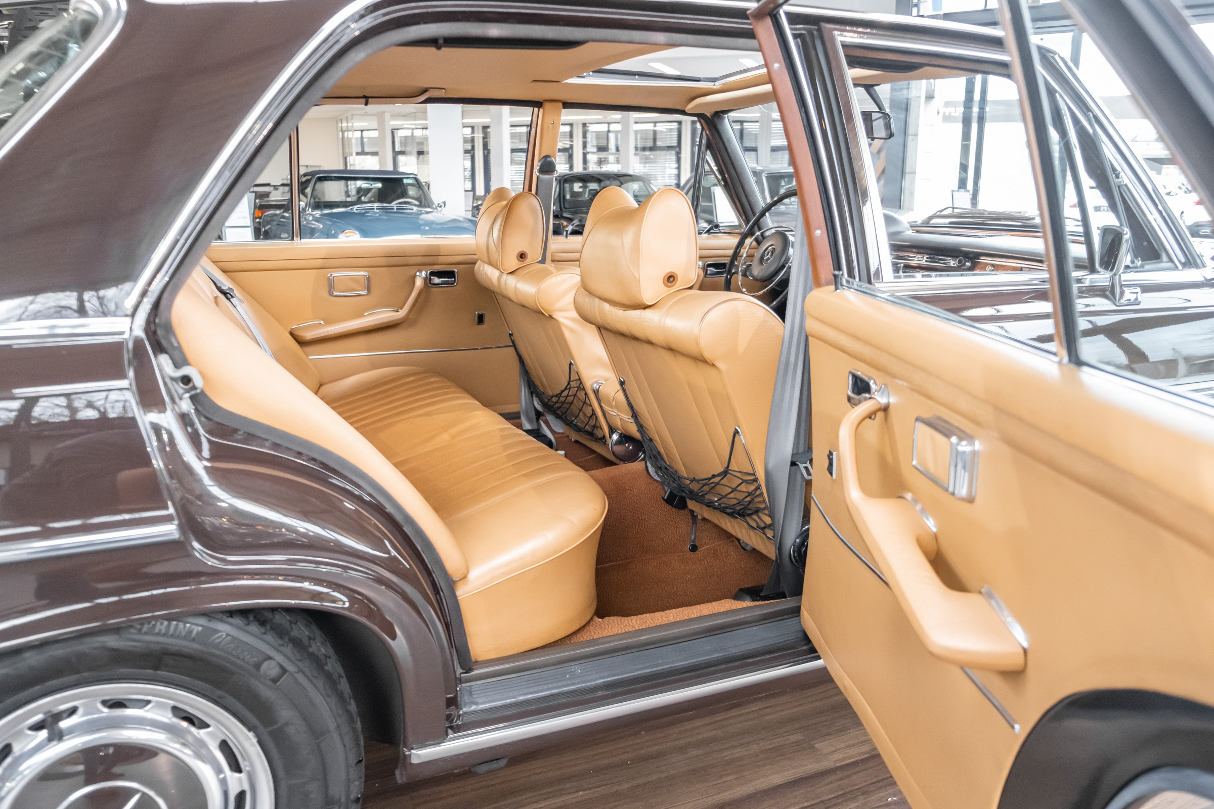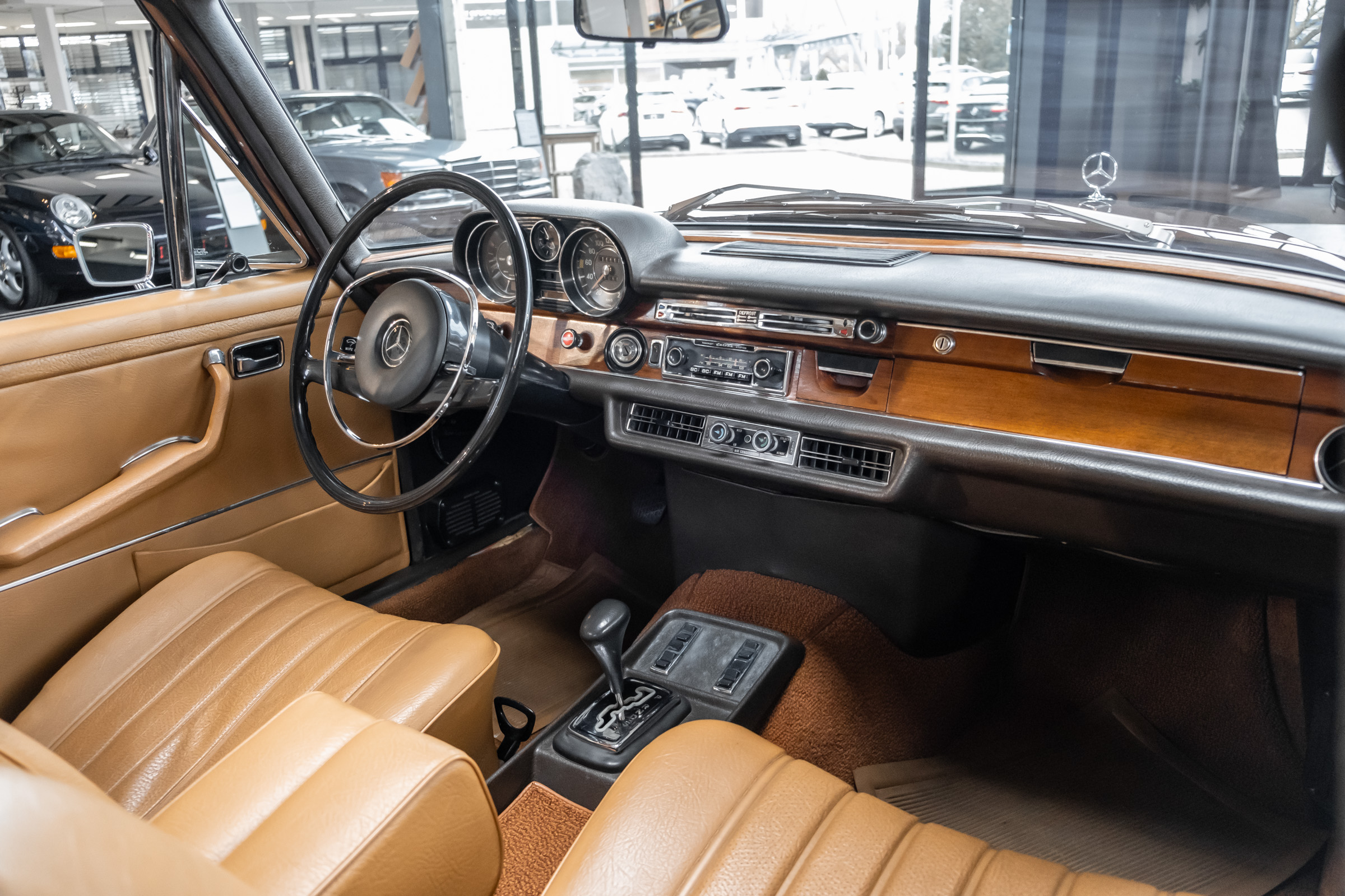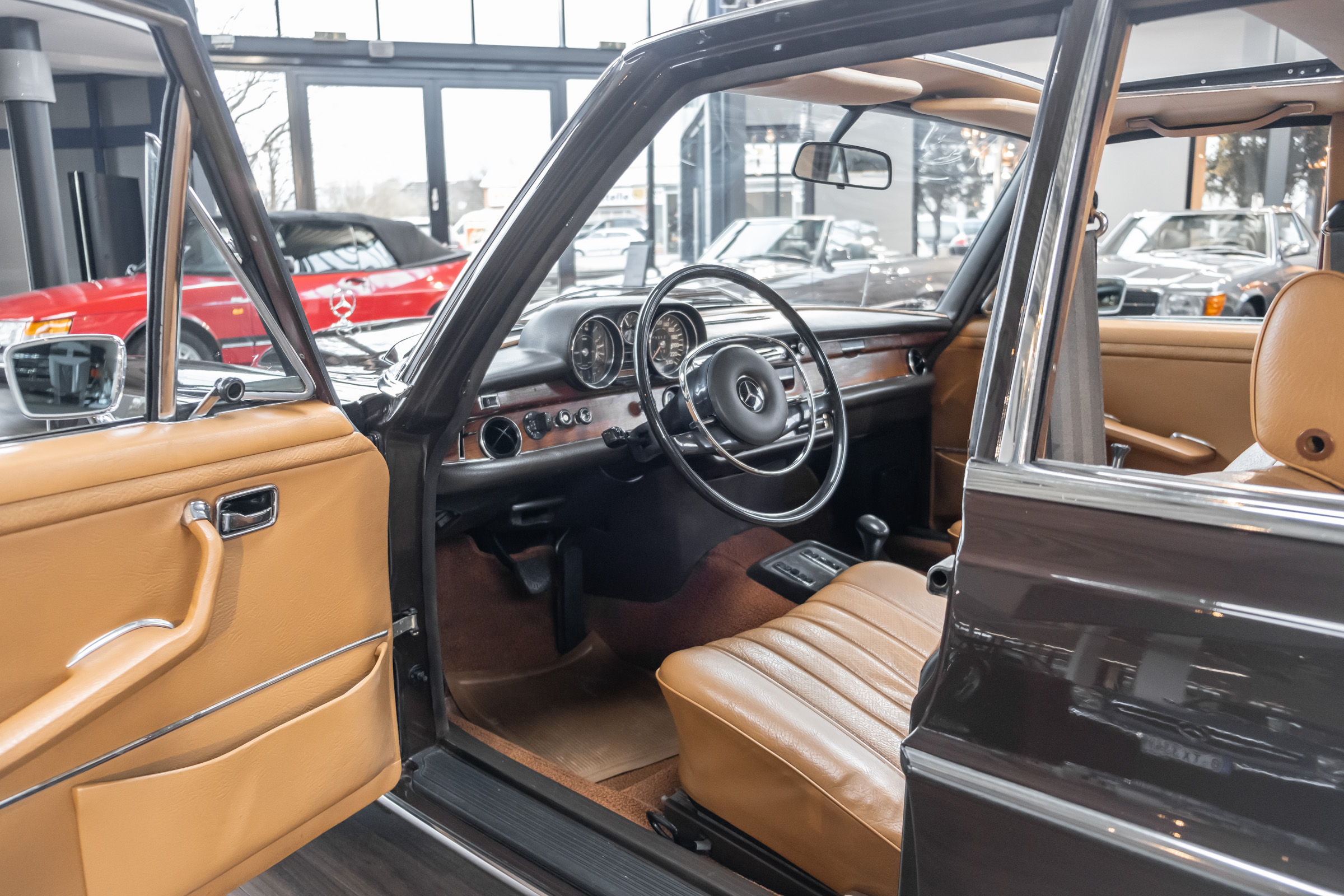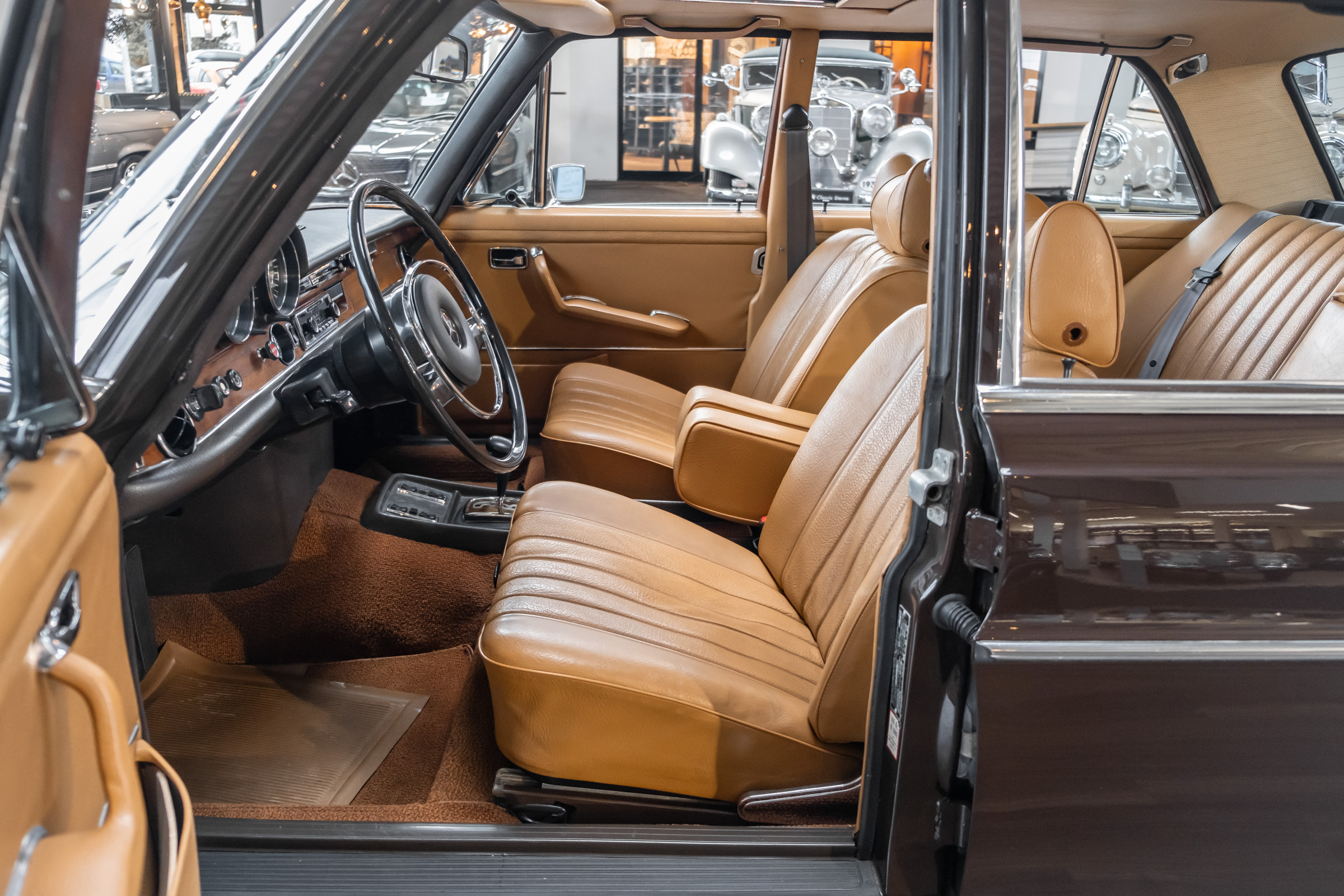 Neu im Showroom: originaler ungeschweißter 280 SEL 4.5 W108 mit Automatikgetriebe, Radio Europa, Klimaanlage, elektr. Fensterheber (4x), elektr. Schiebedach, MB-Tex Ausstattung in Cocnac, Lautsprechersystem, Mittelarmkonsole,