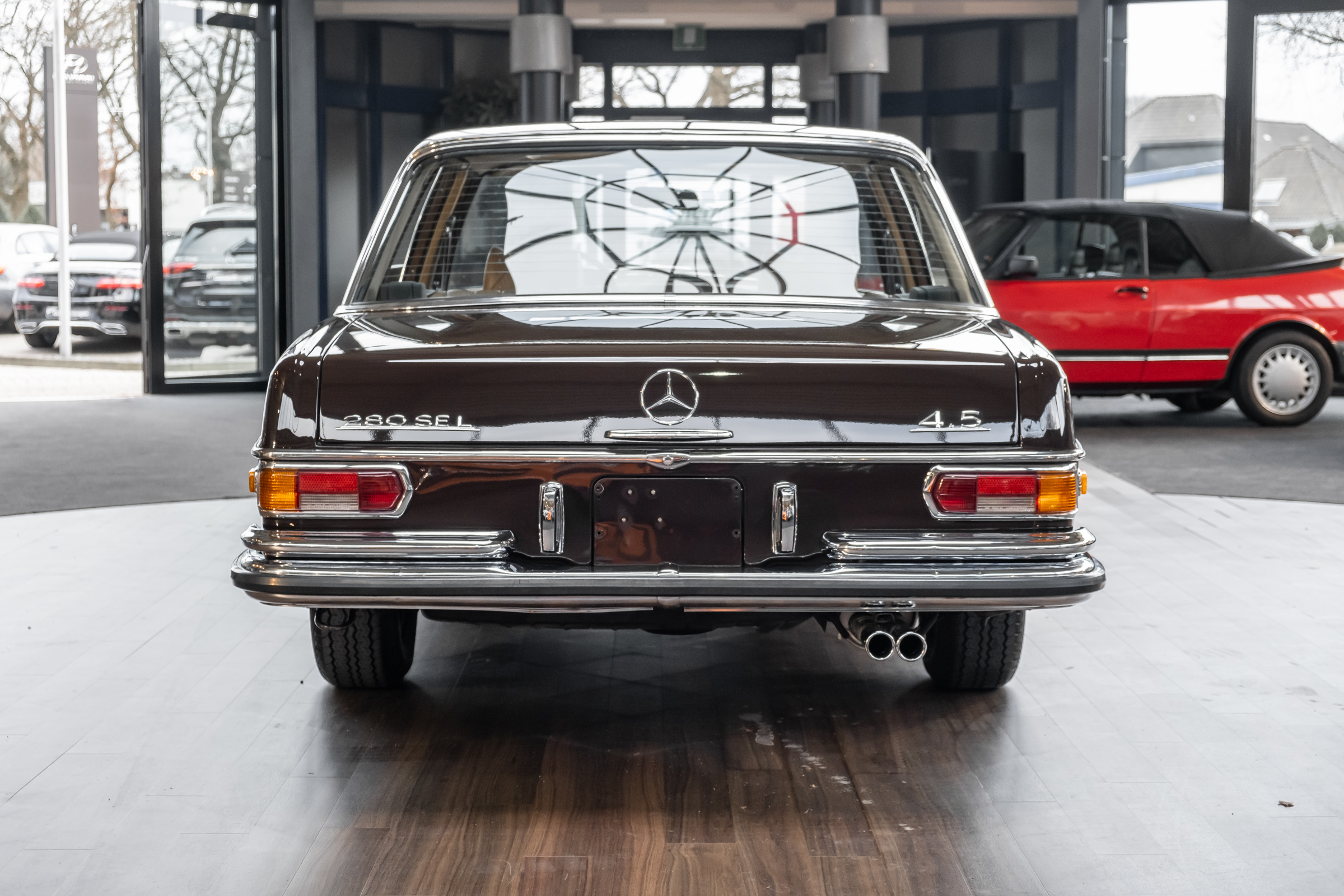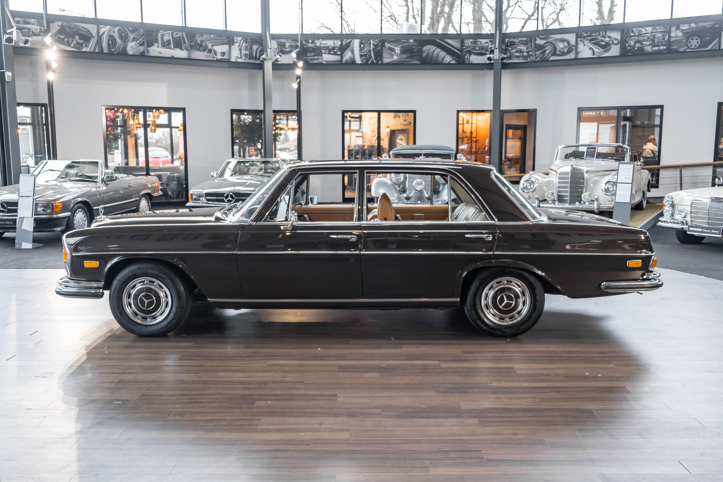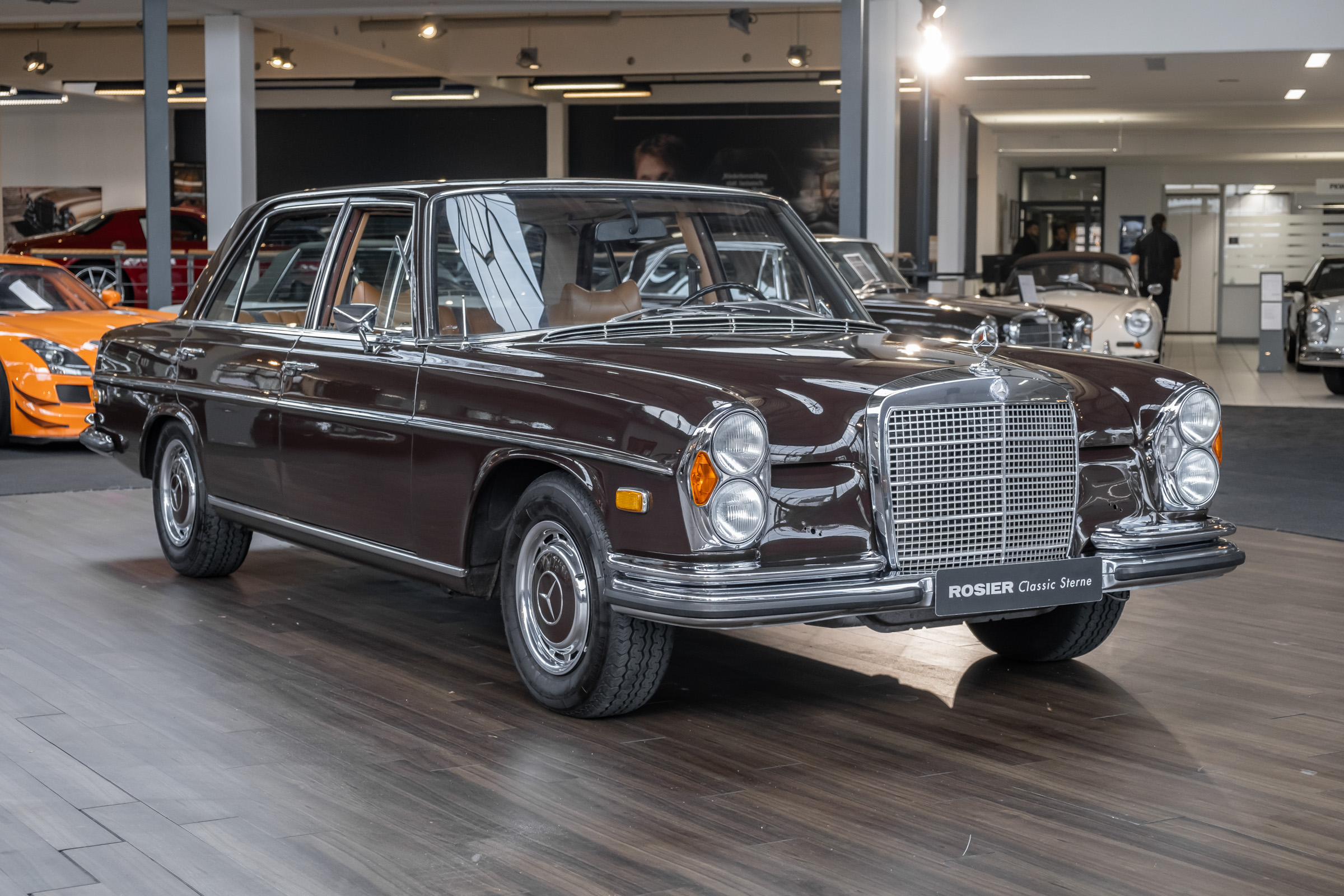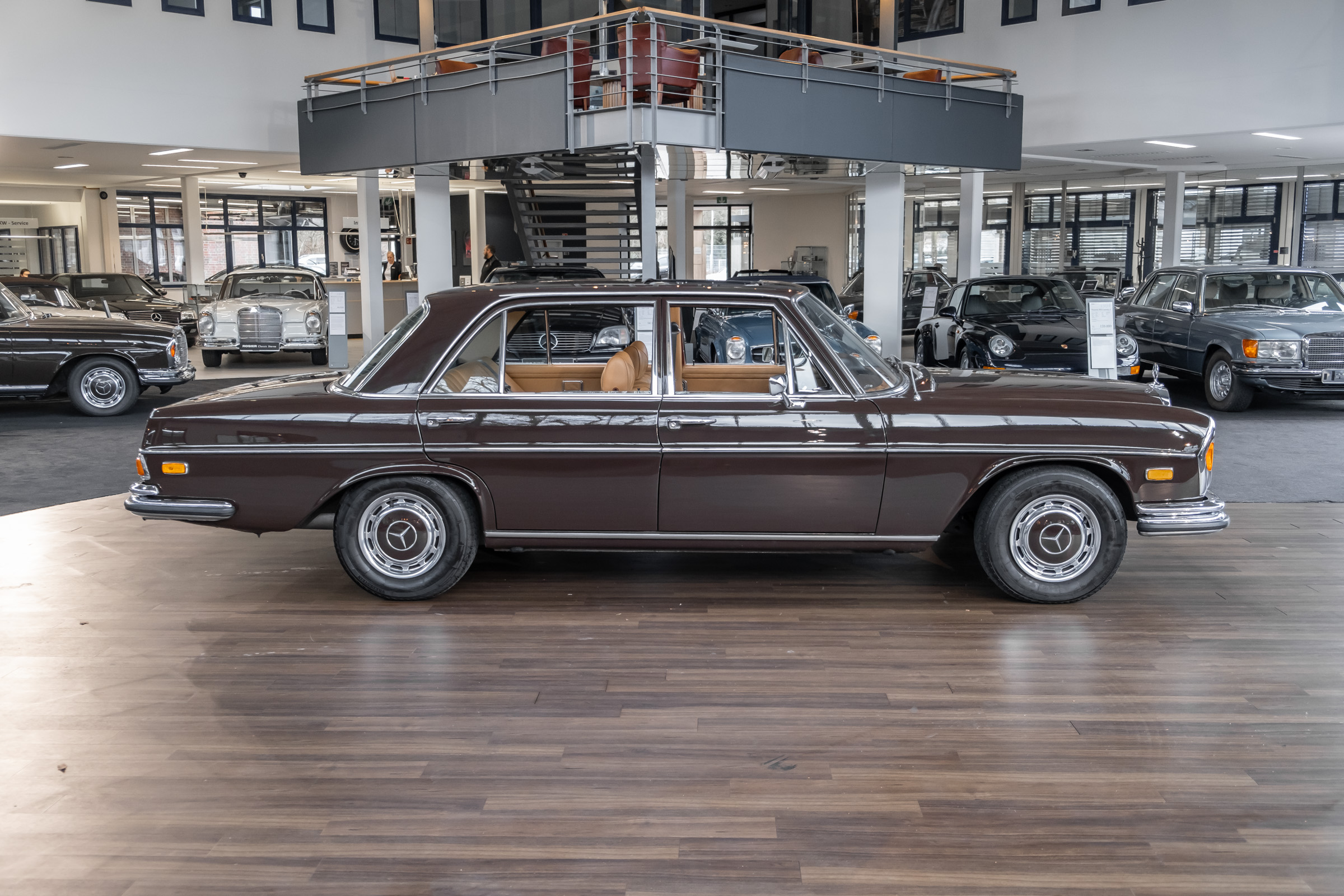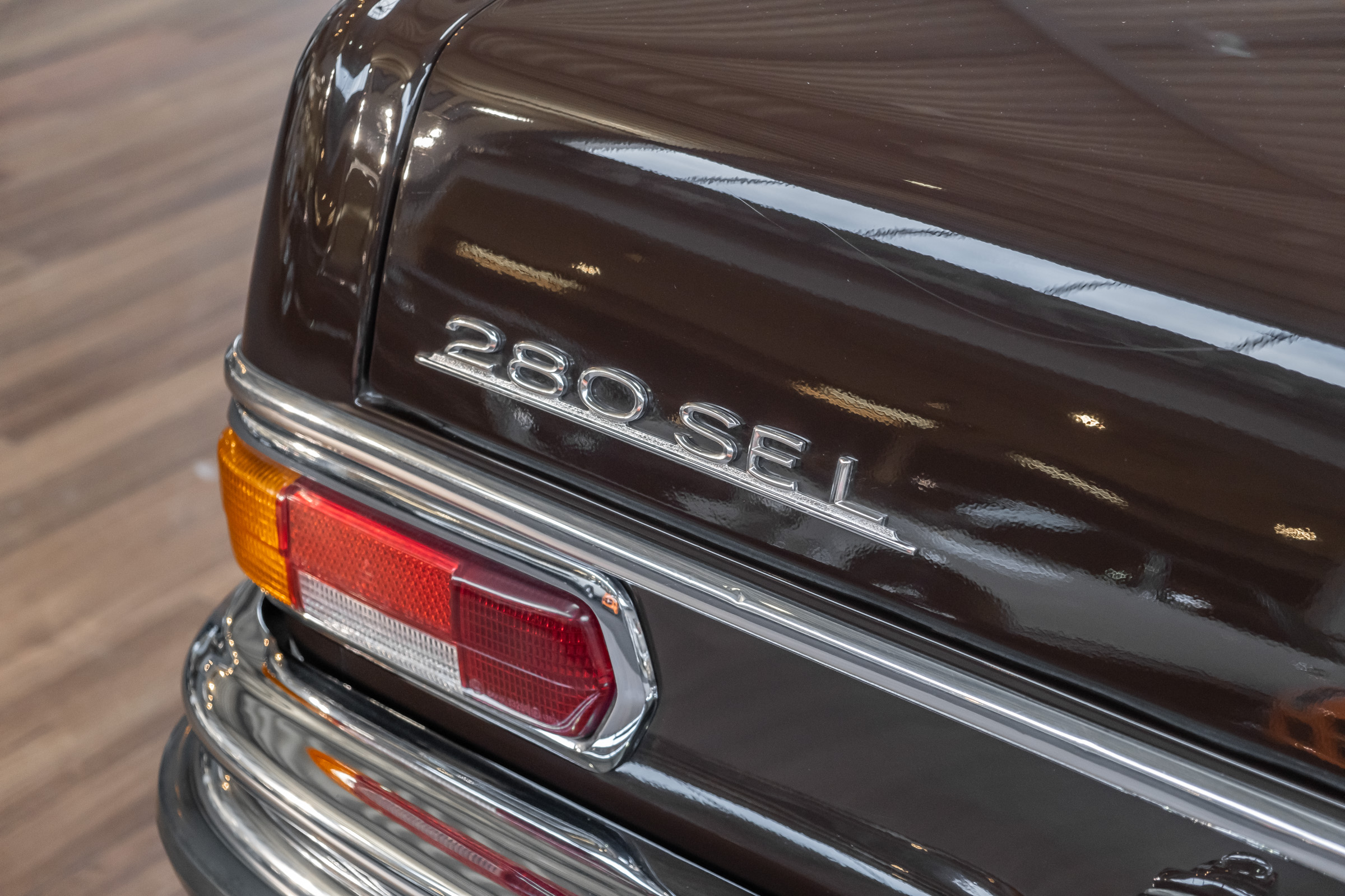 Neu im Showroom: originaler ungeschweißter 280 SEL 4.5 W108 mit Automatikgetriebe, Radio Europa, Klimaanlage, elektr. Fensterheber (4x), elektr. Schiebedach, MB-Tex Ausstattung in Cocnac, Lautsprechersystem, Mittelarmkonsole,