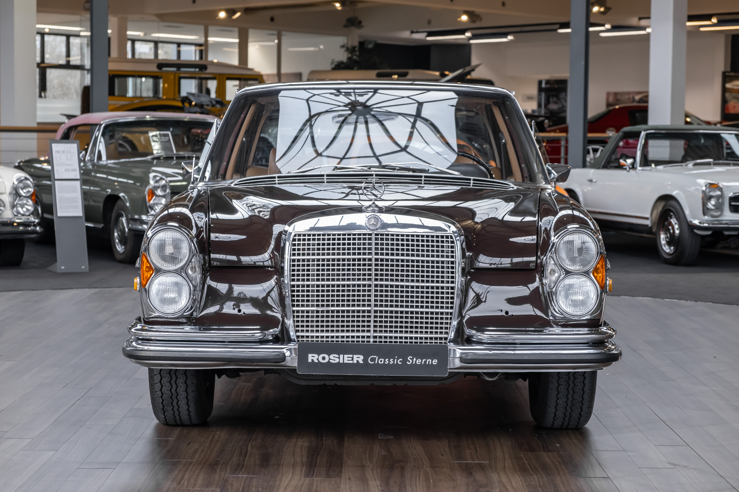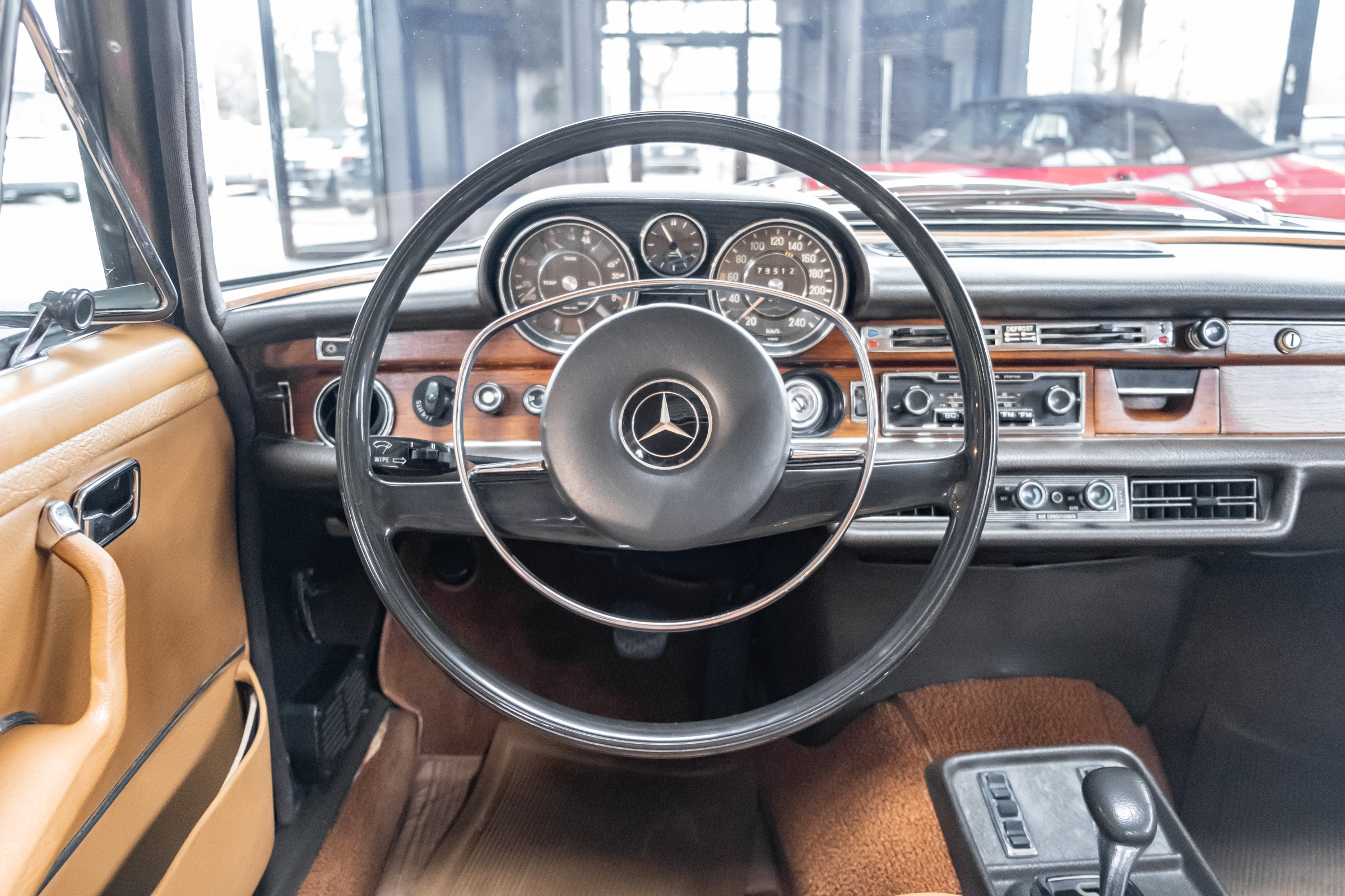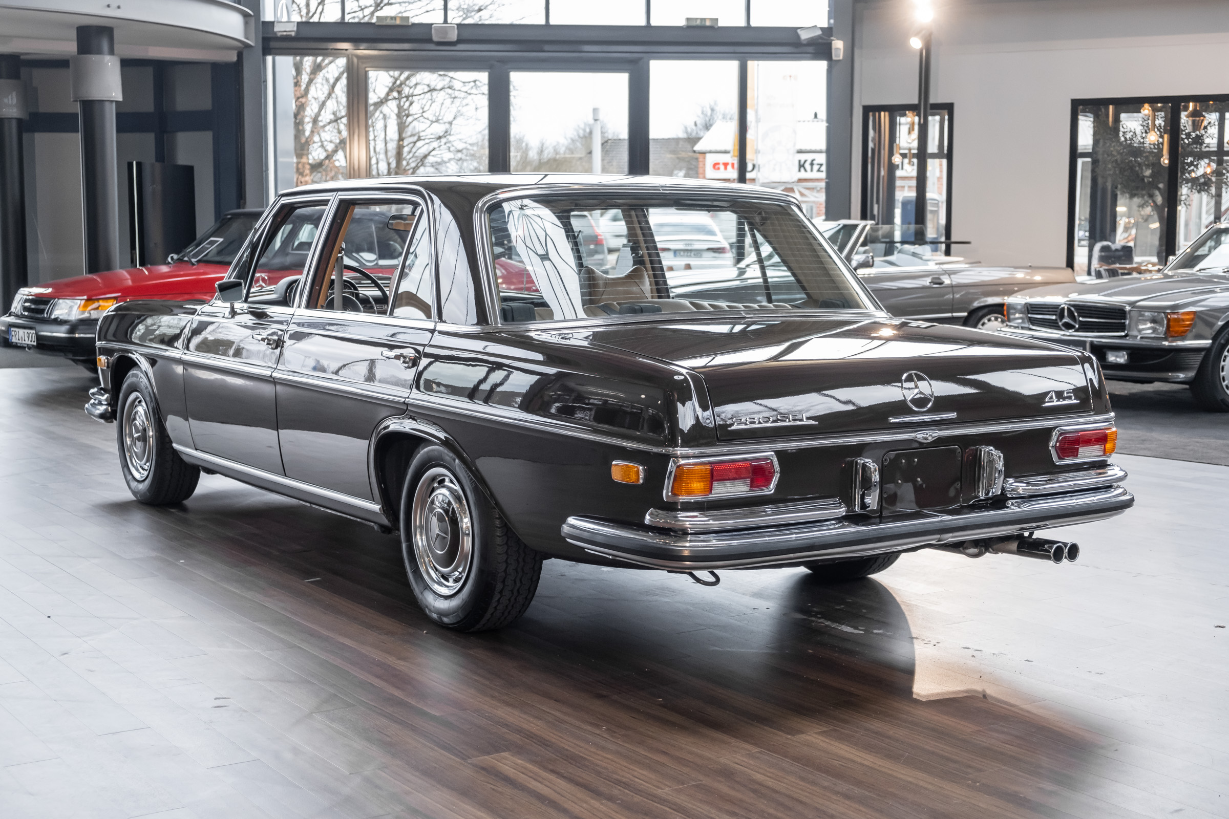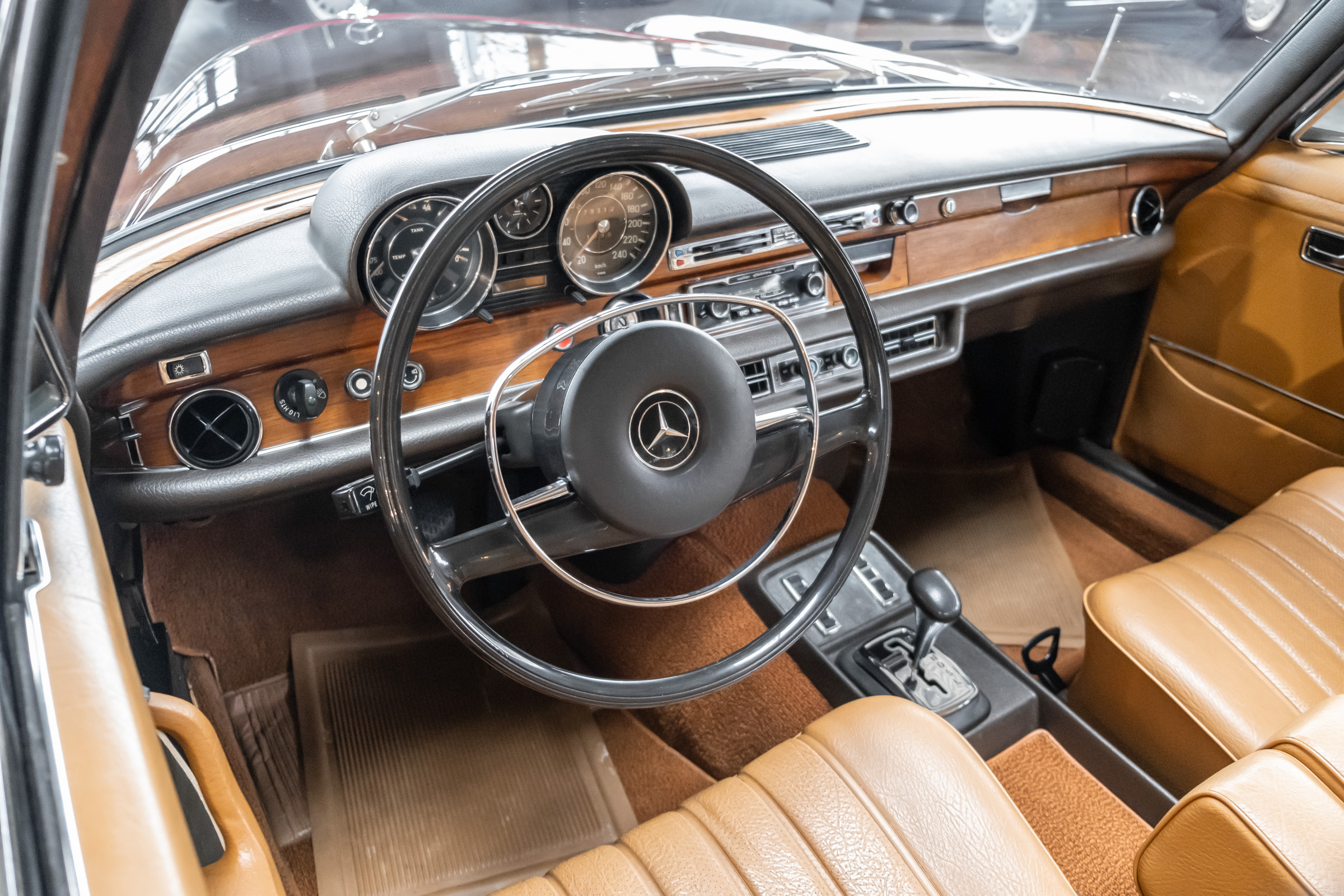 Neu im Showroom: originaler ungeschweißter 280 SEL 4.5 W108 mit Automatikgetriebe, Radio Europa, Klimaanlage, elektr. Fensterheber (4x), elektr. Schiebedach, MB-Tex Ausstattung in Cocnac, Lautsprechersystem, Mittelarmkonsole,