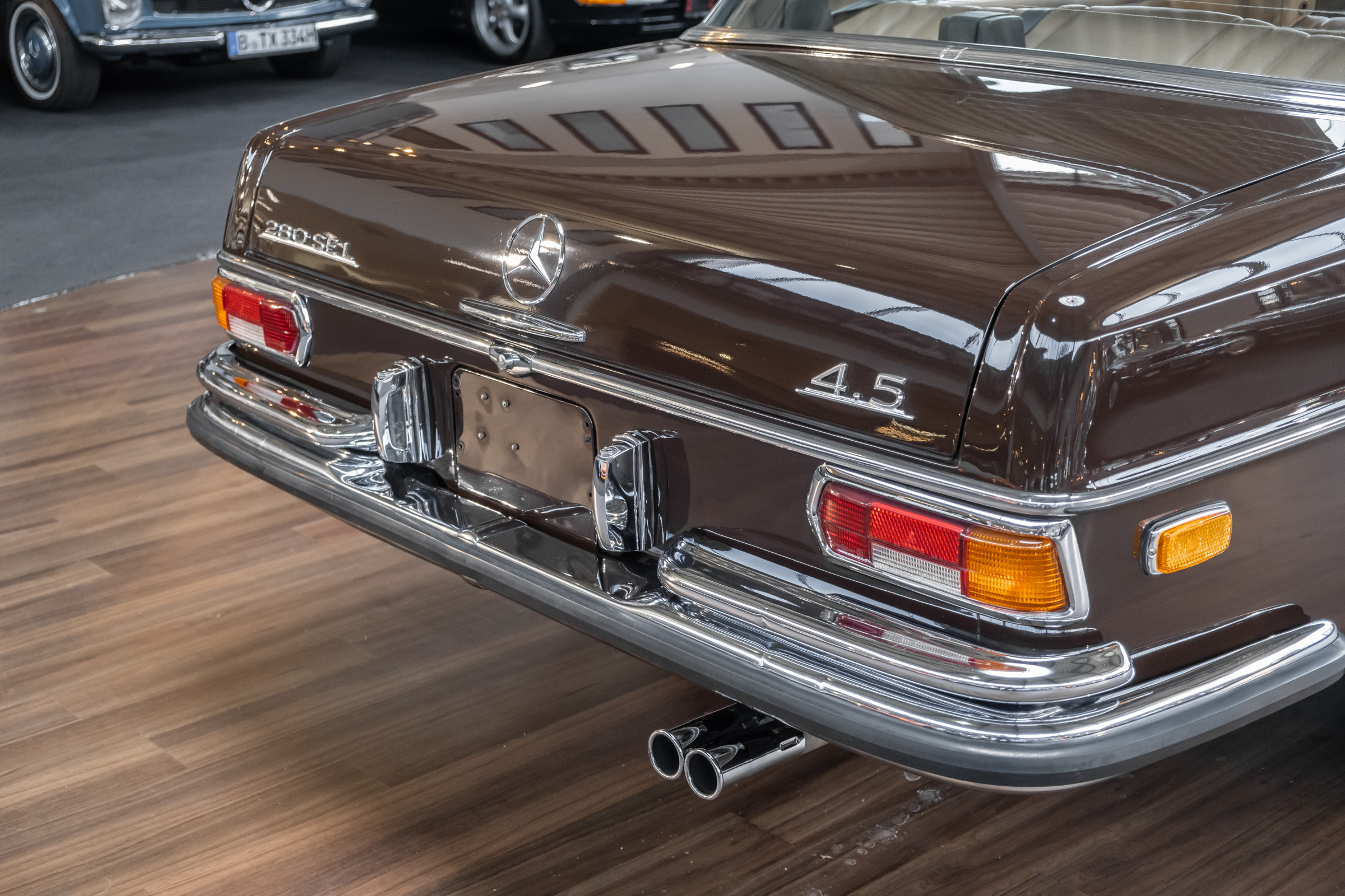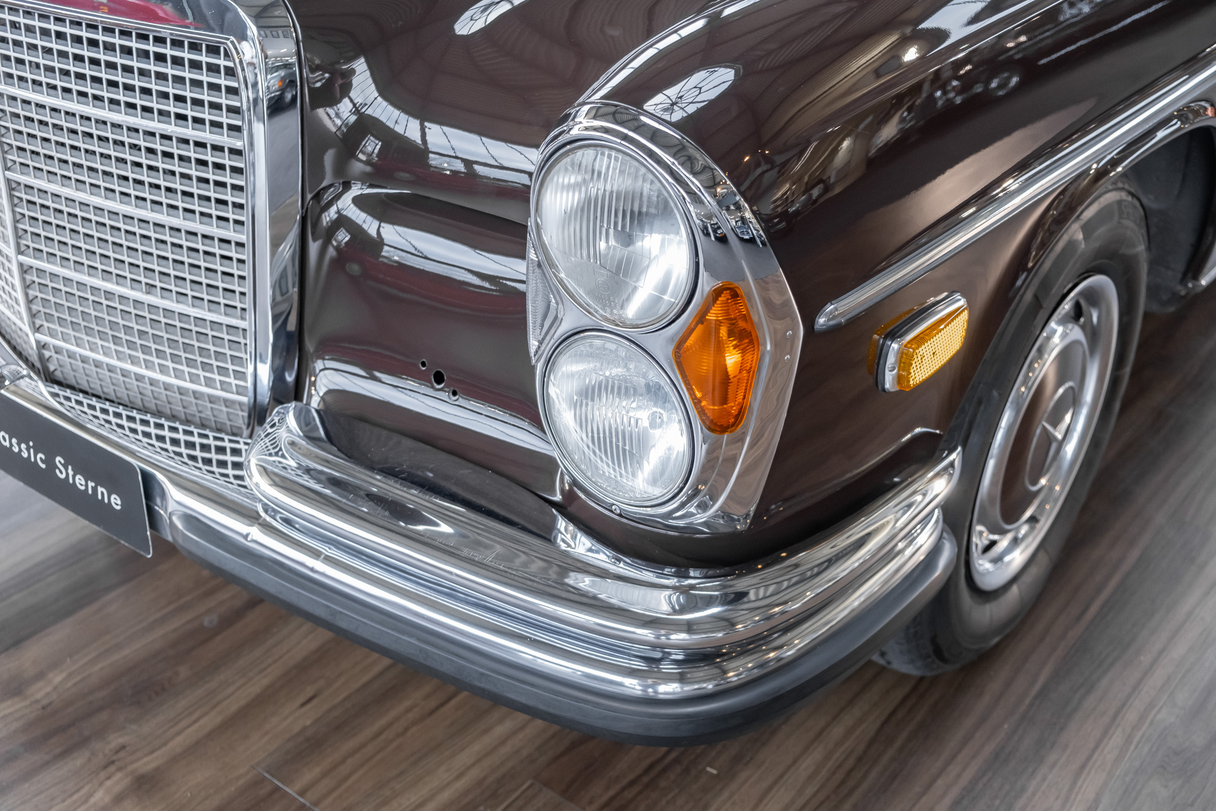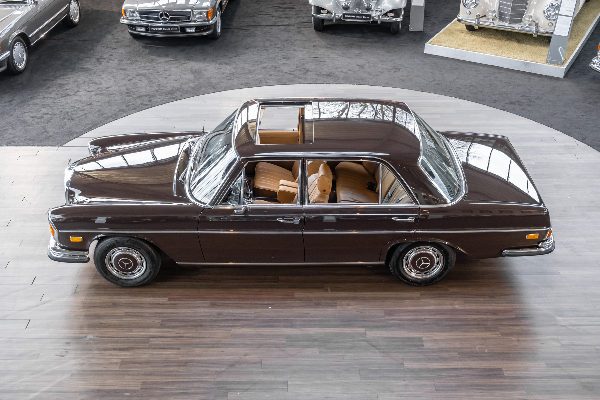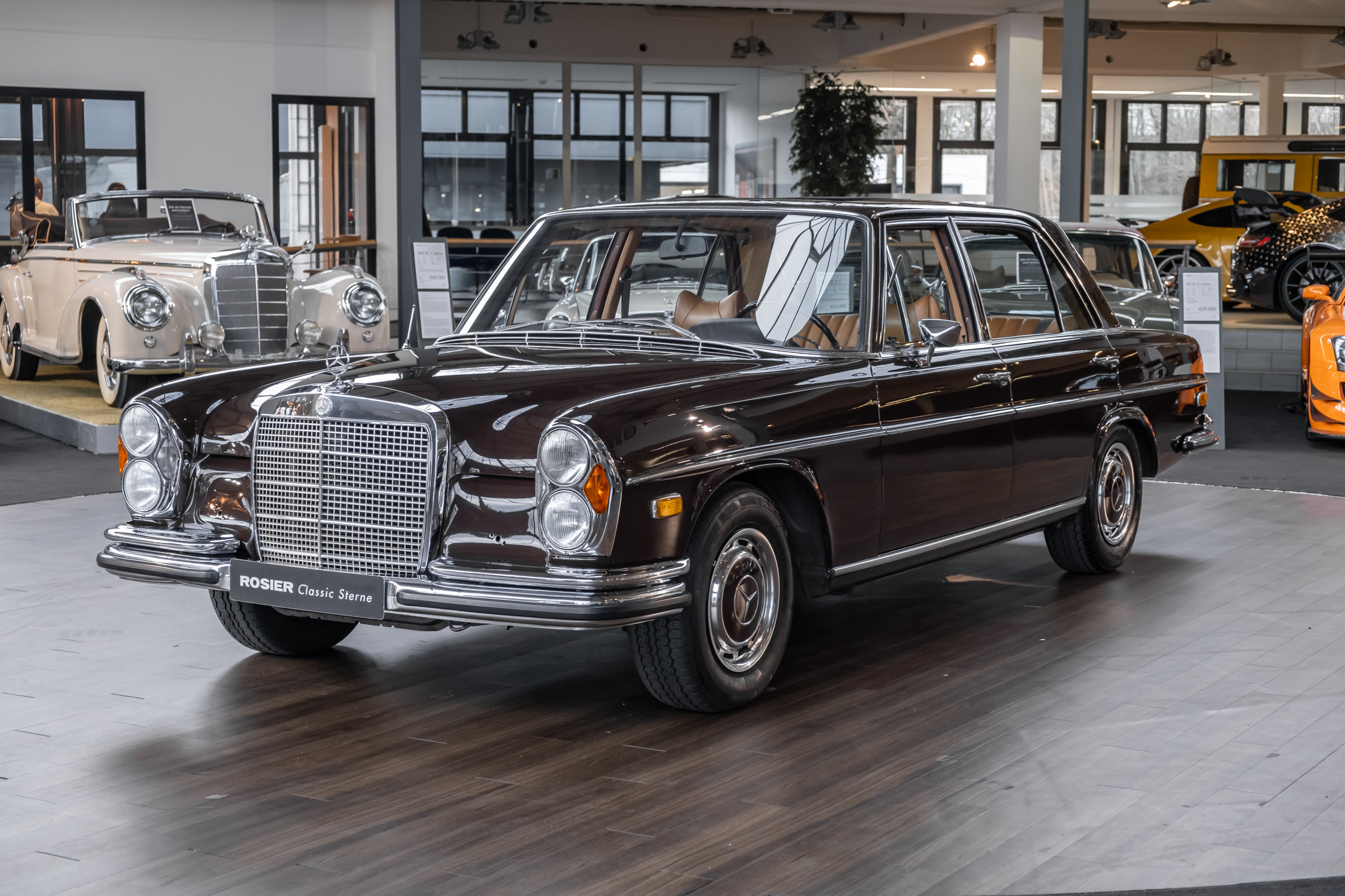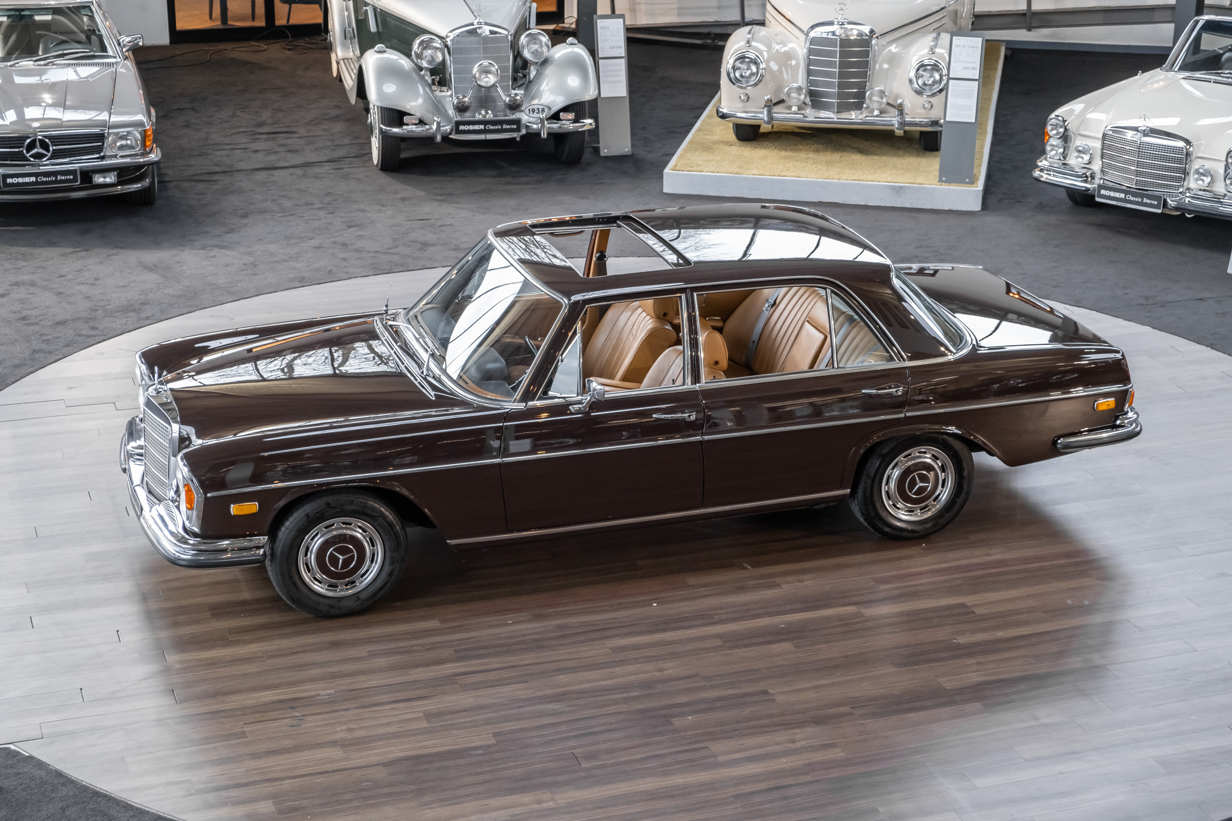 Neu im Showroom: originaler ungeschweißter 280 SEL 4.5 W108 mit Automatikgetriebe, Radio Europa, Klimaanlage, elektr. Fensterheber (4x), elektr. Schiebedach, MB-Tex Ausstattung in Cocnac, Lautsprechersystem, Mittelarmkonsole,