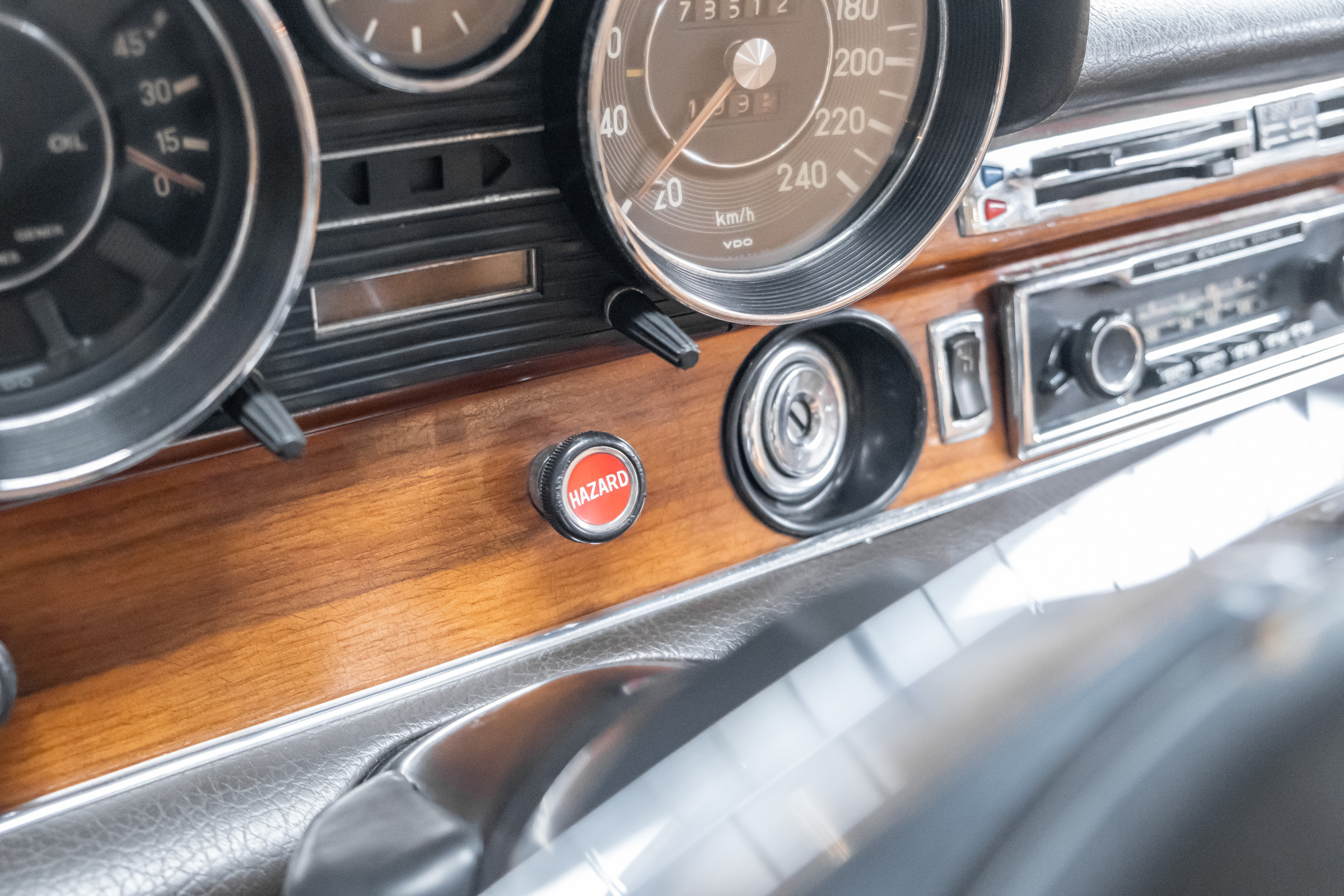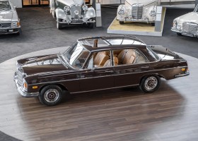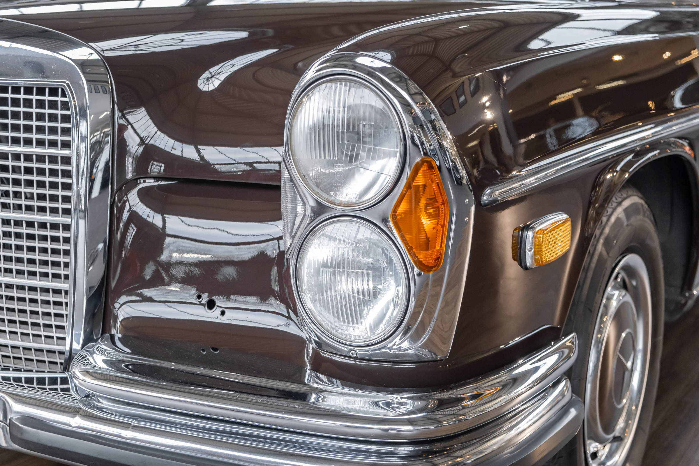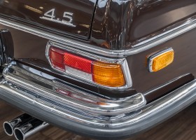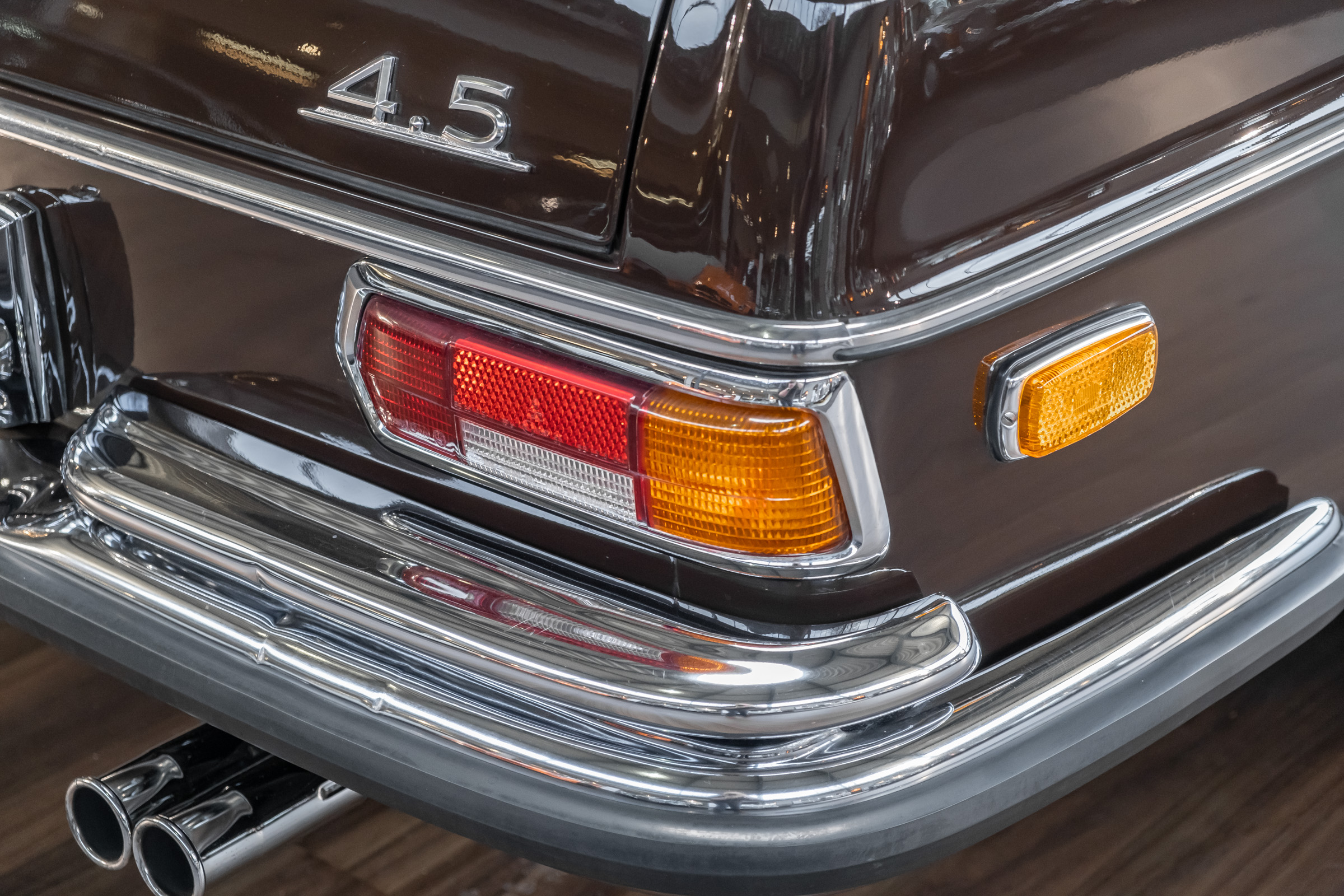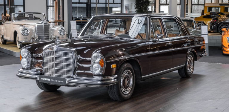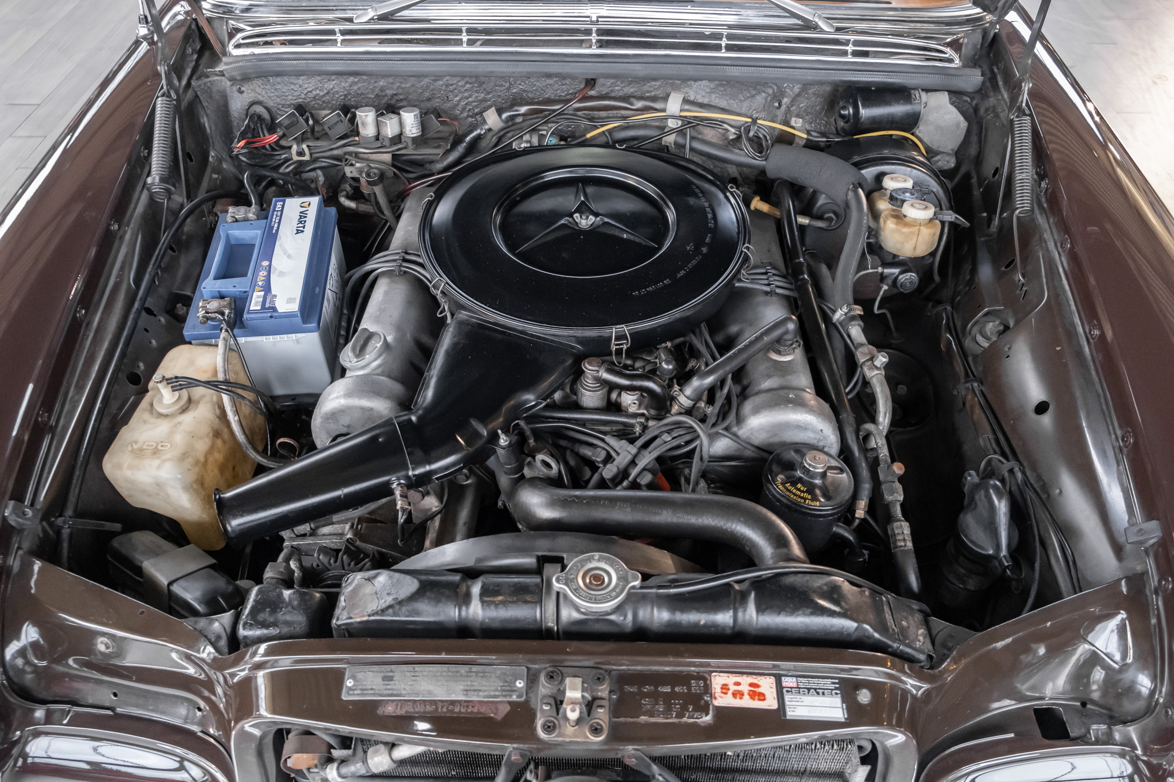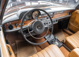 Neu im Showroom: originaler ungeschweißter 280 SEL 4.5 W108 mit Automatikgetriebe, Radio Europa, Klimaanlage, elektr. Fensterheber (4x), elektr. Schiebedach, MB-Tex Ausstattung in Cocnac, Lautsprechersystem, Mittelarmkonsole,