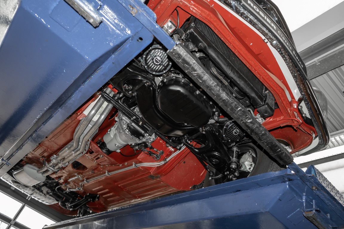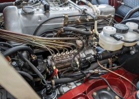 Diese in attraktivem (576G) rot ausgelieferte Mercedes Benz 280SL Pagode wurde unseren Aufzeichungen zufolge am 23. August 1968 an Ihren Erstbesitzer, einen angehörigen der US Navy in den USA ausgeliefert. Der Wagen war ausgestattet mit 4 Gang Schaltgetriebe, schwarzem MB Tex, Becker Radio und einem in Wagenfarbe lackierten Hardtop. Der erste Besitzer behielt den Wagen bis 1972. Der neue Besitzer hatte große Freude an dem aufsehenerregenden Roadster und behielt den Wagen insgesamt 22 Jahre, bevor er ihn in 1994 an seine Nichte in Massachusetts gab. Sie hatte einen Lehrauftrag an der Universität und wohnte dort in Laufdistanz. So wurde der Wagen in den nächsten 17 Jahren gerade einmal 829 Meilen gefahren. In 2011 verkaufte die bisher 3. Besitzerin den Wagen. In 2014 wurde die Pagode erneut abgegeben und kam schließlich im Frühjahr 2016 in unseren Besitz nach Deutschland.