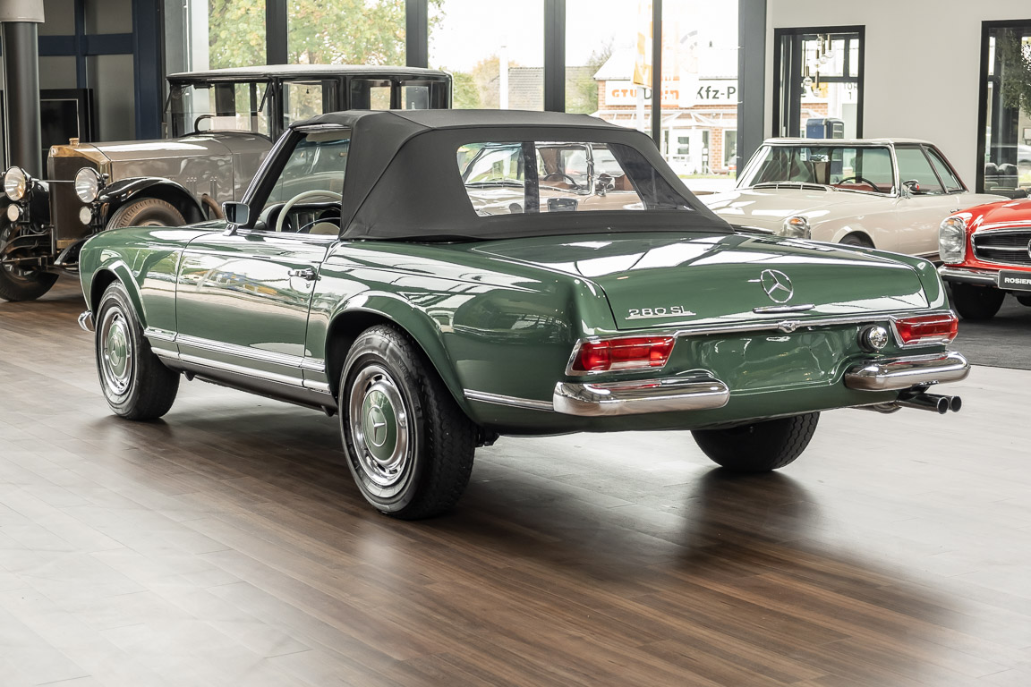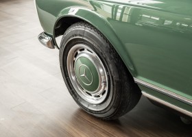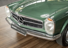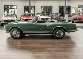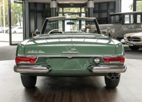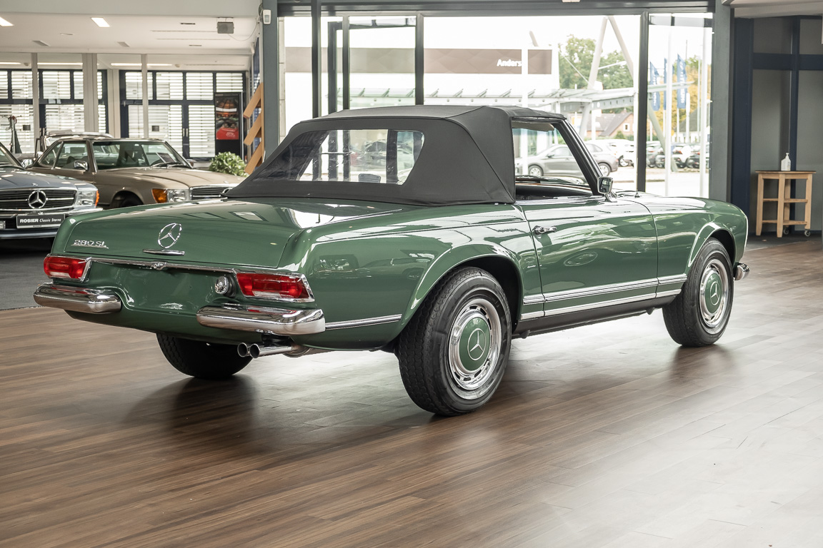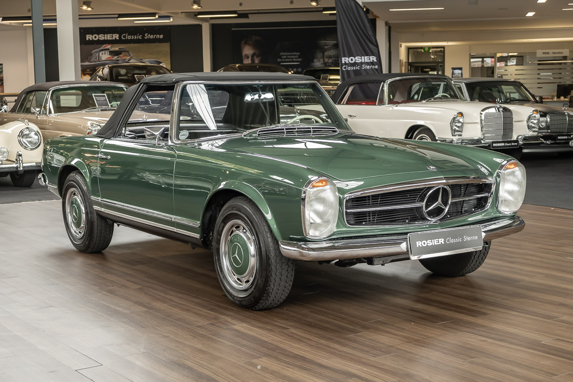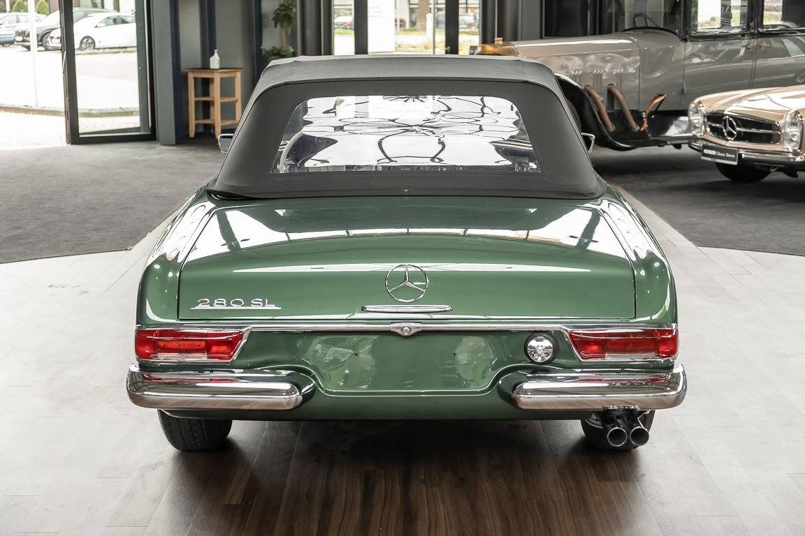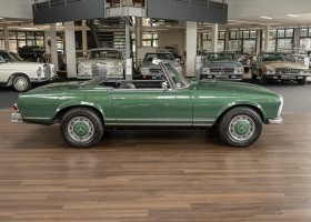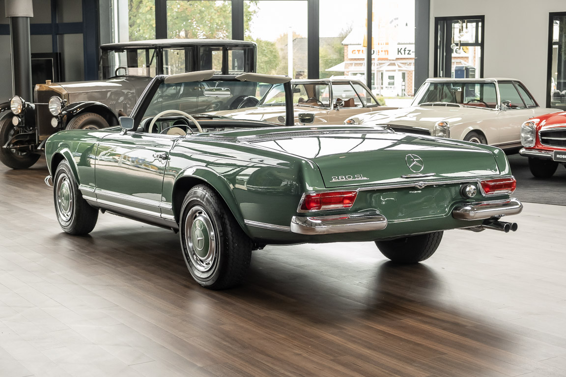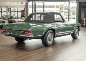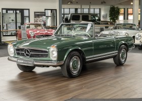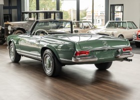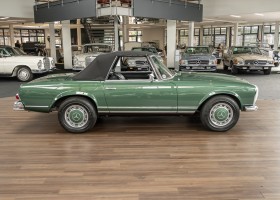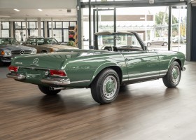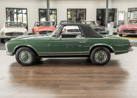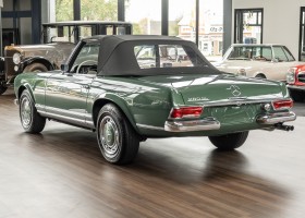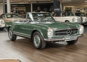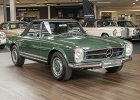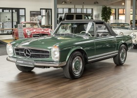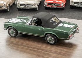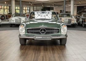 Wir freuen und, Ihnen diese ausdrucksstarke 280 SL Pagode im seltenen Farbton DB834 Moosgrün Metallic anbieten zu können. Das 4-Gang Schaltgetriebe harmoniert perfekt mit der kraftvollen 280er Pagode und bereitet herrlichen Fahrspaß. Das Fahrzeug wird mit Hardtop in Wagenfarbe verkauft.