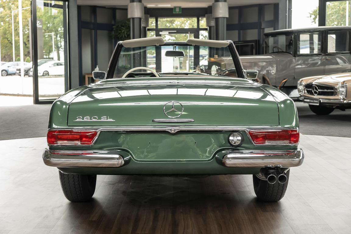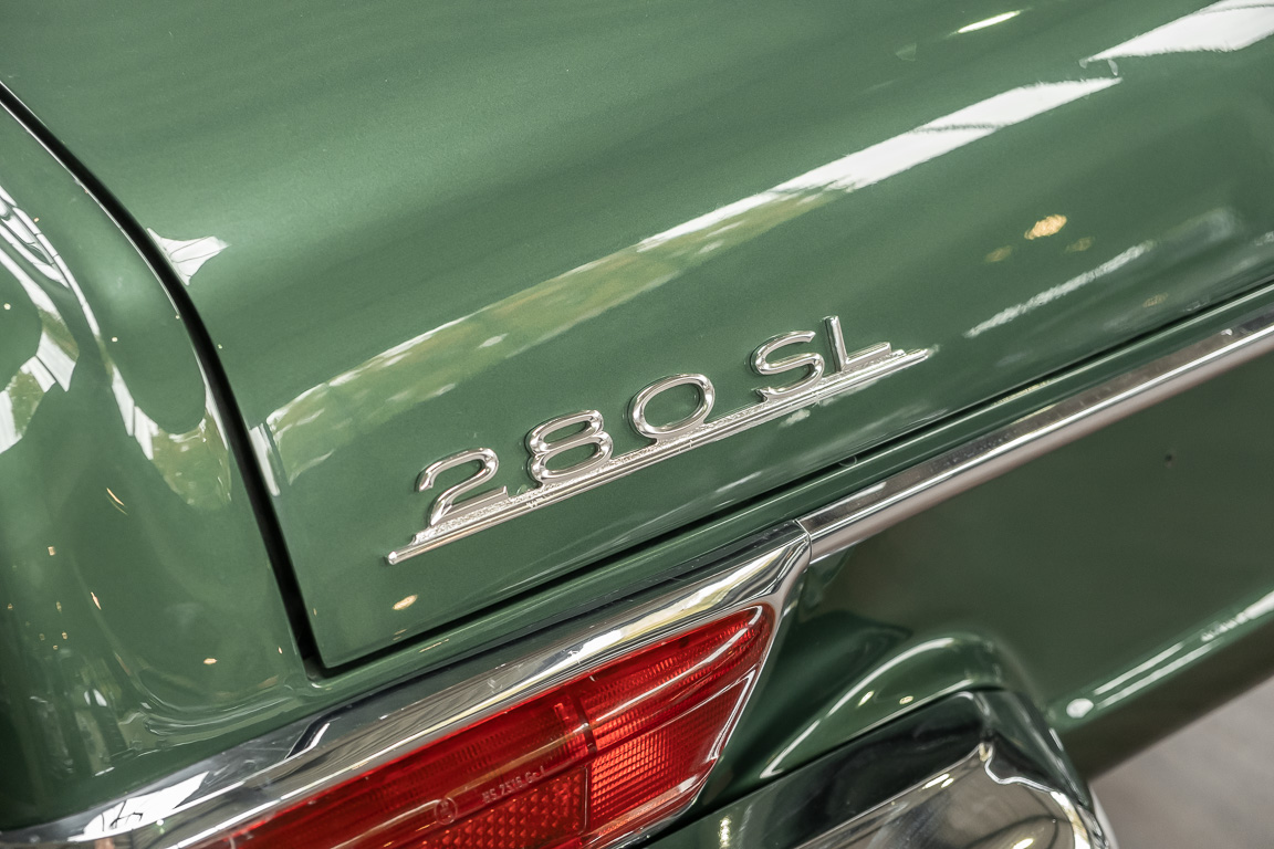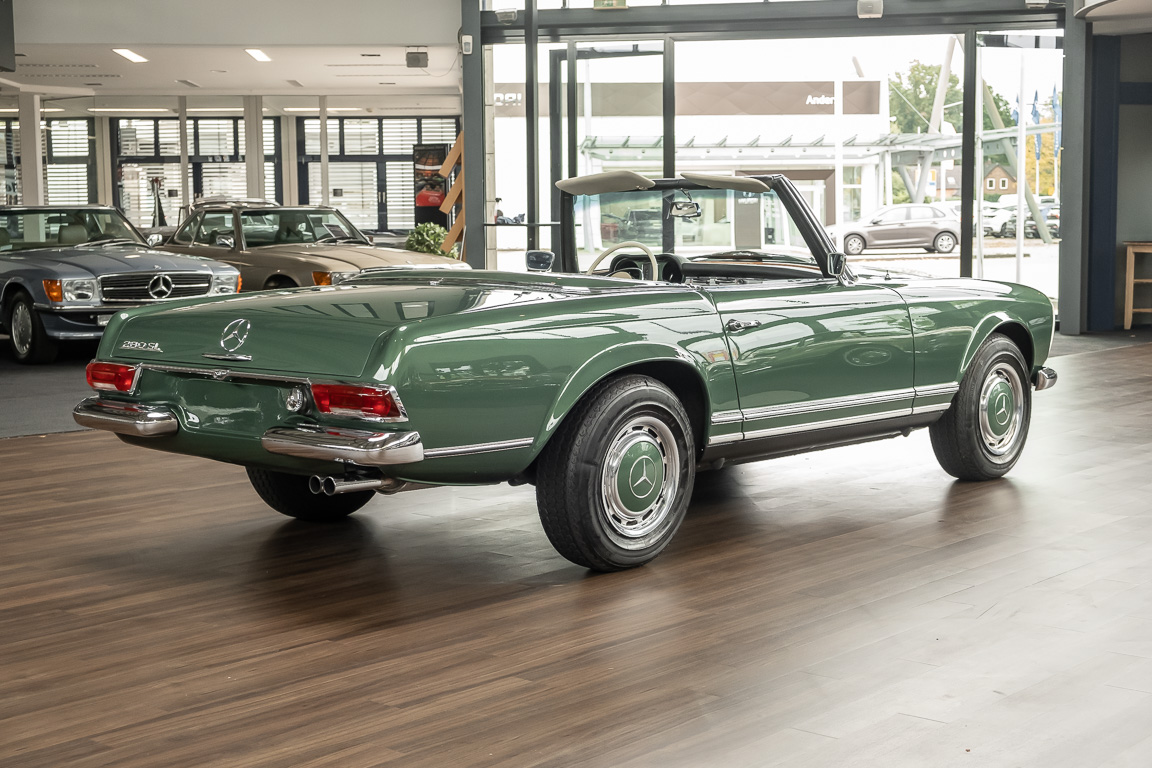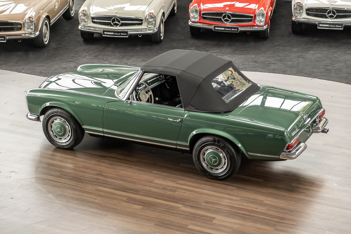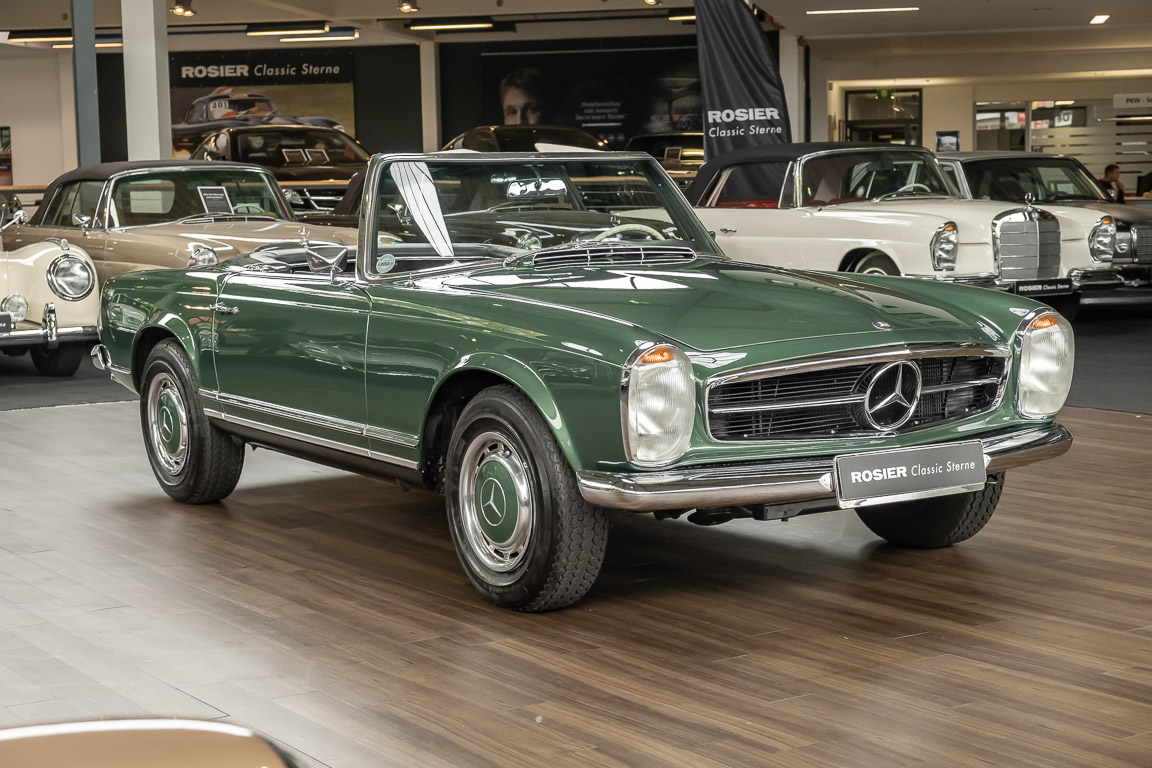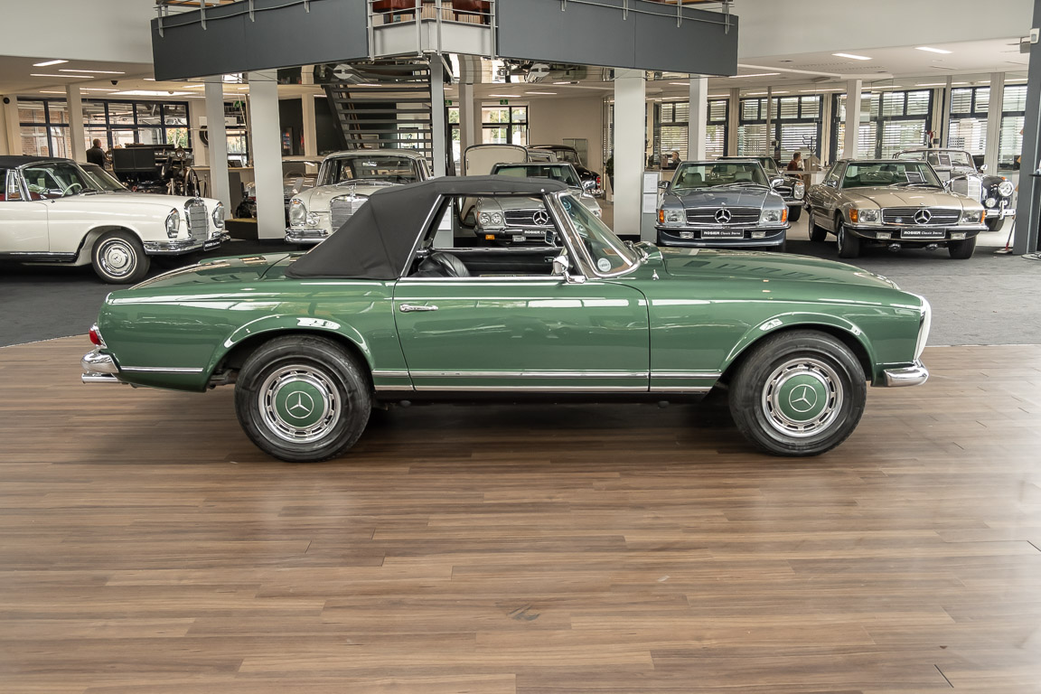 Wir freuen und, Ihnen diese ausdrucksstarke 280 SL Pagode im seltenen Farbton DB834 Moosgrün Metallic anbieten zu können. Das 4-Gang Schaltgetriebe harmoniert perfekt mit der kraftvollen 280er Pagode und bereitet herrlichen Fahrspaß. Das Fahrzeug wird mit Hardtop in Wagenfarbe verkauft.