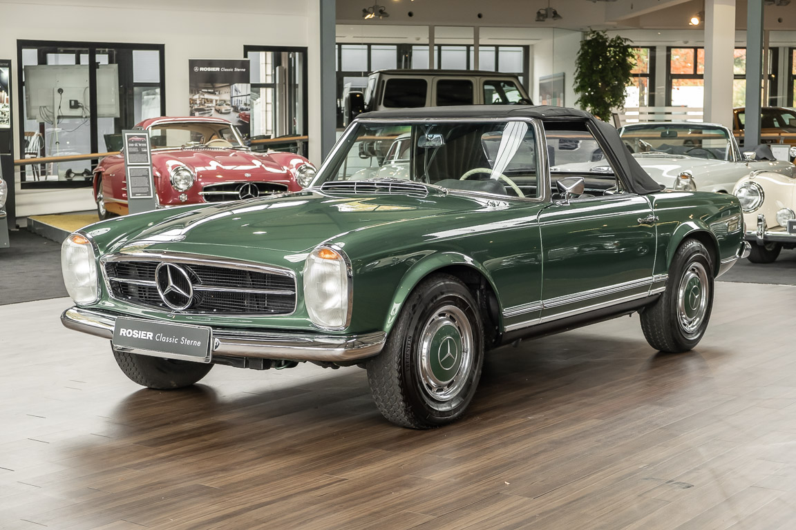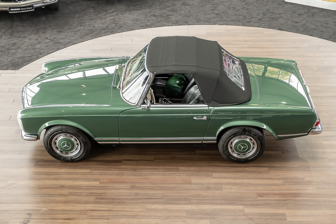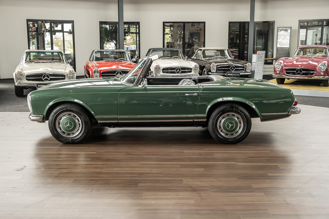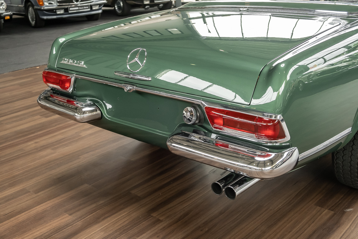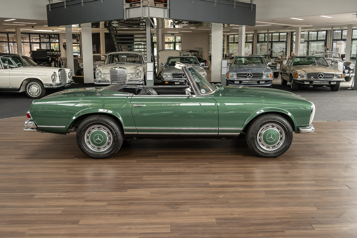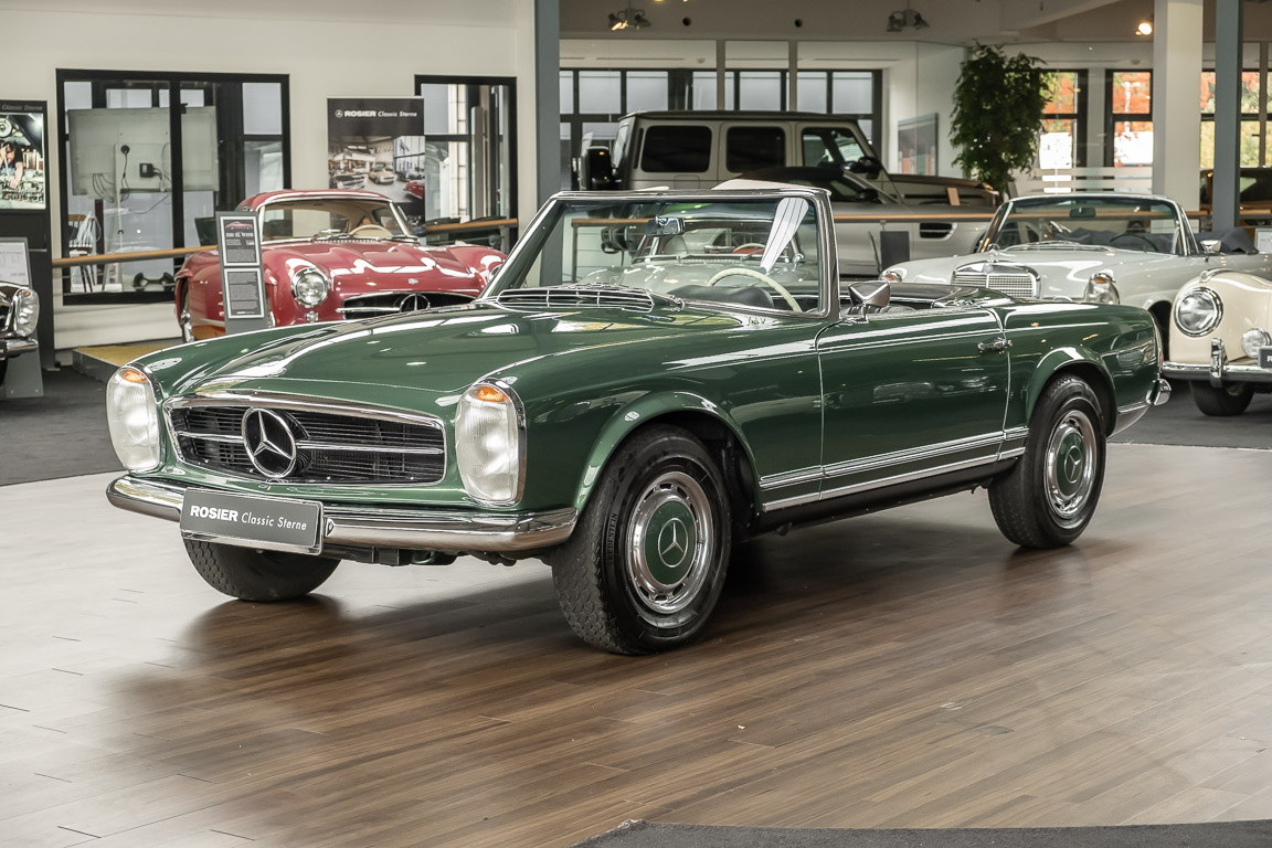 Wir freuen und, Ihnen diese ausdrucksstarke 280 SL Pagode im seltenen Farbton DB834 Moosgrün Metallic anbieten zu können. Das 4-Gang Schaltgetriebe harmoniert perfekt mit der kraftvollen 280er Pagode und bereitet herrlichen Fahrspaß. Das Fahrzeug wird mit Hardtop in Wagenfarbe verkauft.