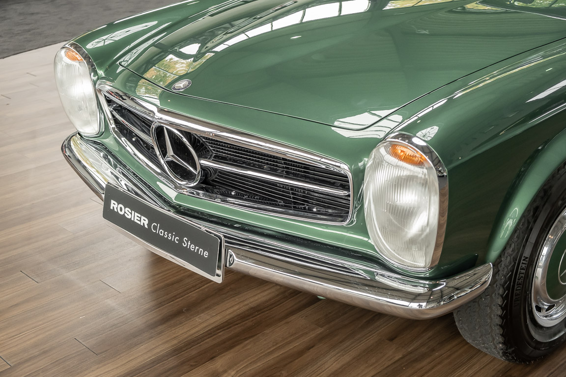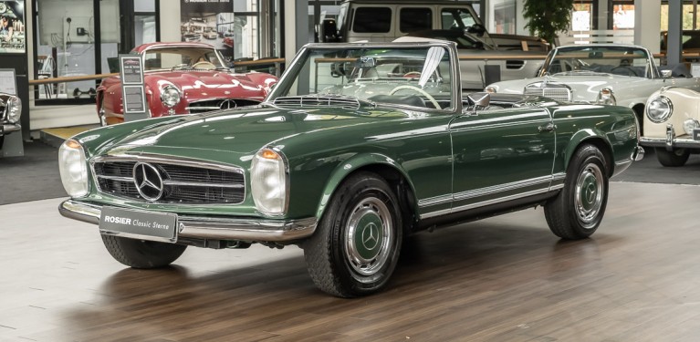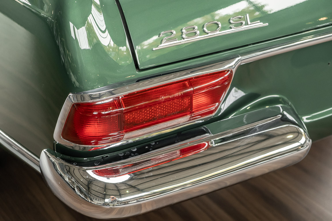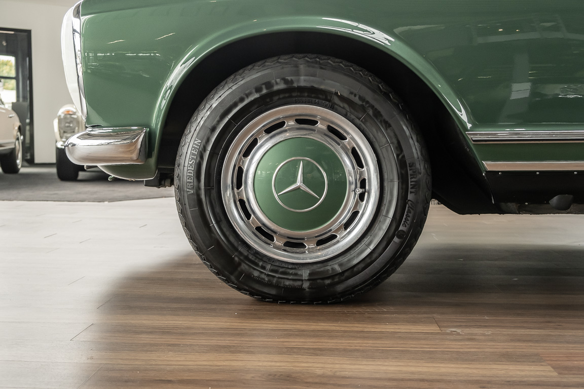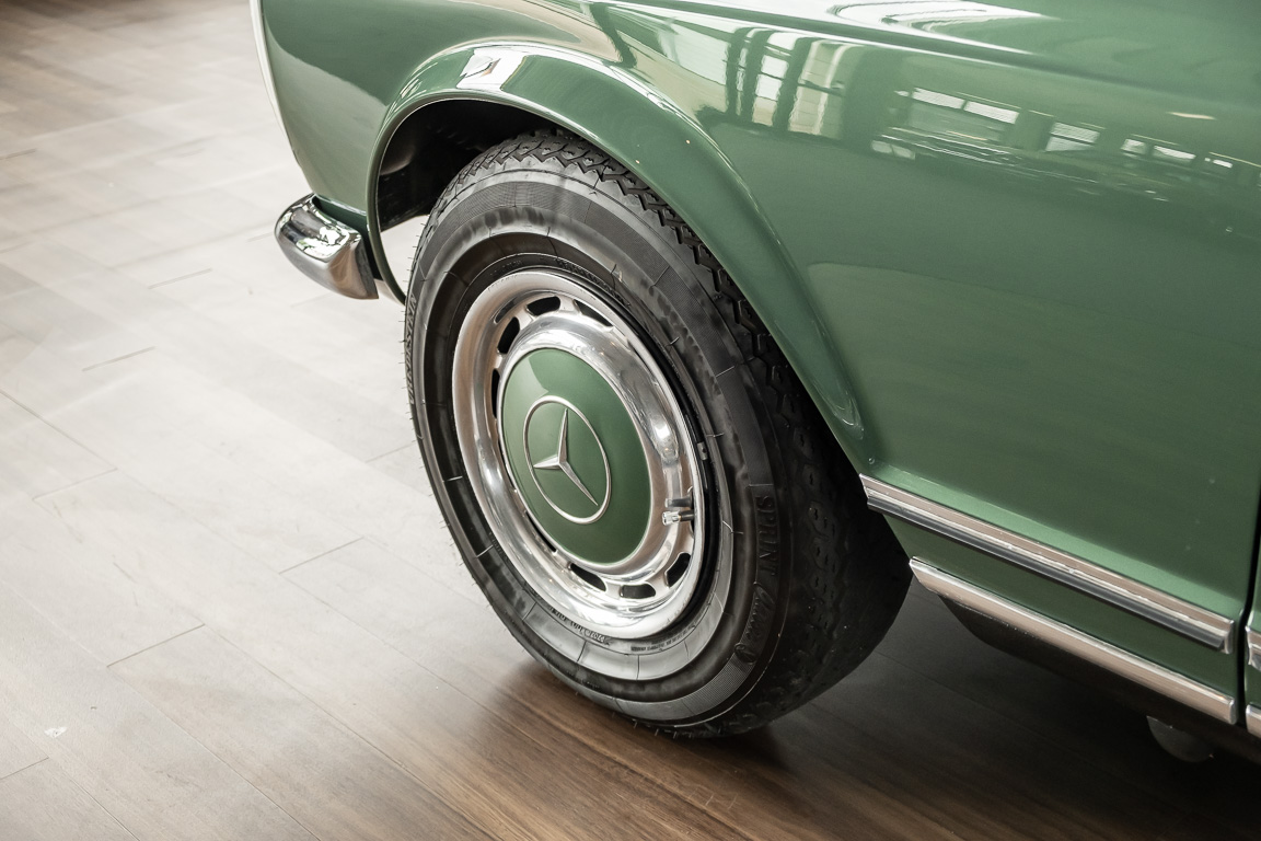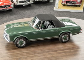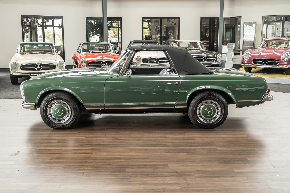 Wir freuen und, Ihnen diese ausdrucksstarke 280 SL Pagode im seltenen Farbton DB834 Moosgrün Metallic anbieten zu können. Das 4-Gang Schaltgetriebe harmoniert perfekt mit der kraftvollen 280er Pagode und bereitet herrlichen Fahrspaß. Das Fahrzeug wird mit Hardtop in Wagenfarbe verkauft.