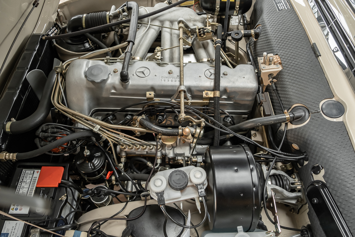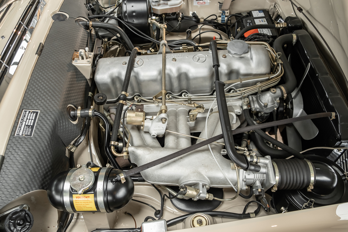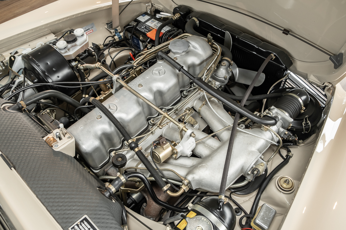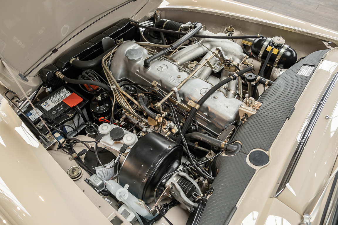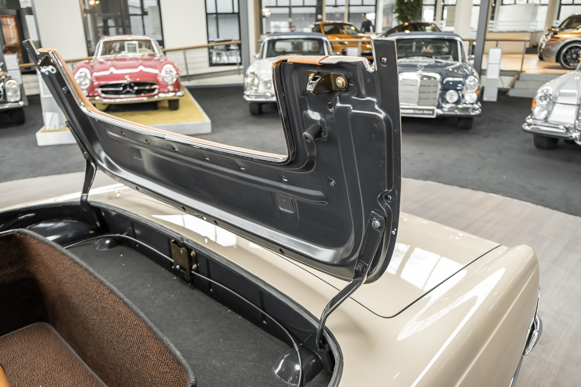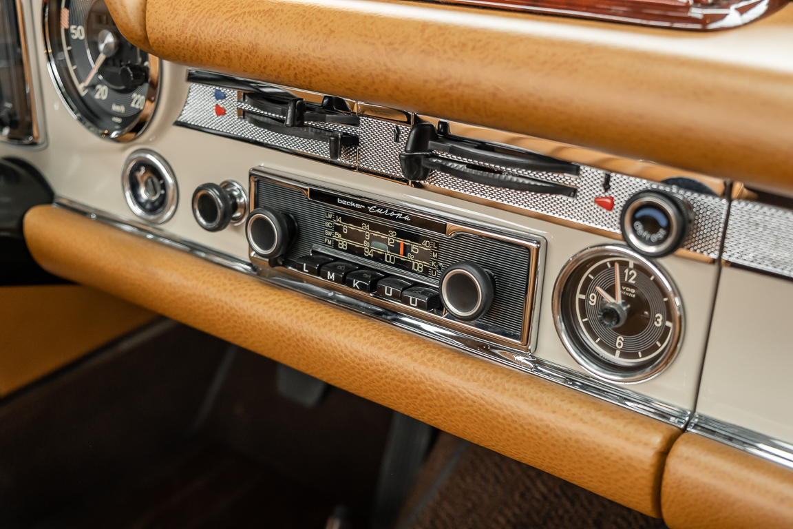 Eine Pagode auf höchstem Niveau im Hause BRABUS restauriert. Originalgetreu nach Datenkarte, mit viel Liebe zum Detail als 6 Sterne Restaurierung neu aufgebaut. Es wurden unzählig viele Neuteile verwendet. Für eine solch aufwändige Restaurierung werden gerne zwischen 5 und 6.000 Arbeitsstunden benötigt. Dafür ist am Ende eine Qualität von einmaliger Güte erreicht. Alle Komponenten wurden geprüft, bearbeitet oder ausgetauscht und in Bestzustand versetzt. Die Karosserie wurde nach modernstem Verfahren sorgfältig vom Lack befreit und ein neuer Lackauftrag vorgenommen.