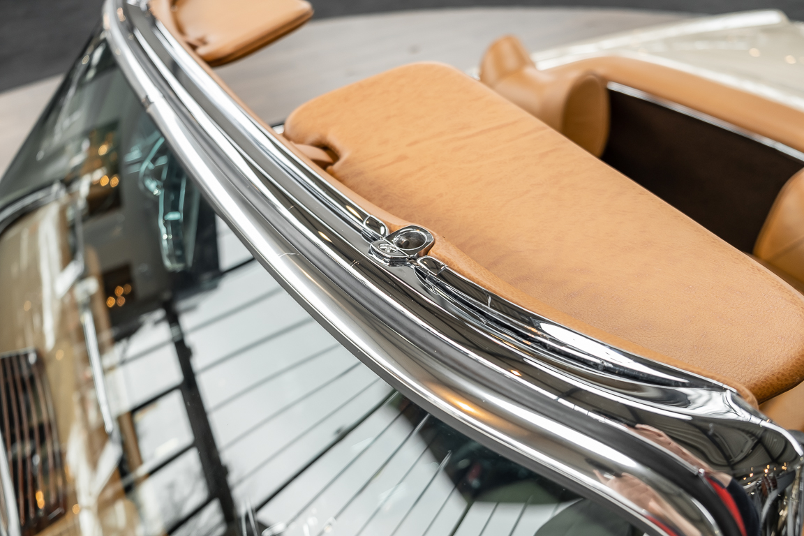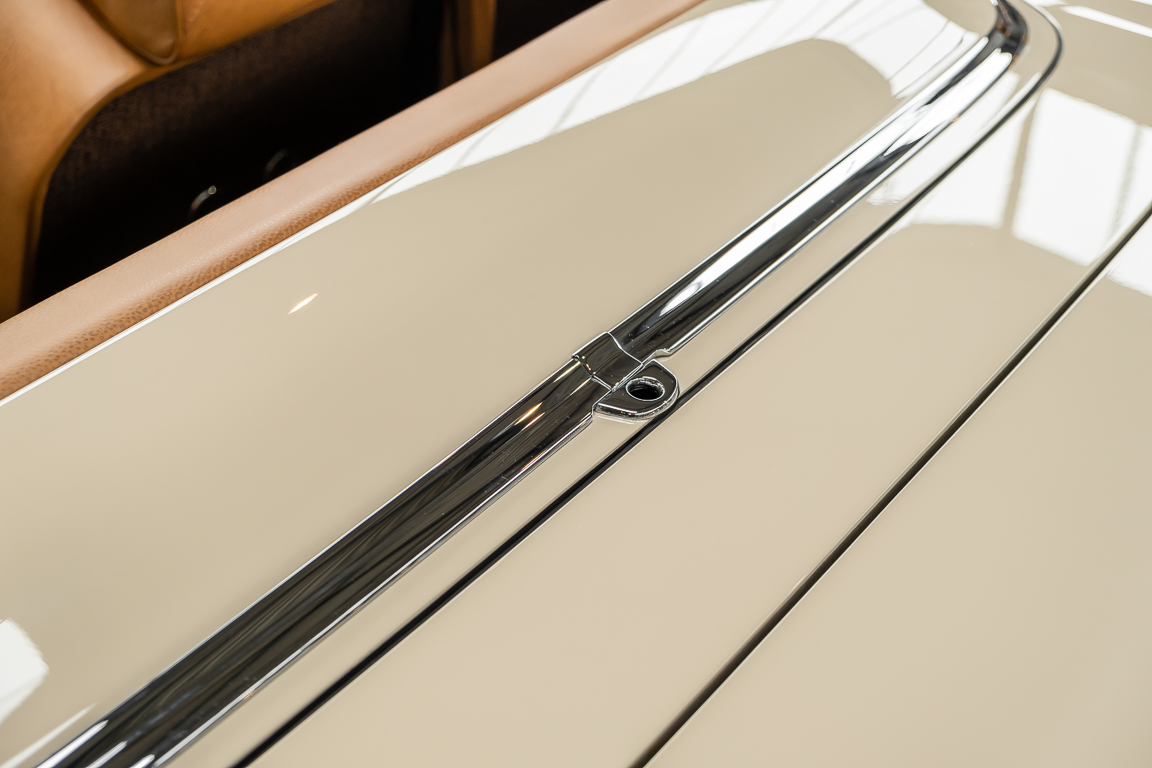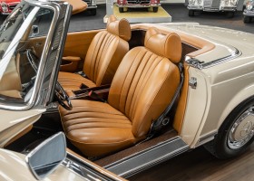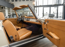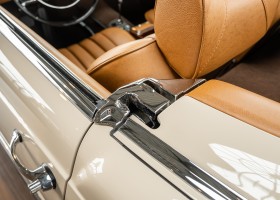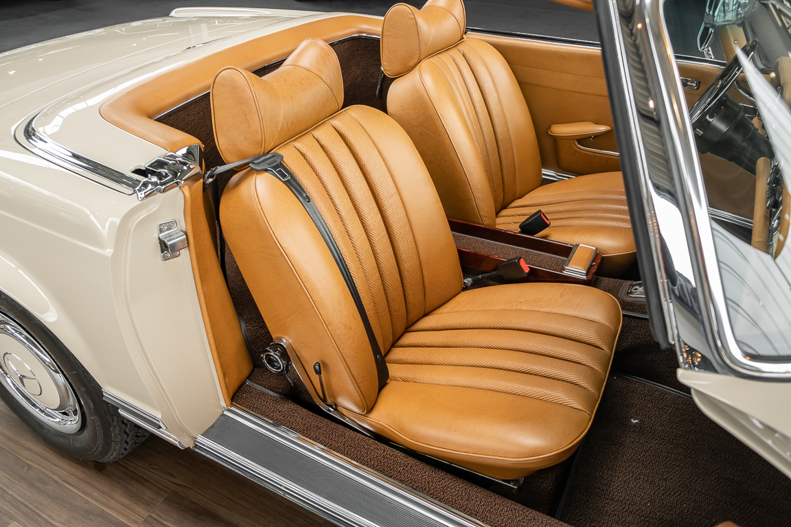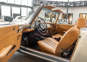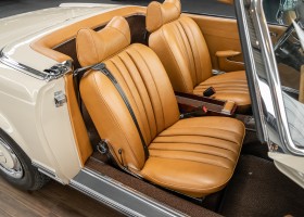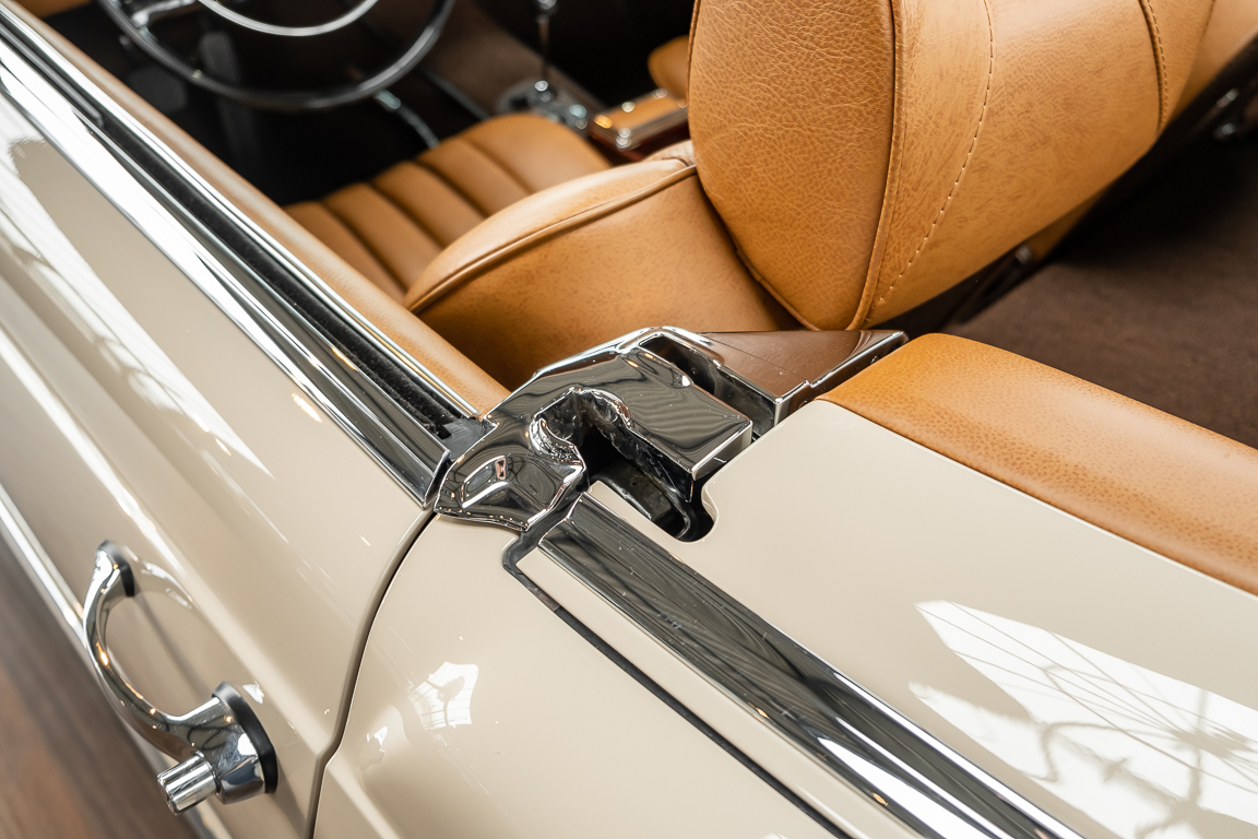 Die Innenausstattung wurde in feinem Leder von erfahrenen Sattlern sorgfältig vernäht und eingepasst. Ein Ergebnis, dass selbst dem verwöhntesten Fachmann hohe Anerkennung abverlangt. Gerne zeigen wir Ihnen diese Traumpagode ausführlich, nehmen Sie sich die Zeit, es lohnt sich.