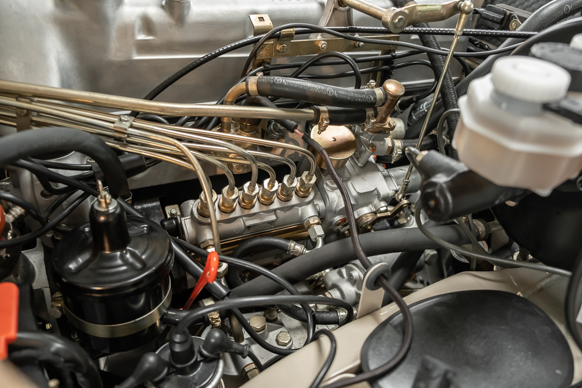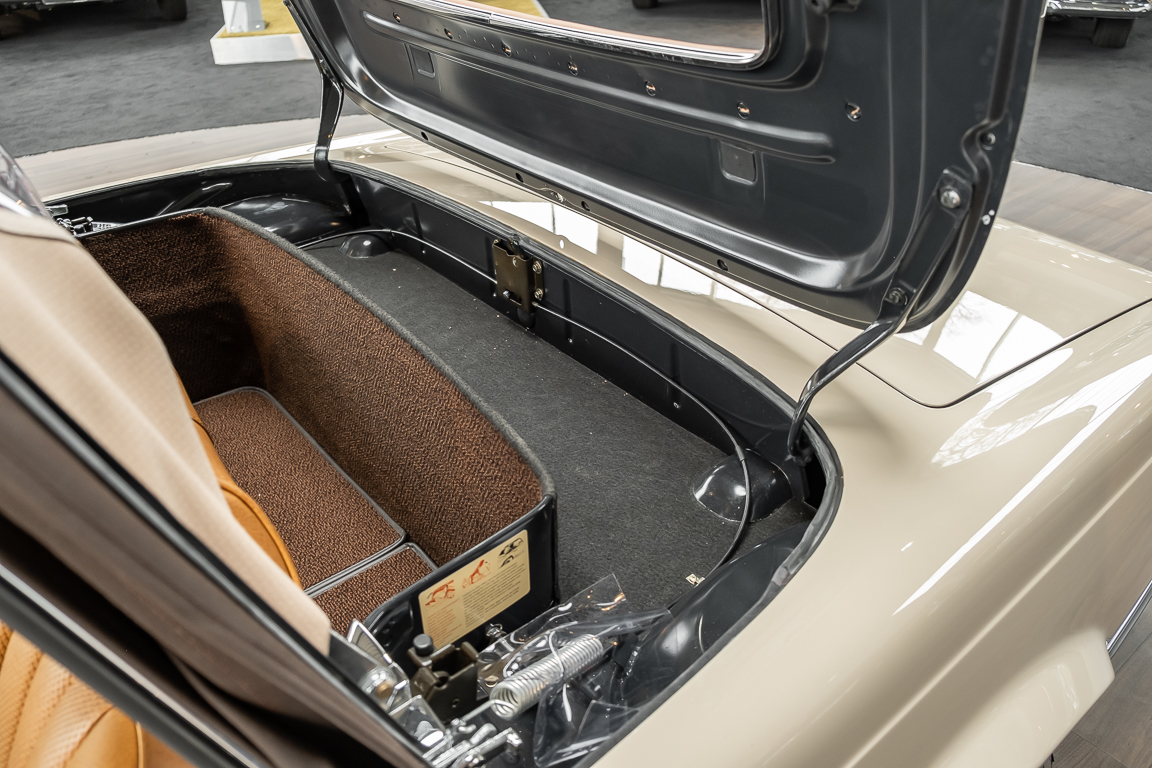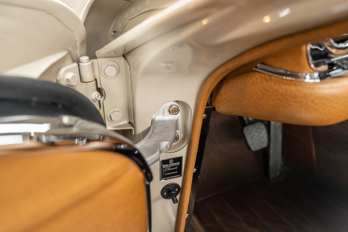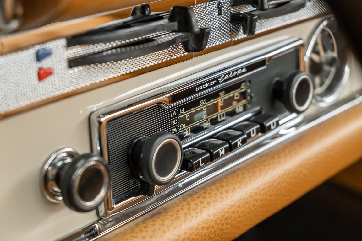 Die Innenausstattung wurde in feinem Leder von erfahrenen Sattlern sorgfältig vernäht und eingepasst. Ein Ergebnis, dass selbst dem verwöhntesten Fachmann hohe Anerkennung abverlangt. Gerne zeigen wir Ihnen diese Traumpagode ausführlich, nehmen Sie sich die Zeit, es lohnt sich.
