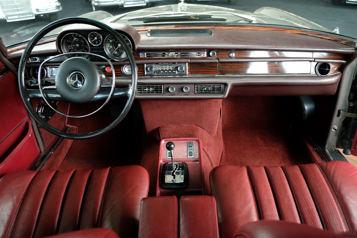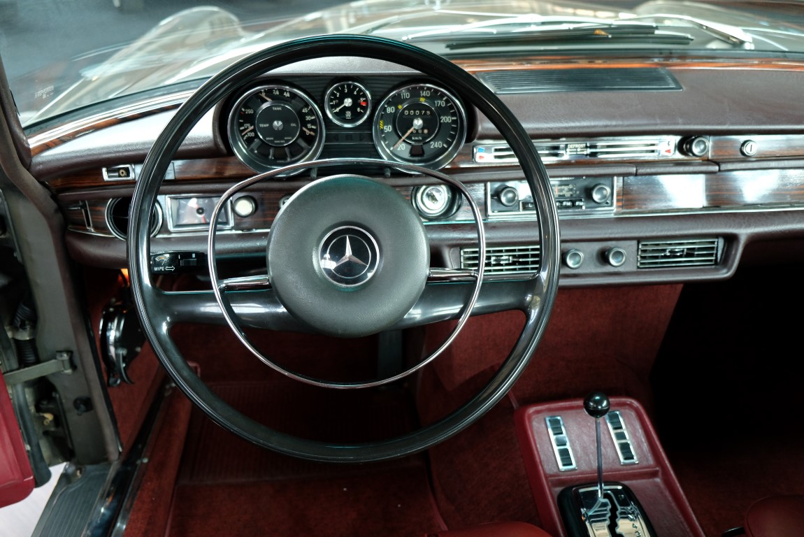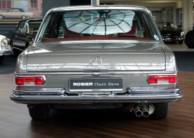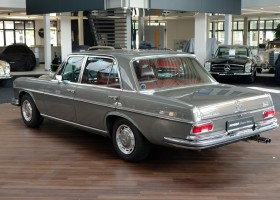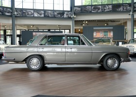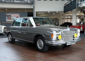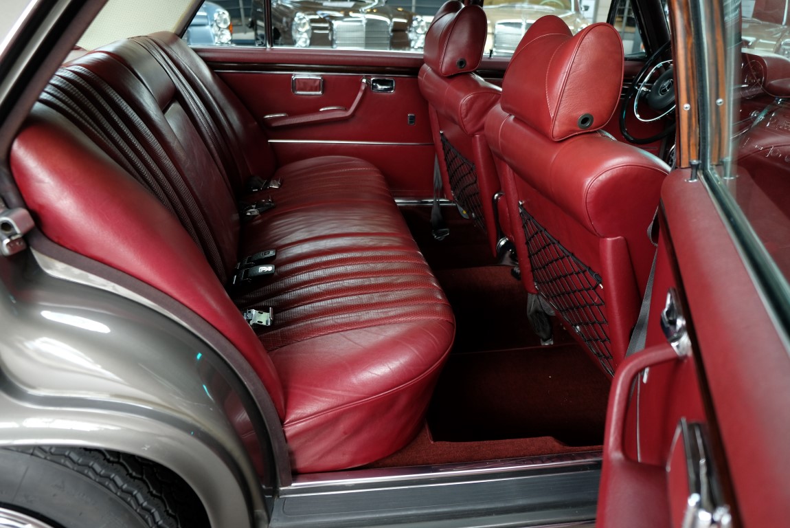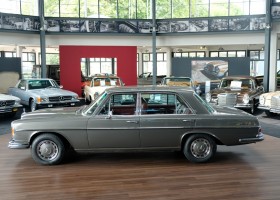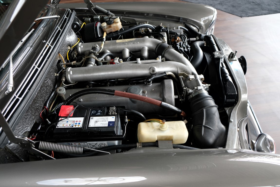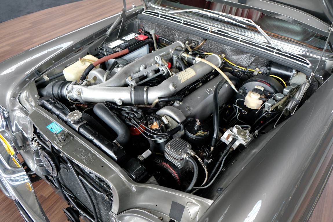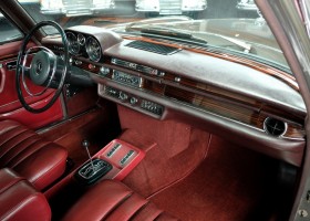 Er hatte sich einen Traum erfüllt und gab dem Wagen einen standesgemäßen Garagenplatz an seiner Villa mit eigenem Bootssteg, in der malerischen Halstead Bay. Als er sich in 2017 entschied, den Wagen abzugeben, konnten wir ihn übernehmen und nach Deutschland holen. Die mit dem kraftvollen 6,3 Liter Motor ausgestatteten 300 SEL Modelle sind sehr gesucht. Top Exemplare sind kaum zu bekommen. So haben wir uns entschlossen, den Wagen trotz hervorragender Substanz komplett zu überarbeiten und ein Top Exemplar daraus zu machen. Der Unterbau wurde professionell gereinigt und neu versiegelt, die Achsen überholt, neue Luftbälge und Stoßdämpfer verbaut, die Servolenkung überholt, ein neuer Kühler verbaut, der Originalmotor überprüft, neu eingestellt und wo nötig Teile erneuert. Im Rahmen der Rückrüstung der seitlichen amerikanischen Beleuchtung auf deutschen Standard, erhielt der Wagen eine neue Ganzlackierung. Nun präsentiert sich der Wagen in sensationellem Zustand, man möchte schnell den Begriff „wie neu“ verwenden. Lassen Sie sich ebenfalls faszinieren, von der Ausstrahlung dieses Top-Mercedes. Einen solchen 300 SEL 6.3 findet man höchst selten.