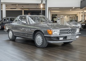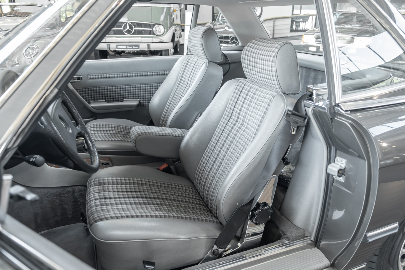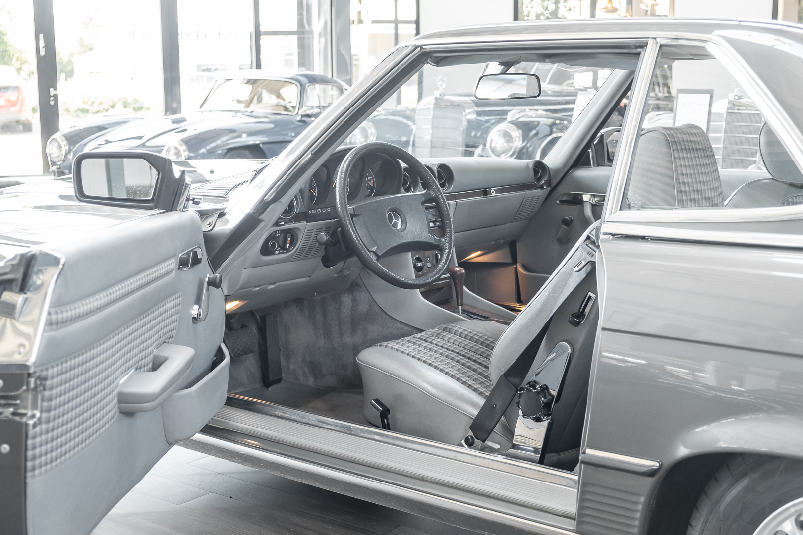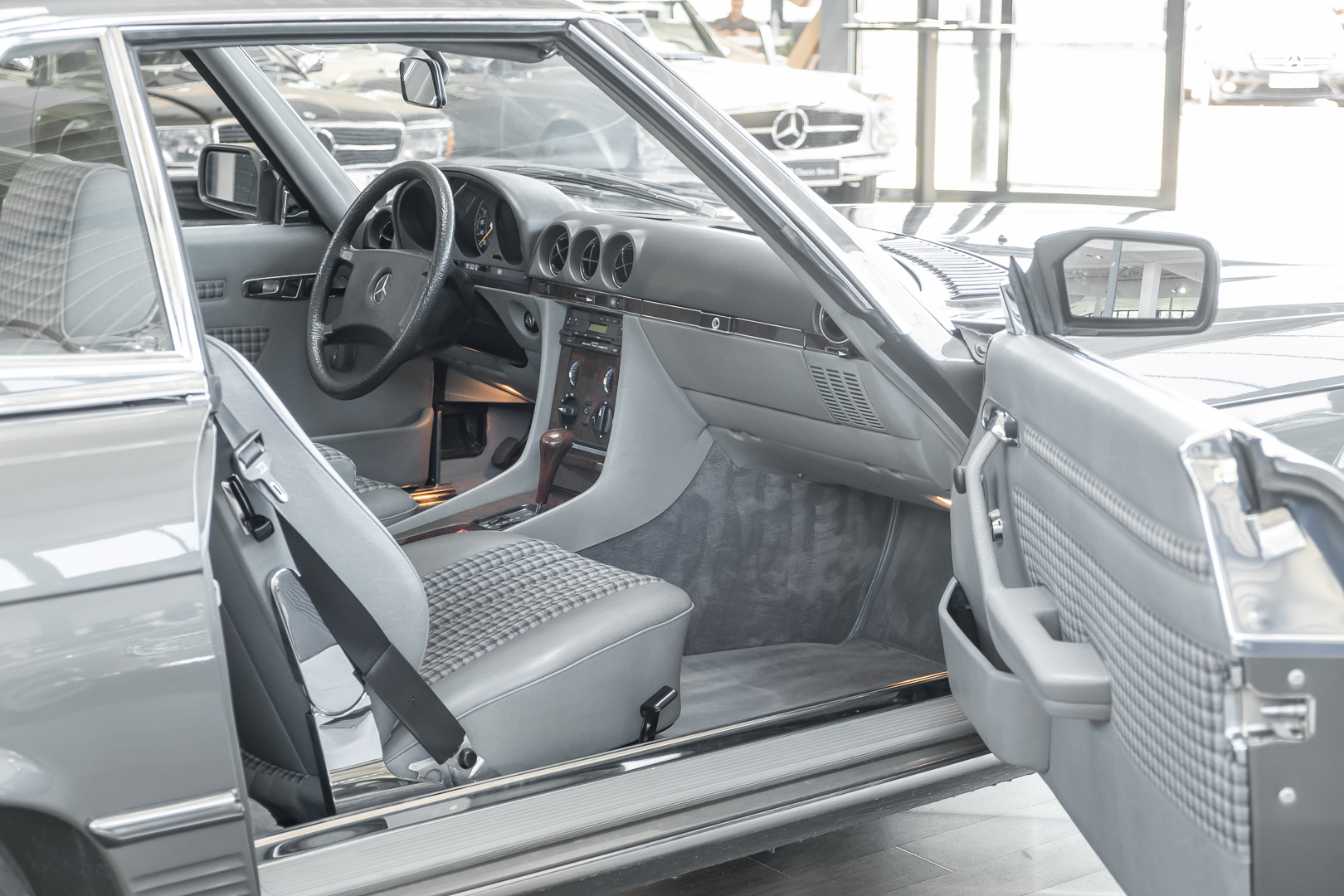 Neu im Showroom: 300 SL der Baureihe 107 in Anthrazitgrau Metallic in gelungener Kombination mit grauen Karo-Stoff-Sitzen. Mit einer Laufleistung von nur 41.000 km und einem Mercedes gepflegten Serviceheft präsentiert sich dieser 300 SL in ausnahmslosem Topzustand. Das Fahrzeug befindet sich derzeit in der Aufbereitung, weitere Informationen folgen.