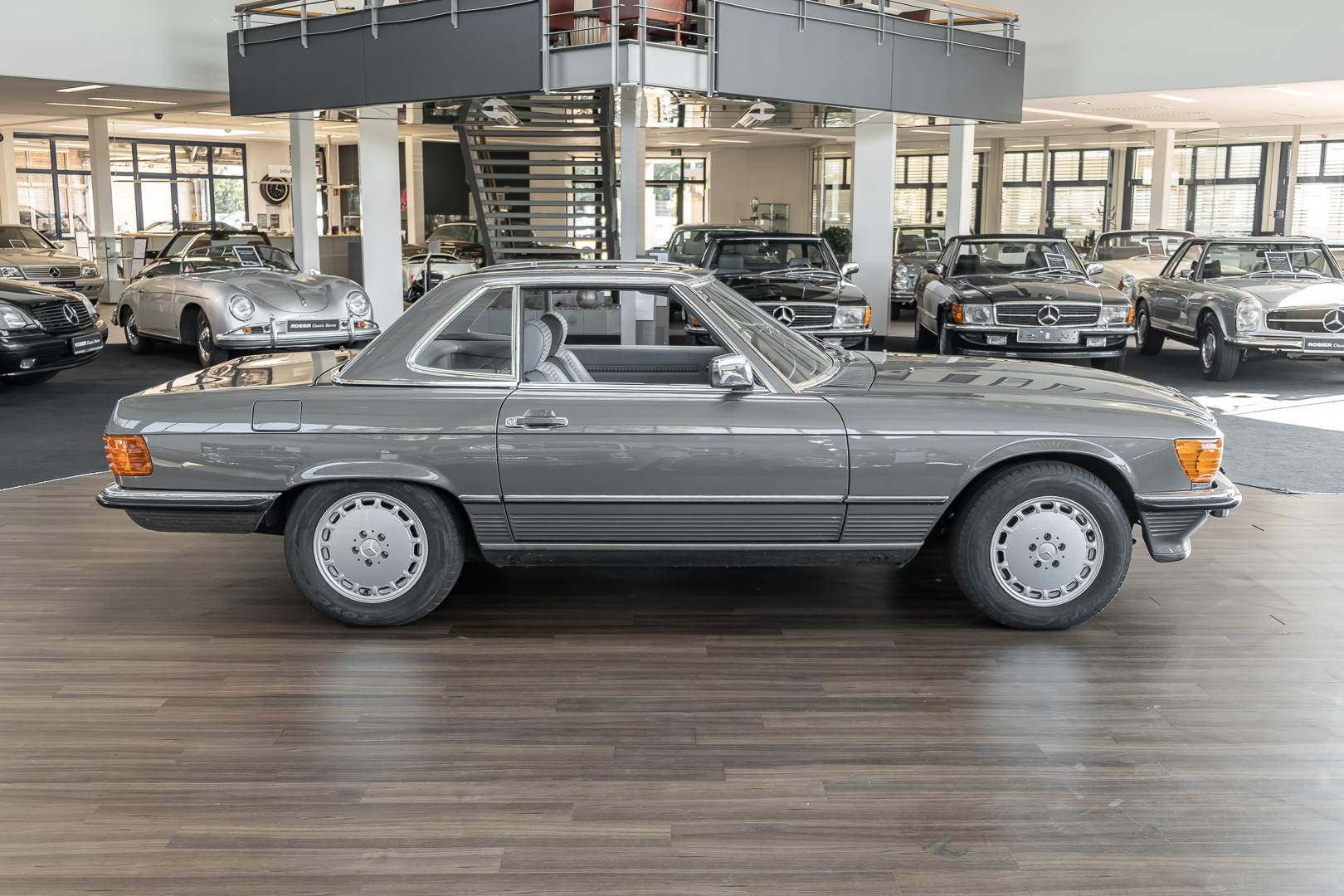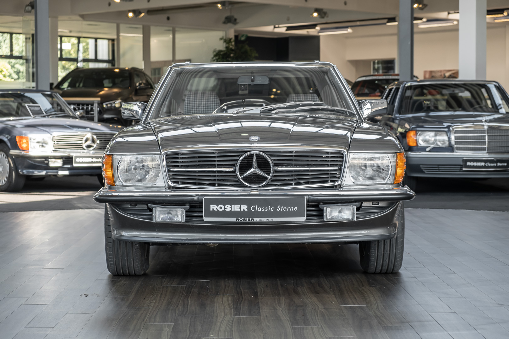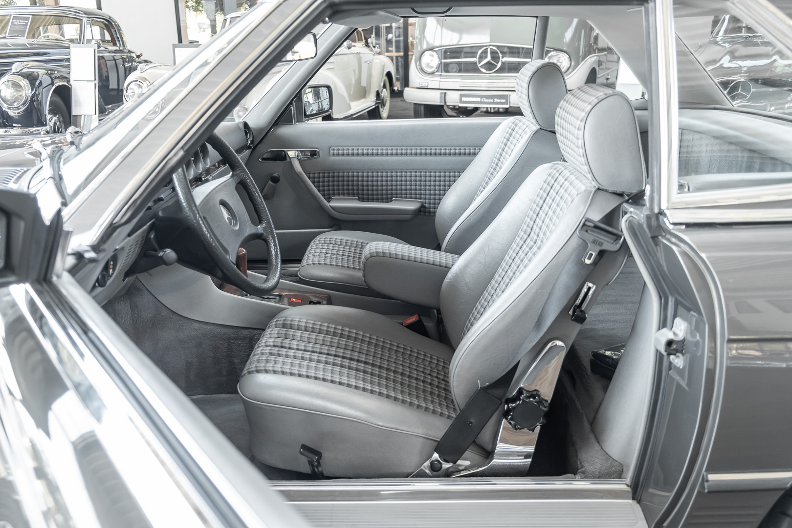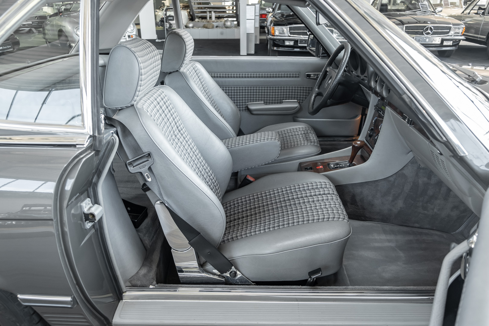 Neu im Showroom: 300 SL der Baureihe 107 in Anthrazitgrau Metallic in gelungener Kombination mit grauen Karo-Stoff-Sitzen. Mit einer Laufleistung von nur 41.000 km und einem Mercedes gepflegten Serviceheft präsentiert sich dieser 300 SL in ausnahmslosem Topzustand. Das Fahrzeug befindet sich derzeit in der Aufbereitung, weitere Informationen folgen.
