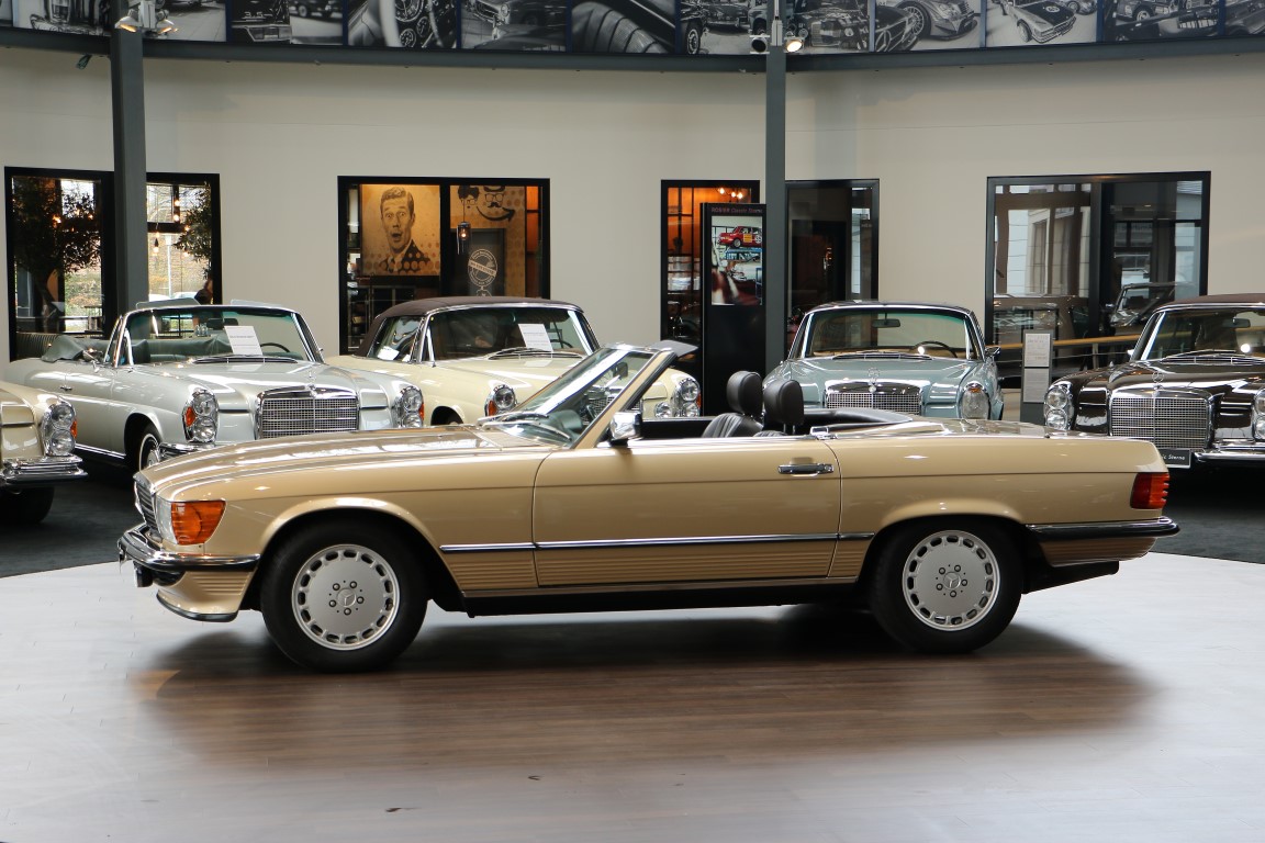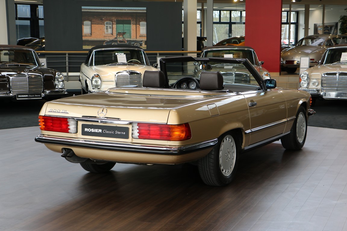 Dieser elegante Mercedes-Benz 300SL Roadster wurde 1986 über Auto Henne in München in deutscher Ausführung bestellt. Das erste Besitzer-Ehepaar nutze das Fahrzeug nach Übernahme zuerst in der Schweiz und nahm es als Umzugsgut im Sommer 1988 mit in die USA. Es fand sein neues Zuhause in einer aufgeräumten gehobenen Einfamilienhaussiedlung in Colorado Springs, Colorado/USA. In 2012 kam der Wagen aus den USA zurück nach Deutschland und fand sein Zuhause in Berlin. Hier erwarb den eleganten Roadster sein bisher letzter Besitzer und nahm ihn mit in die herrliche Gegend des Starnberger Sees in Bayern.