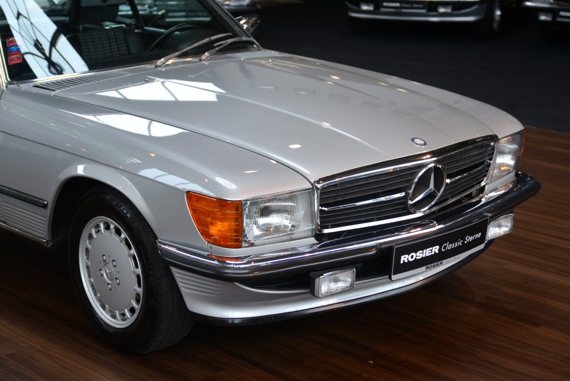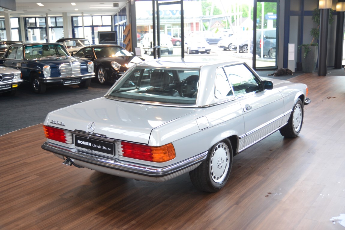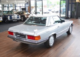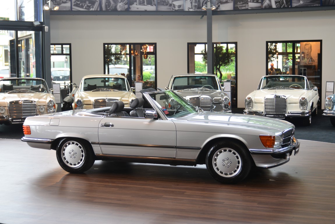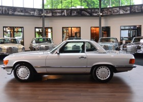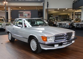 Dieser elegante Mercedes-Benz 300SL Roadster aus der so begehrten Reihe R107 wurde am 11.03.1987 auf seinen Erstbesitzer im Südwesten Deutschlands zugelassen. Der Roadster verblieb all die Jahre im Schwabenland und wurde regelmäßig in Mercedes-Benz Werkstätten gewartet, wie es das noch vorhandene Original-Kundendienstscheckheft eindrucksvoll belegt. Der Wagen hat eine geringe Kilometerleistung von nur knapp 60.000, hat bereits die begehrte H-Zulassung und präsentiert sich wie neu. Es lohnt sich ihn anzusehen. Wir sind sicher Sie finden großen Gefallen an dem Wagen.