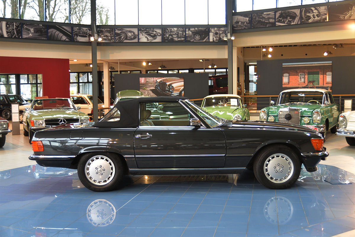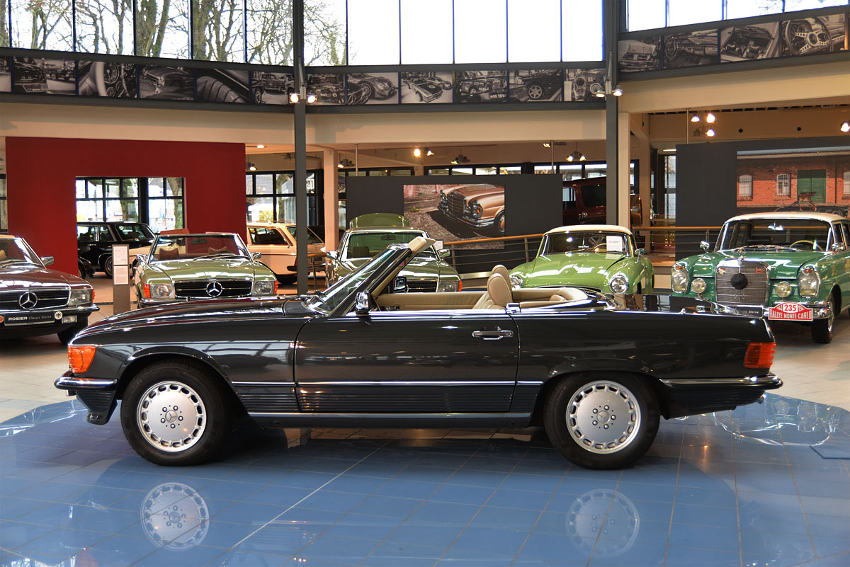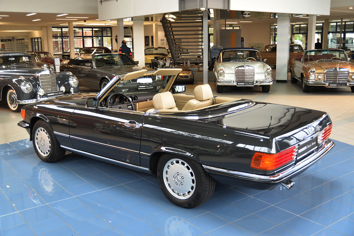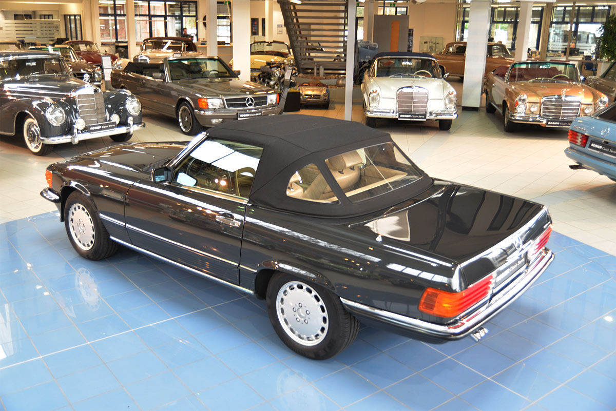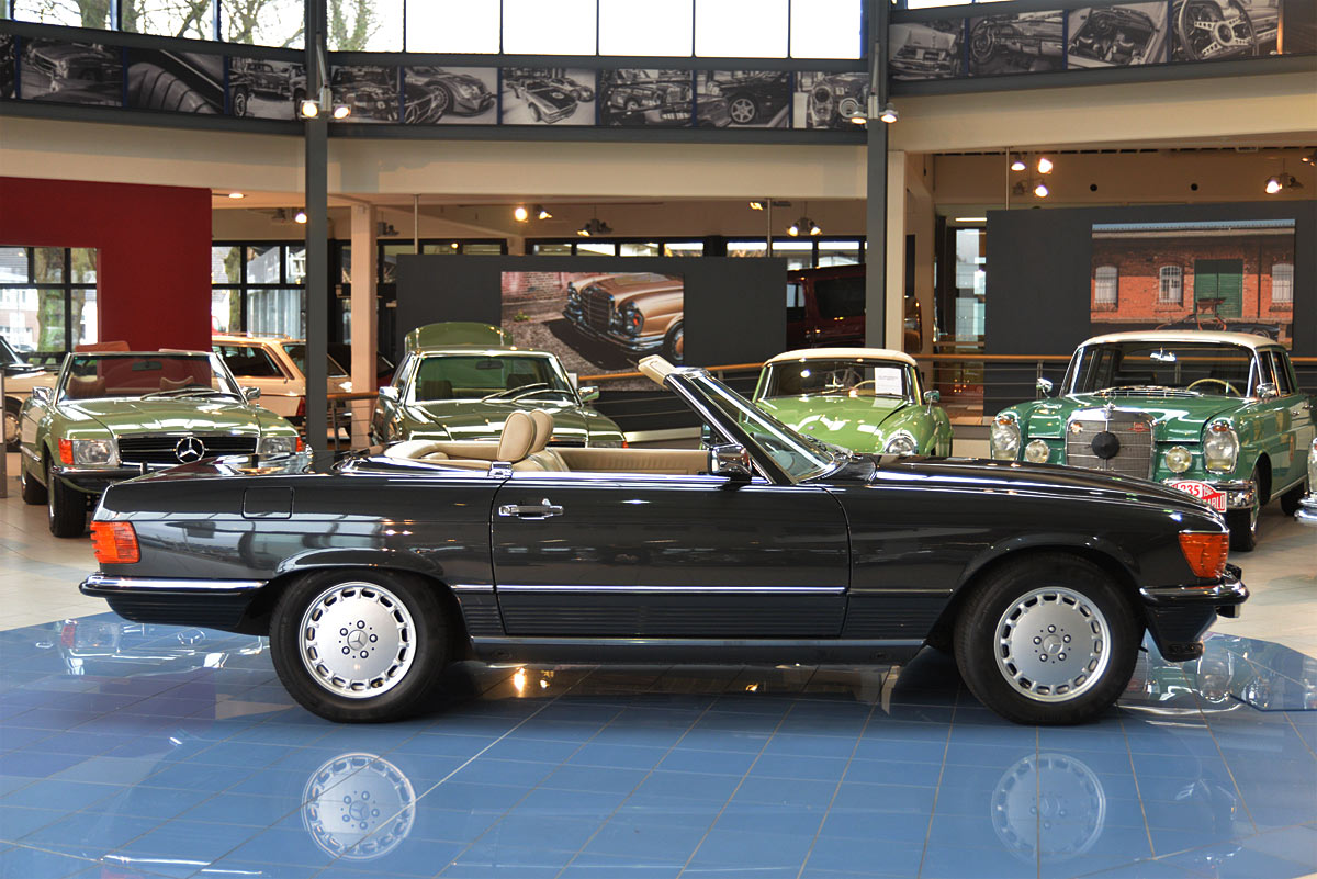 Der Wagen wurde im Mai 1988 auf seinen Erstbesitzer, eine Mercedes-Benz Vertragswerkstatt in einem Österreichischen Urlaubsgebiet zugelassen. Hier verblieb der Wagen bis Juni 1992 und wurde so gut wie nicht gefahren. In vermutlich 1992 erwarb den Wagen ein Hotelier aus dem etwa 30km entfernten Urlaubsort Eben am Achensee. Er ließ den Wagen erst im Mai 2001 auf sich zu. Seine Frau und er hatten keine Zeit den sportlichen Roadster zu fahren, er stand fast nur in der Garage, wie Sie uns erzählte. Am 16.05.2012 verkaufte er ihn im selben Ort an einen Immobilienmakler. Der nutze ihn bis Ende Oktober und meldete ihn über die dort sehr schneereiche Wintersaison ab. Am 08. März 2013 hatte den Roadster ein Mercedes Liebhaber und Sammler aus dem norddeutschen Raum gekauft und auf sich zugelassen. Der Kilometerstand war bei 14.026.
