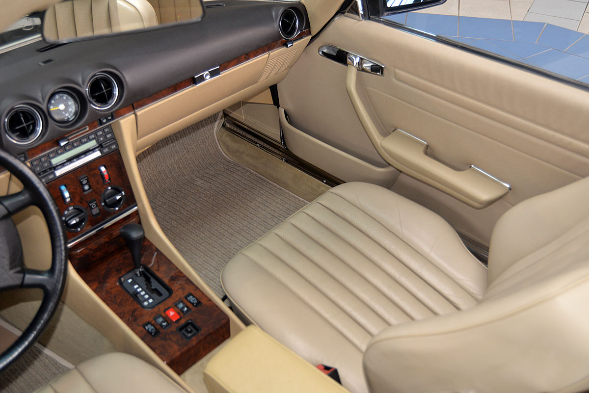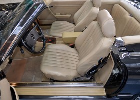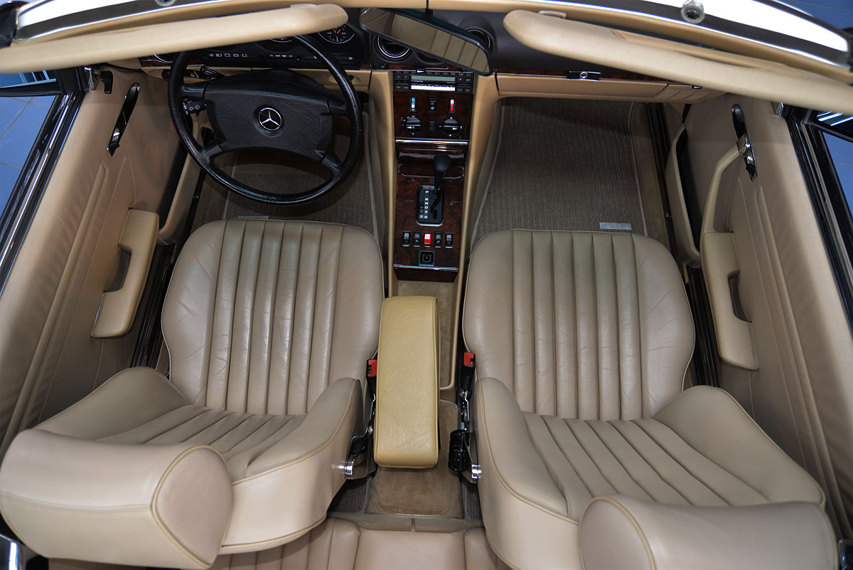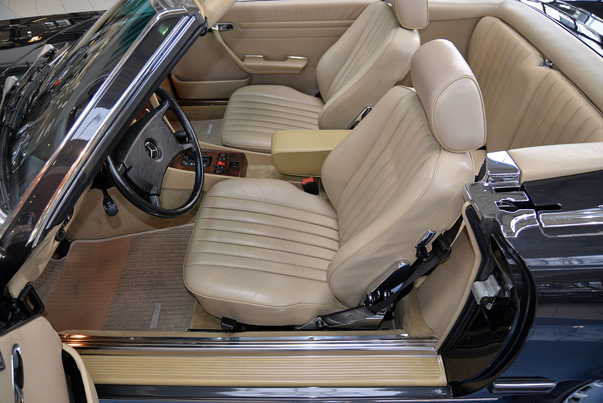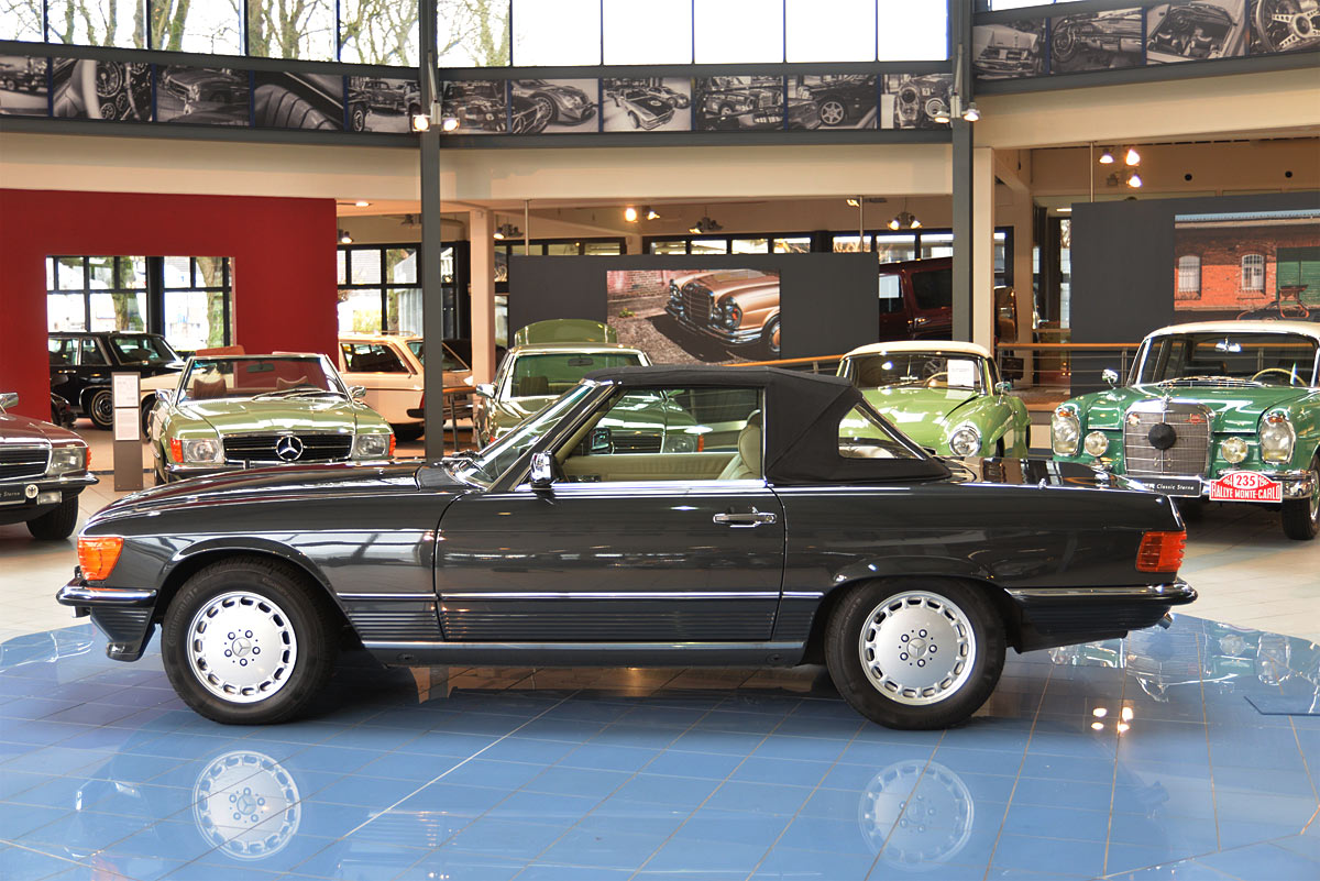 Der Wagen wurde im Mai 1988 auf seinen Erstbesitzer, eine Mercedes-Benz Vertragswerkstatt in einem Österreichischen Urlaubsgebiet zugelassen. Hier verblieb der Wagen bis Juni 1992 und wurde so gut wie nicht gefahren. In vermutlich 1992 erwarb den Wagen ein Hotelier aus dem etwa 30km entfernten Urlaubsort Eben am Achensee. Er ließ den Wagen erst im Mai 2001 auf sich zu. Seine Frau und er hatten keine Zeit den sportlichen Roadster zu fahren, er stand fast nur in der Garage, wie Sie uns erzählte. Am 16.05.2012 verkaufte er ihn im selben Ort an einen Immobilienmakler. Der nutze ihn bis Ende Oktober und meldete ihn über die dort sehr schneereiche Wintersaison ab. Am 08. März 2013 hatte den Roadster ein Mercedes Liebhaber und Sammler aus dem norddeutschen Raum gekauft und auf sich zugelassen. Der Kilometerstand war bei 14.026.