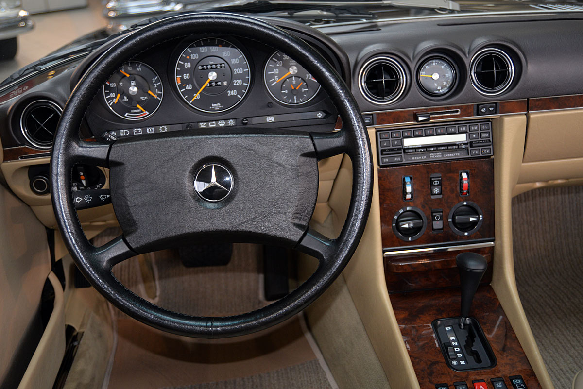 Eine einmalige Rarität ist zweifelsohne dieser Mercedes-Benz 300SL Roadster aus der Reihe 107 mit nur 18.022 Km Originalkilometern Laufleistung.