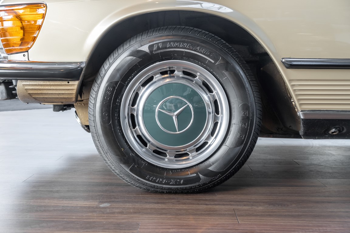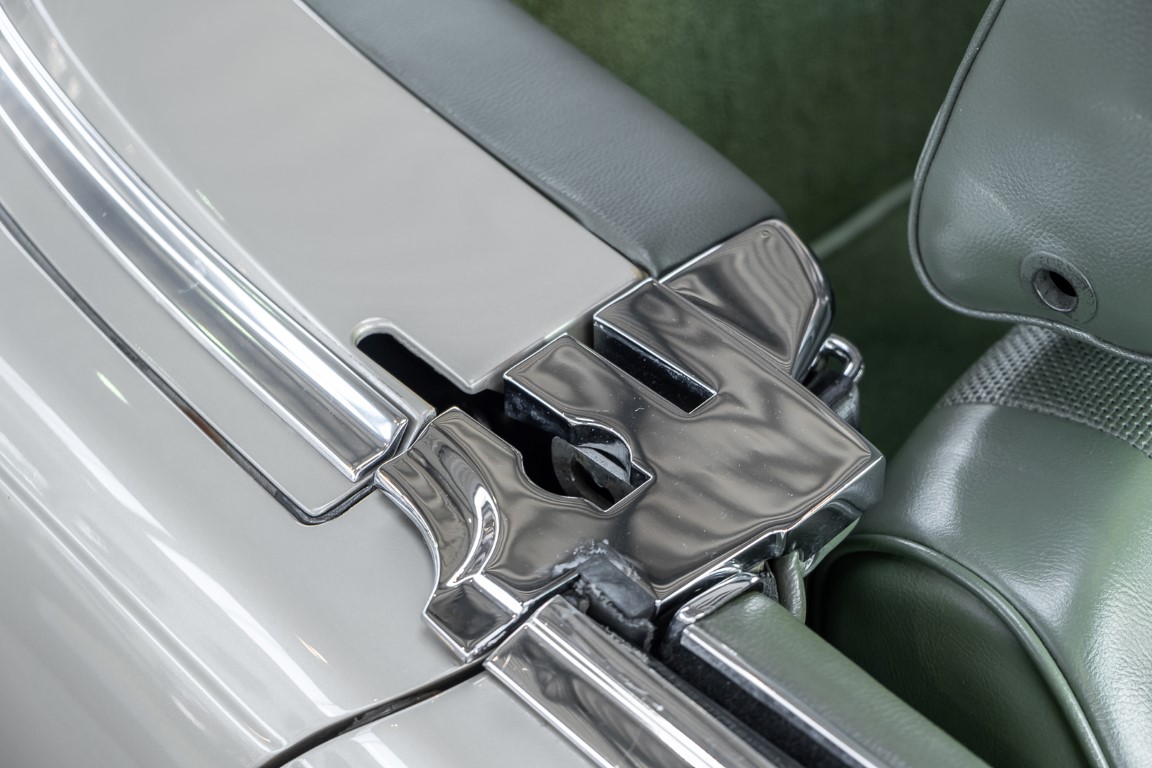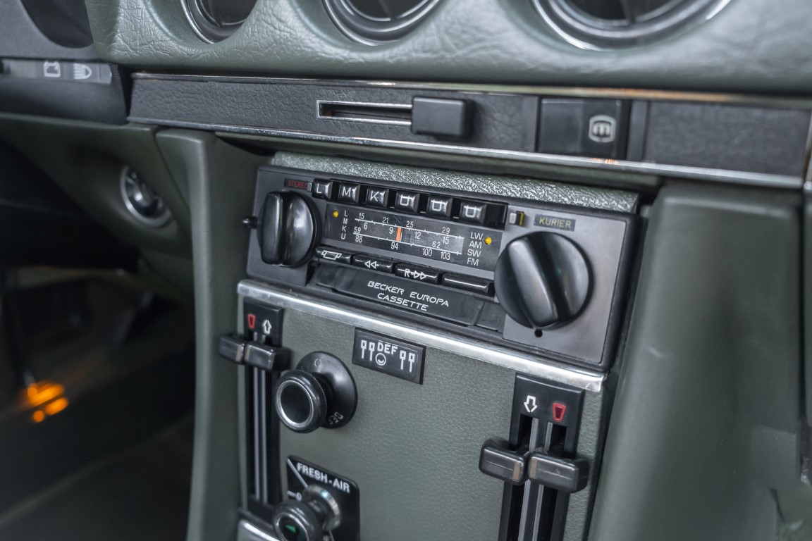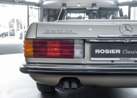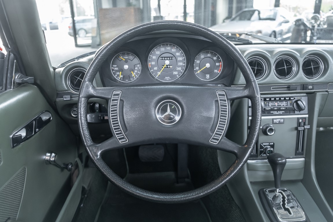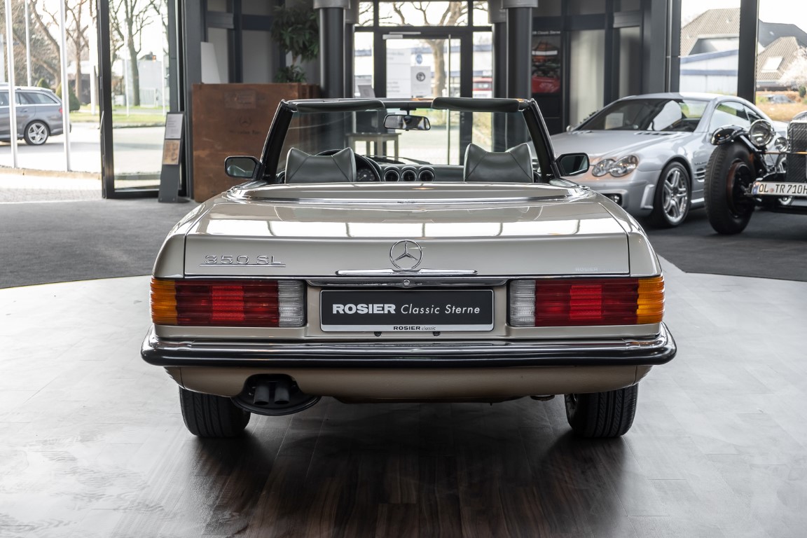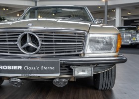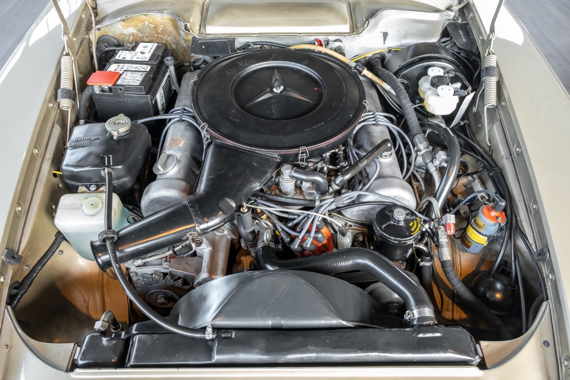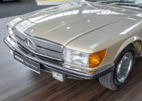 Die Serienproduktion des Mercedes-Benz 350SL Roadsters begann im April 1971 im Werk Sindelfingen. Der hier angebotene Roadster wurde am 25. Oktober 1971 fertiggestellt und in die USA geliefert. Es handelt sich somit um ein ganz frühes Modell und ist für Sammler höchst interessant. Er wurde im Januar 1972 auf den Erstbesitzer zugelassen und verblieb all die Jahre in den USA. Aus der ländlichen ca. 7.000 Einwohner-Gemeinde Sutherlin in Oregon/USA, nur etwa 1 Stunde entfernt von der Winchester Bay am Nord Pacific wurde das Fahrzeug nach Deutschland eingeführt. Der Zustand des Wagens ist sehr original, die unverwüstliche MB-Tex Ausstattung in Olivgrün (166) befindet sich bis heute in einem sehr guten Zustand, die Lackierung wurde offensichtlich vor Jahren erneuert. Der Gesamtzustand des Wagens ist höchst erfreulich, der Unterboden wurde Trockeneisgestrahlt und befindet sich in sauberem und ordentlichen Zustand. Der Motor läuft kraftvoll und weich, das Getriebe wurde erst kürzlich von unseren Spezialisten überholt und schaltet wie man es von einem Mercedes erwartet. Ein rundum toller 107er, der mit seinem starken V8 Motor und einer besonders stilsicheren Farbkombination zu überzeugen weiß. Steigen Sie ein und erfahren Sie es selbst.