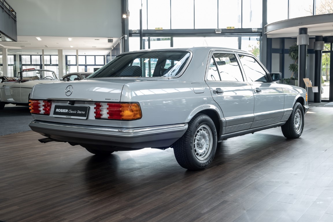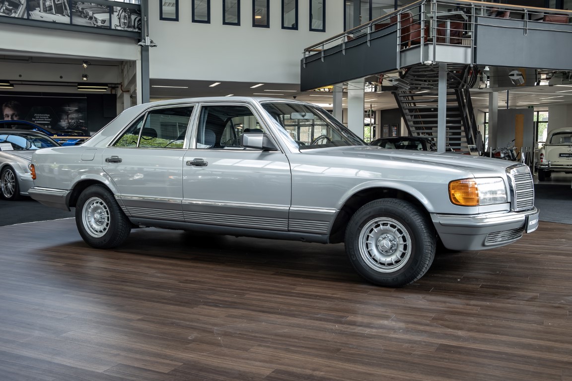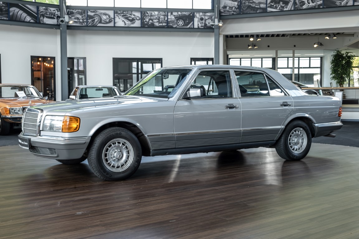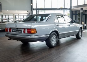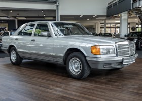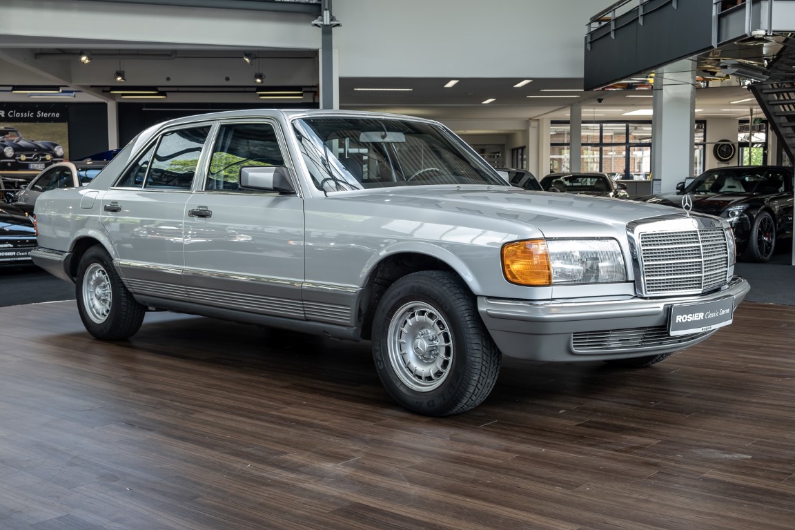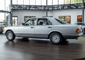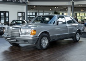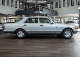 Zum Angebot steht ein schöner 380 SE der begehrten Baureihe 126 in Astralsilber Metallic in Verbindung mit blauem Interioer aus dem frühen Modelljahr 1983. Der kultivierte und immer noch vor Kraft stotzende V8 bewegt die knapp 1,6 Tonnen Leergewicht in allen Lebenssituationen ohne Mühen. Der Kilometerstand ist nachvollziehbar und entspricht laut Wertgutachten der tatsächlichen Laufleistung. Im Sommer 2019 erhielt das Fahrzeug ein neues Getriebe in unserem Hause. Der tolle Motor, ein nachgerüsteter KAT und das tolle Fahrverfalten machen diesen 380 SE zu einem hervorragenden Dailydriver.