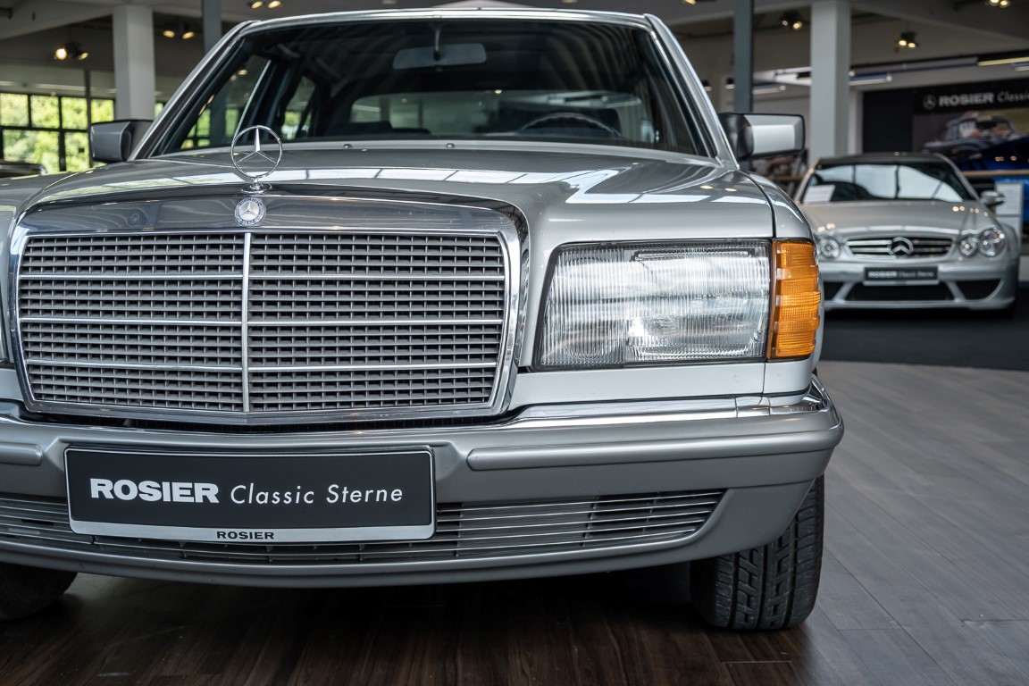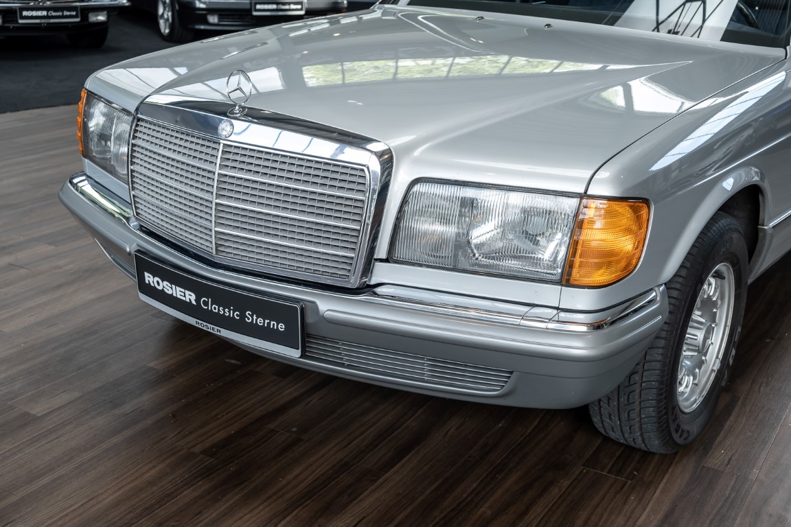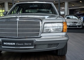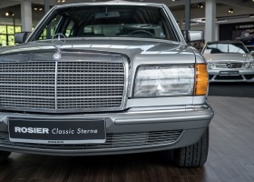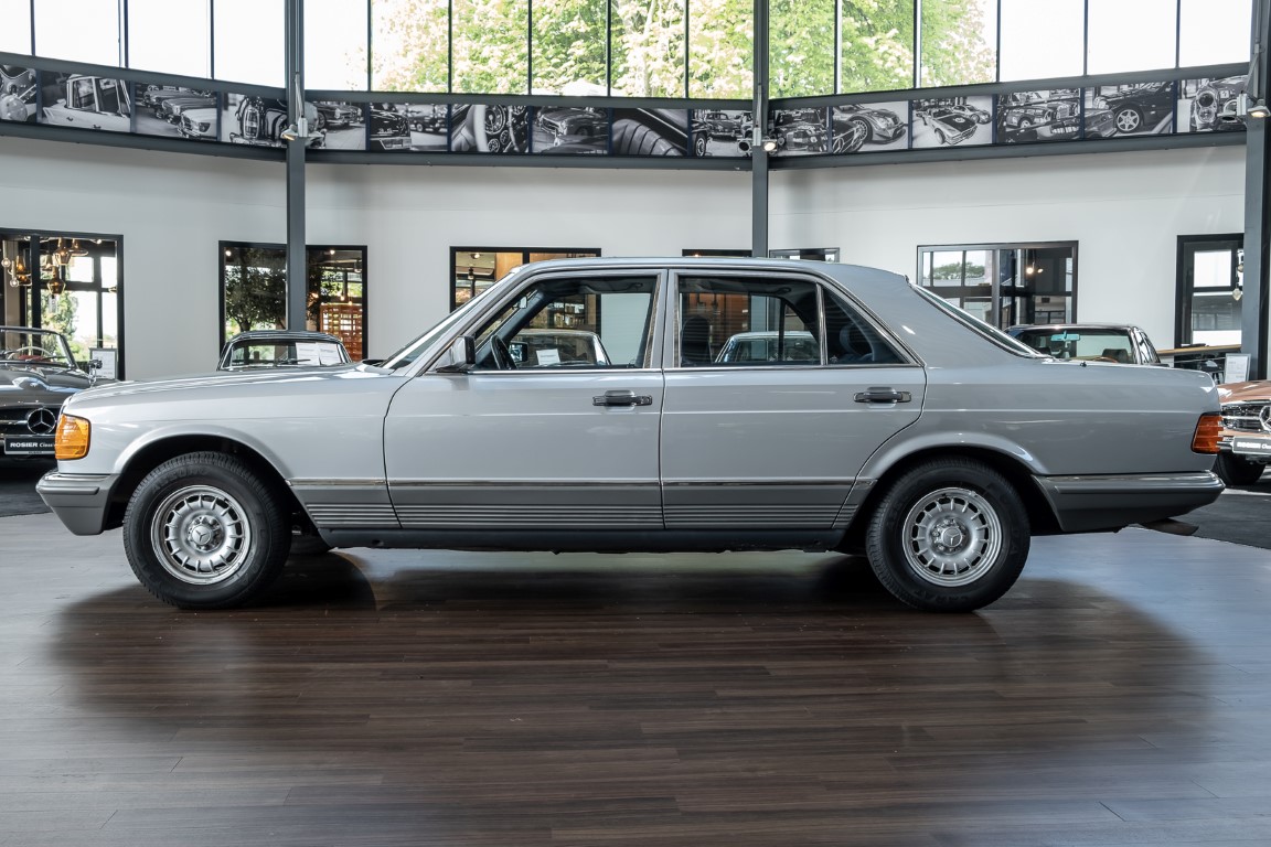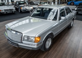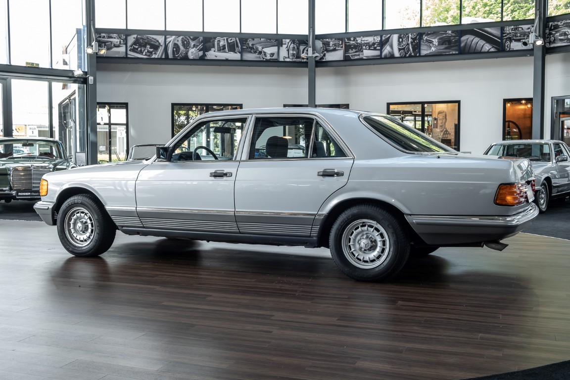 Zum Angebot steht ein schöner 380 SE der begehrten Baureihe 126 in Astralsilber Metallic in Verbindung mit blauem Interioer aus dem frühen Modelljahr 1983. Der kultivierte und immer noch vor Kraft stotzende V8 bewegt die knapp 1,6 Tonnen Leergewicht in allen Lebenssituationen ohne Mühen. Der Kilometerstand ist nachvollziehbar und entspricht laut Wertgutachten der tatsächlichen Laufleistung. Im Sommer 2019 erhielt das Fahrzeug ein neues Getriebe in unserem Hause. Der tolle Motor, ein nachgerüsteter KAT und das tolle Fahrverfalten machen diesen 380 SE zu einem hervorragenden Dailydriver.