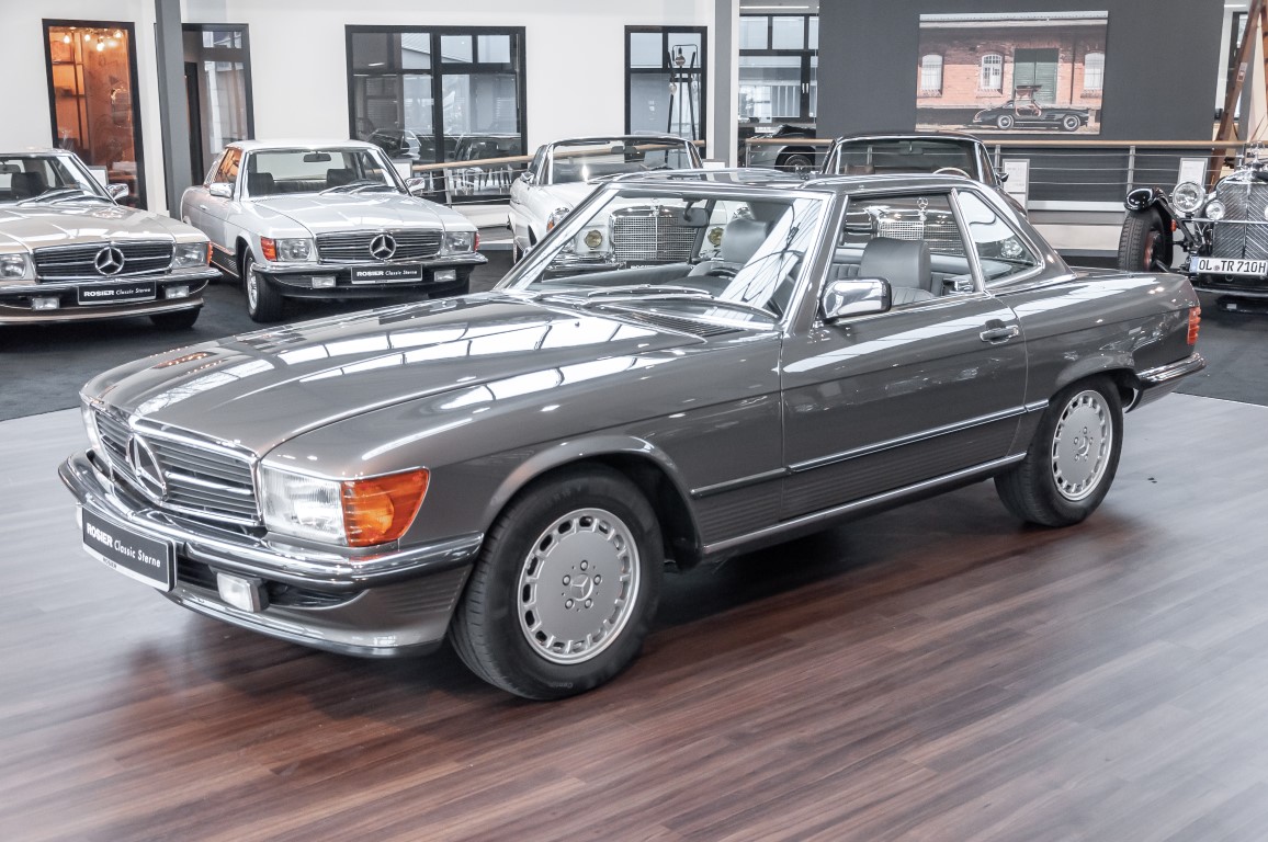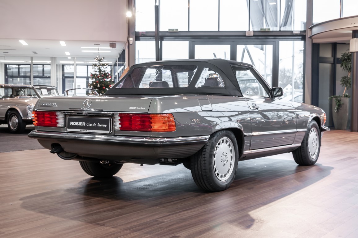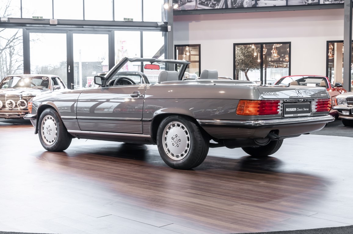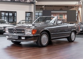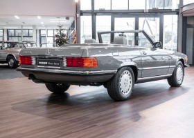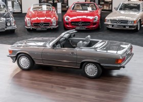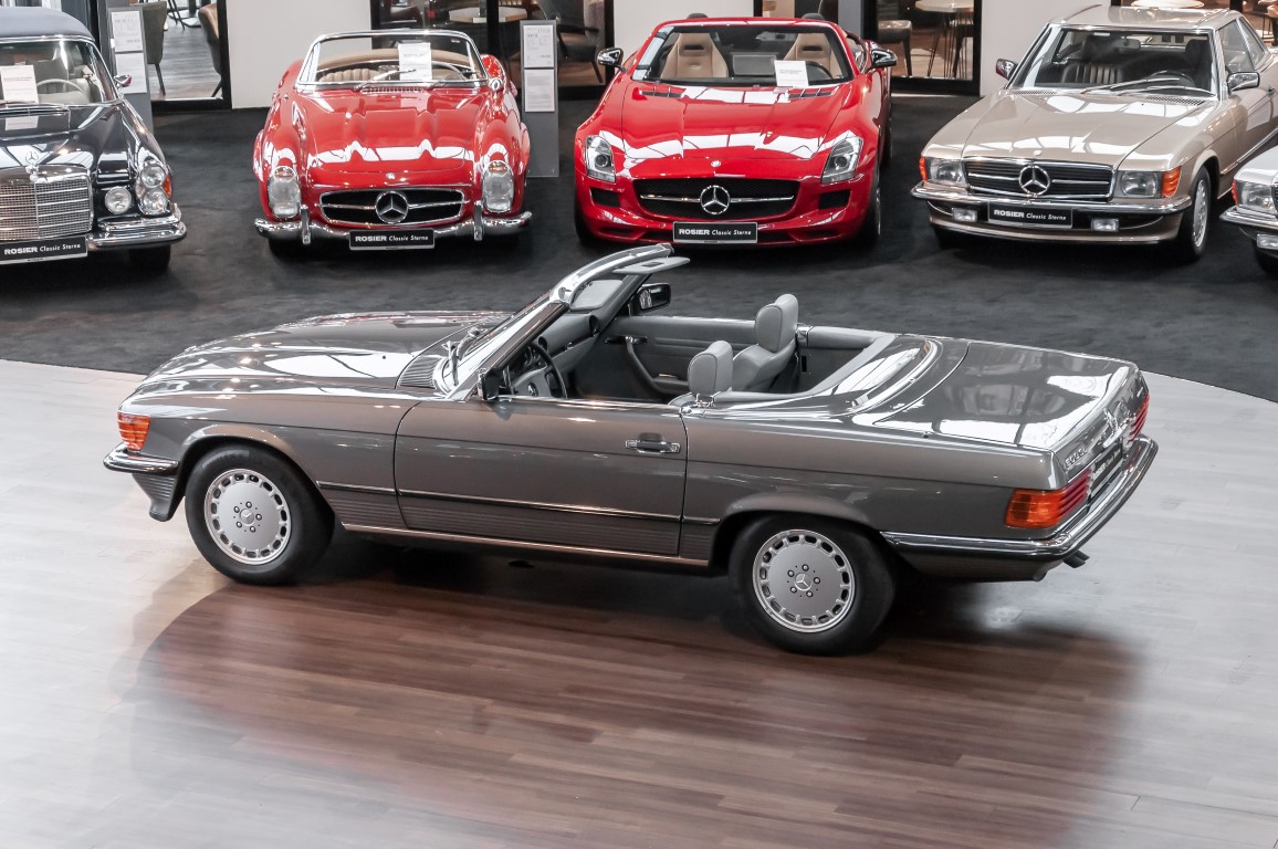 Eine echte Rarität: ein 500 SL mit originalen 14.500 Kilometern. 1987 wurde dieses Fahrzeug im edlen Anthrazitgrau Metallic in die Niederlassung München ausgeliefert, somit ist es in deutscher Spezifikation gebaut worden und war ursprünglich für den deutschen Markt bestimmt.