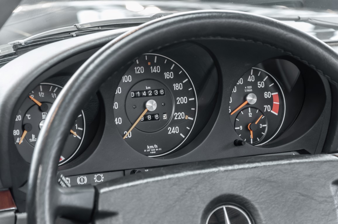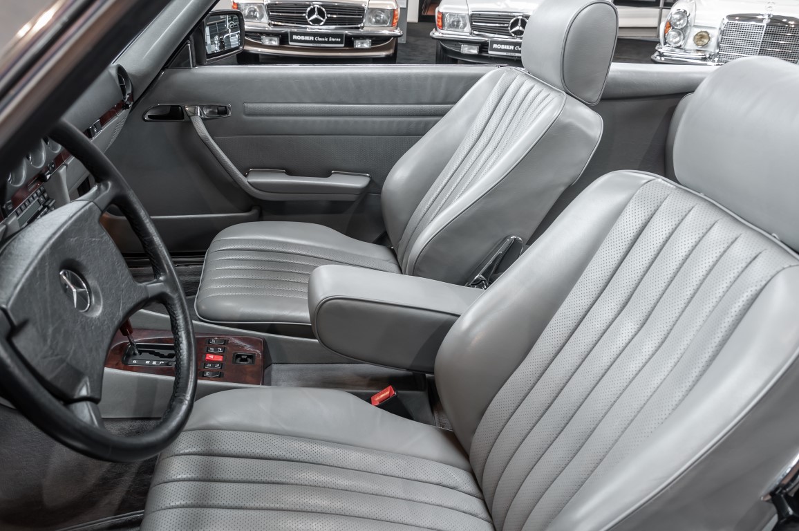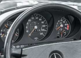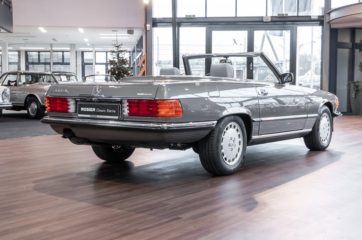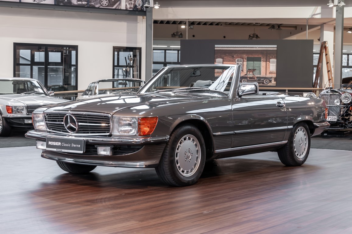 Eine echte Rarität: ein 500 SL mit originalen 14.500 Kilometern. 1987 wurde dieses Fahrzeug im edlen Anthrazitgrau Metallic in die Niederlassung München ausgeliefert, somit ist es in deutscher Spezifikation gebaut worden und war ursprünglich für den deutschen Markt bestimmt.