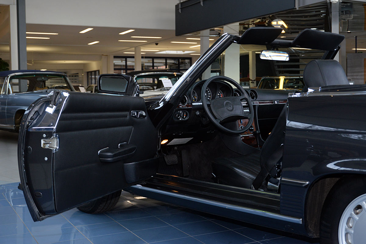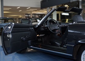 Ein solch modellgepflegtes und äußerst beliebtes Modell ist dieser Mercedes-Benz 500SL aus 1986, mit seinem kräftigen 8-Zylinder-Motor. Er wurde im Mai 1986 nach Bayern ausgeliefert und war im Besitz einer Dame im ländlichen Münchner Umkreis. Die Ausstattung war reichhaltig und beinhaltete unter anderem einen Fahrer-Airbag, wärmedämmende Rundumverglasung, beheizte Spiegel, Mittelarmlehne vorn und Fondsitzbank. Am 22. November 2013 ließ Sie den Wagen beim Landratsamt Bad Tölz-Wolfratshausen abmelden. Zum Jahreswechsel 2017/2018 übernahmen wir den Wagen in unseren Bestand und freuen uns, Ihnen diese echte Rarität anbieten zu können.